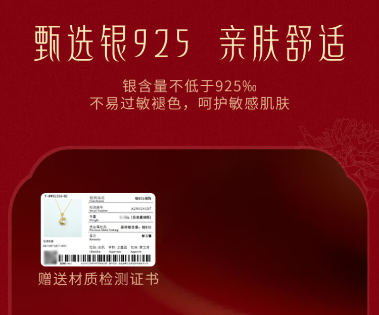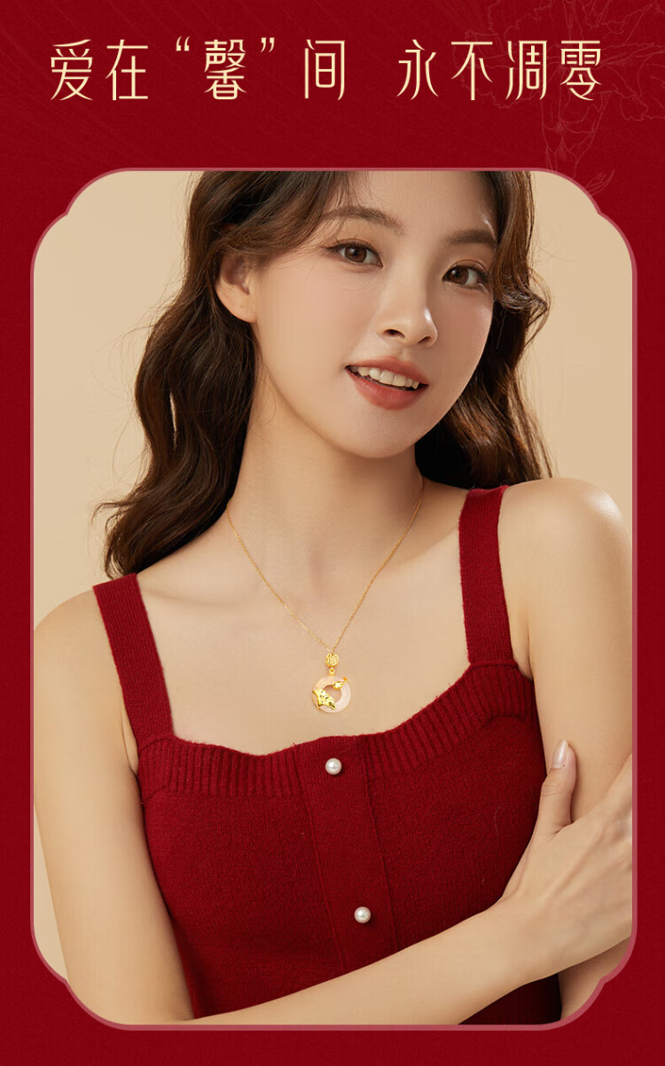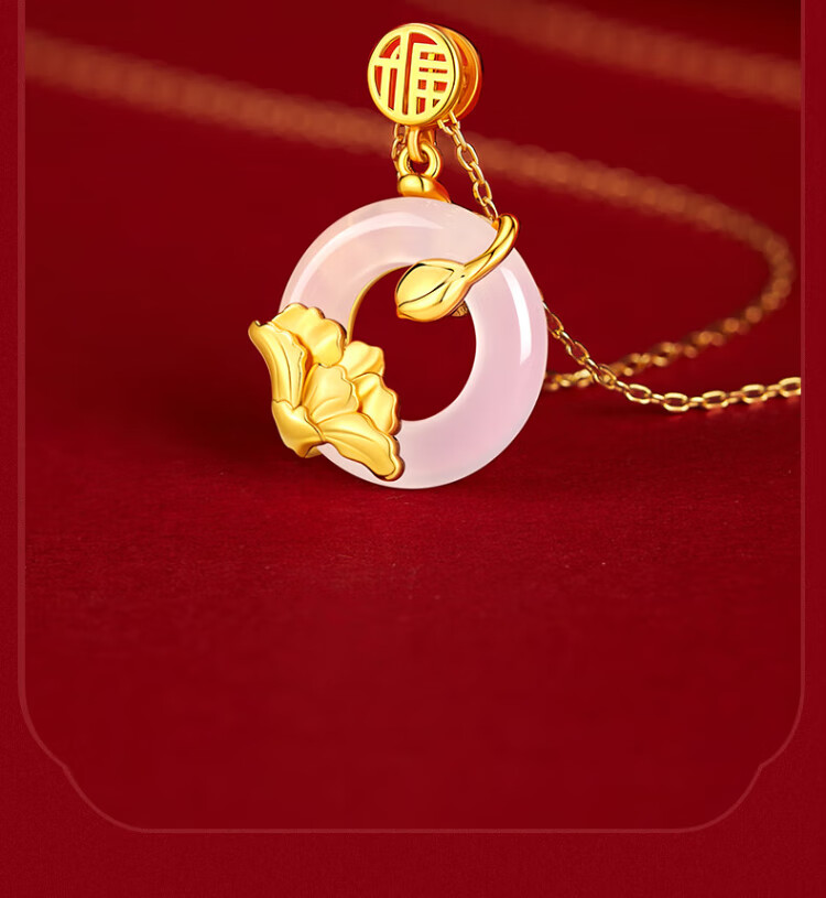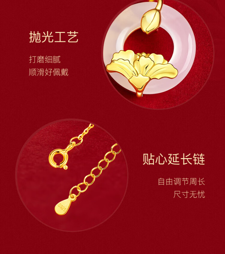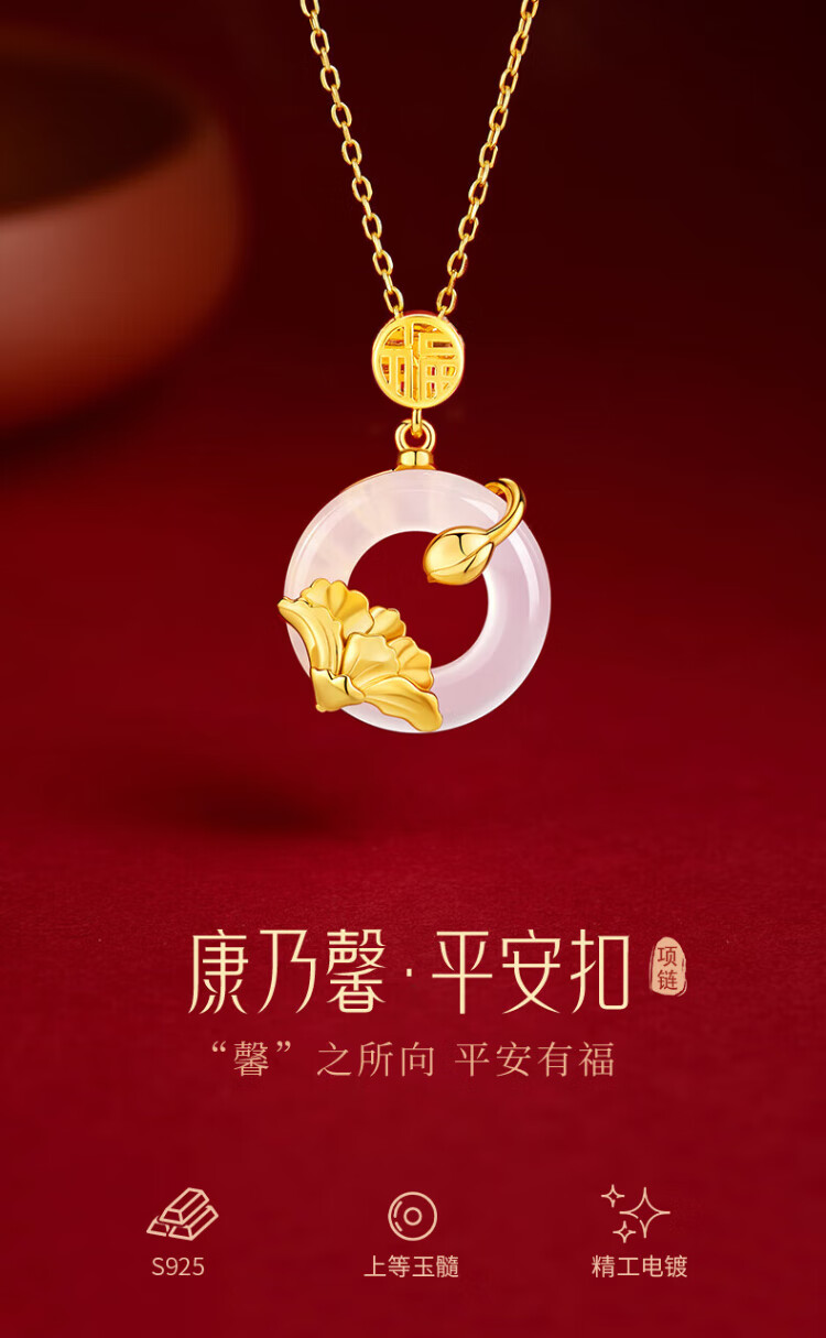 Zhen Shang Silver Chinese Gold Silver Necklace Women's Peace Button Jade Pendant Girls Mom Mother Birthday Gift Ladies Practical Wife