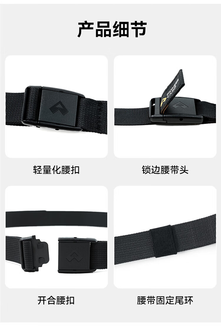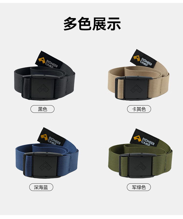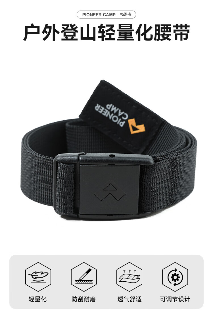 Pathfinder outdoor hiking pants belt for men and women, lightweight and convenient plastic bayonet widened and lengthened woven belt, black