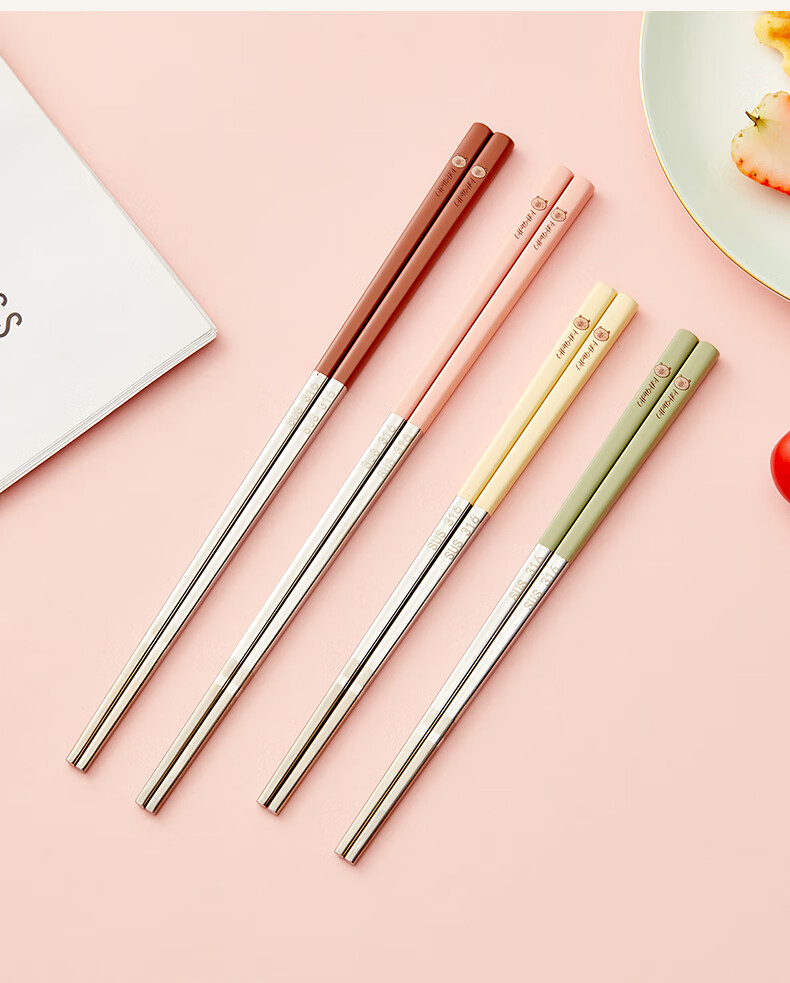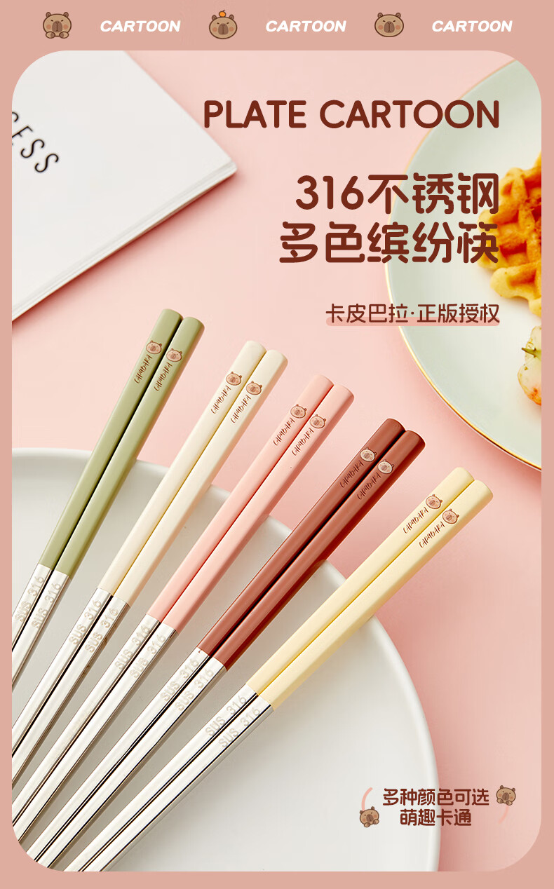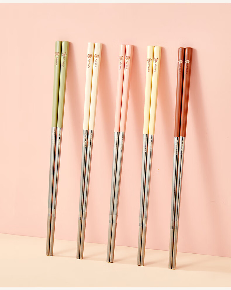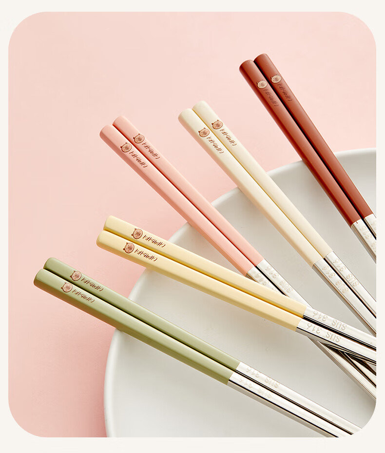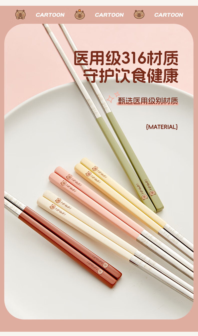 沃德百惠(WORTHBUY)316不锈钢筷子防滑防烫筷家庭卡通分餐筷一人一筷餐具套装5双装