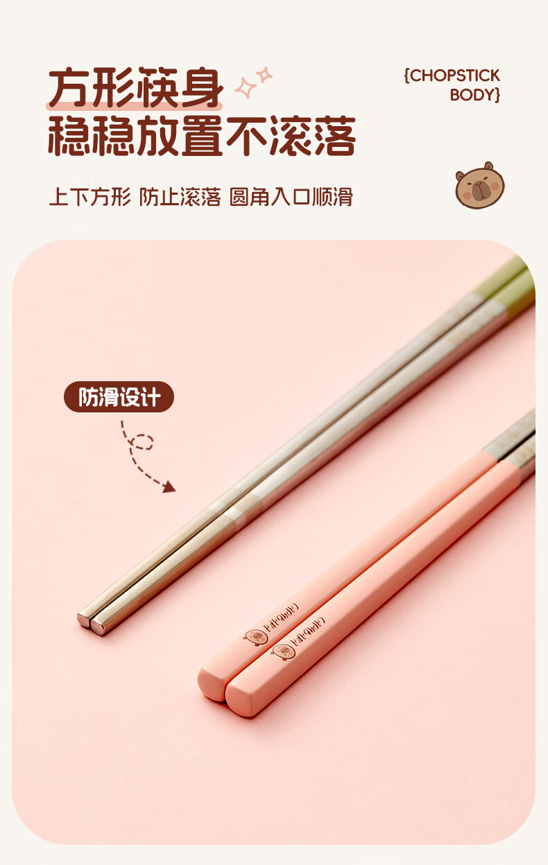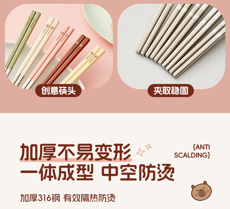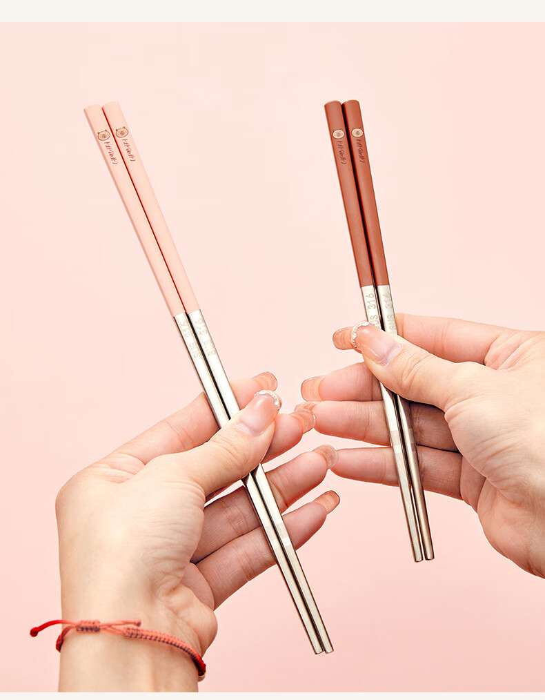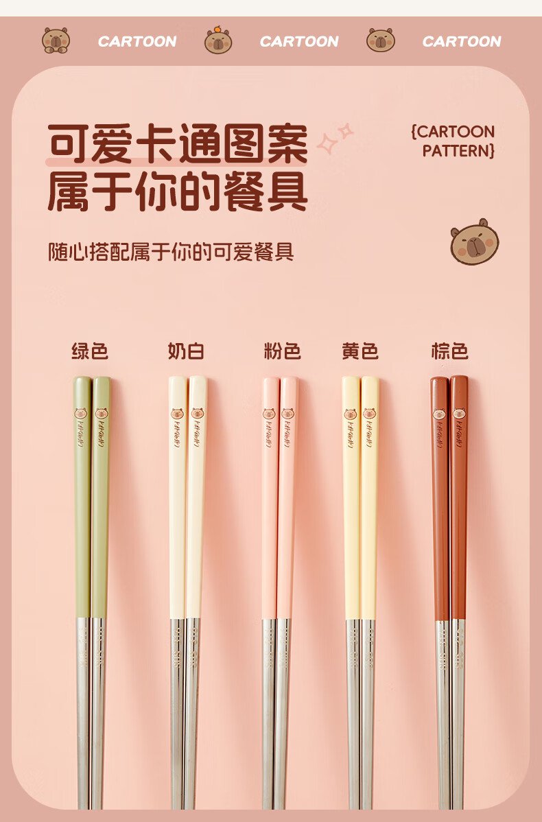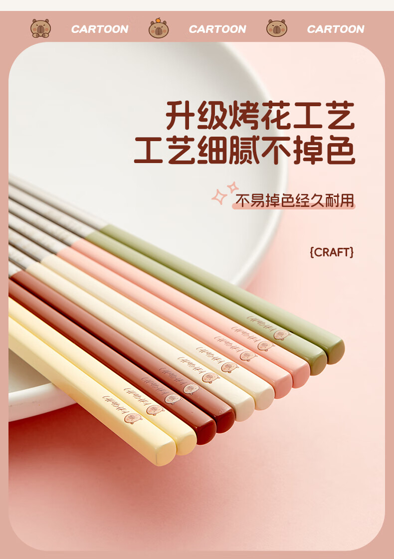 沃德百惠(WORTHBUY)316不锈钢筷子防滑防烫筷家庭卡通分餐筷一人一筷餐具套装5双装