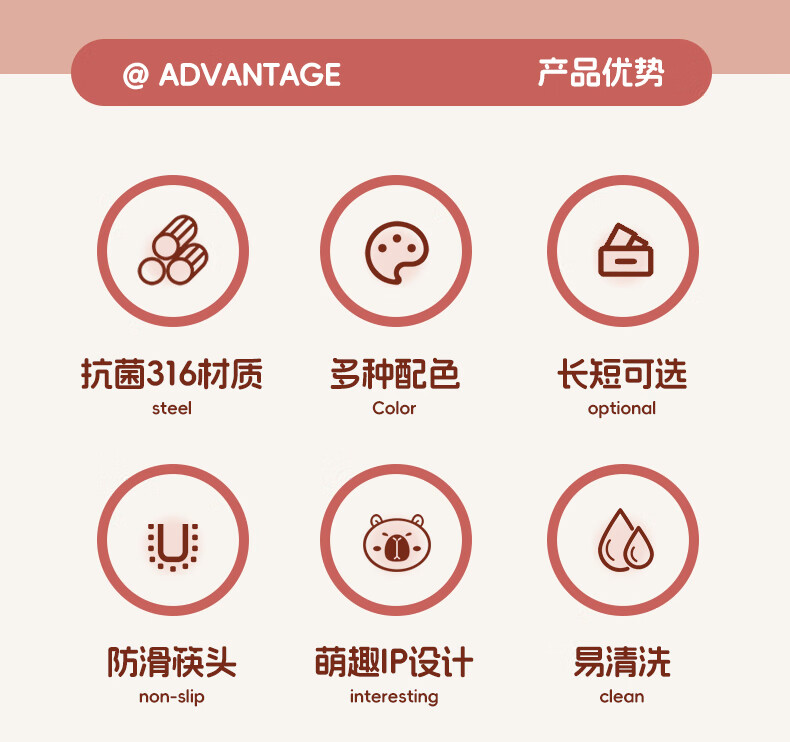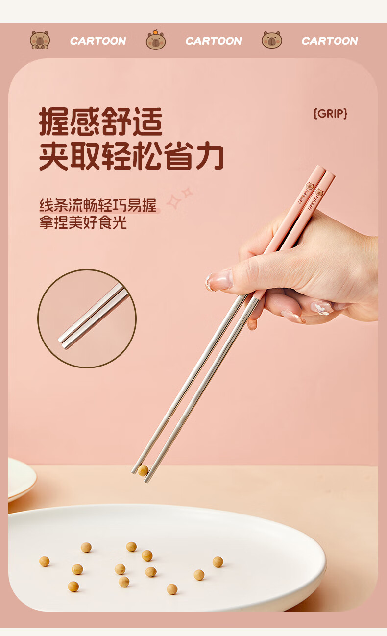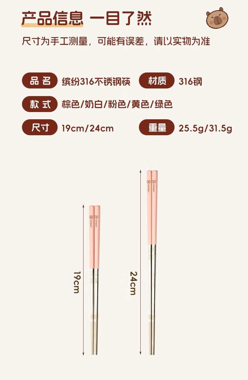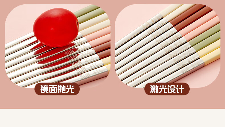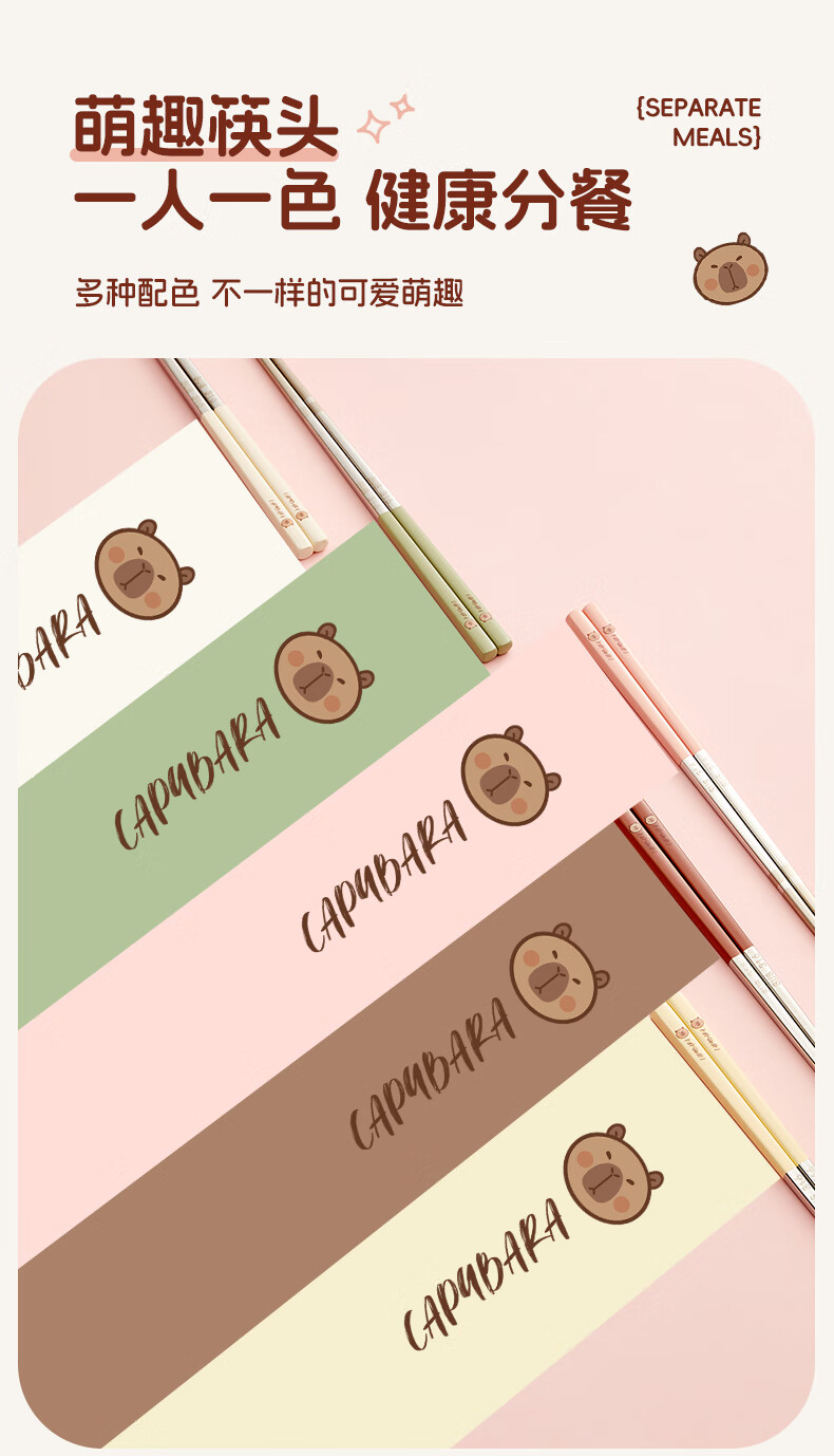 沃德百惠(WORTHBUY)316不锈钢筷子防滑防烫筷家庭卡通分餐筷一人一筷餐具套装5双装