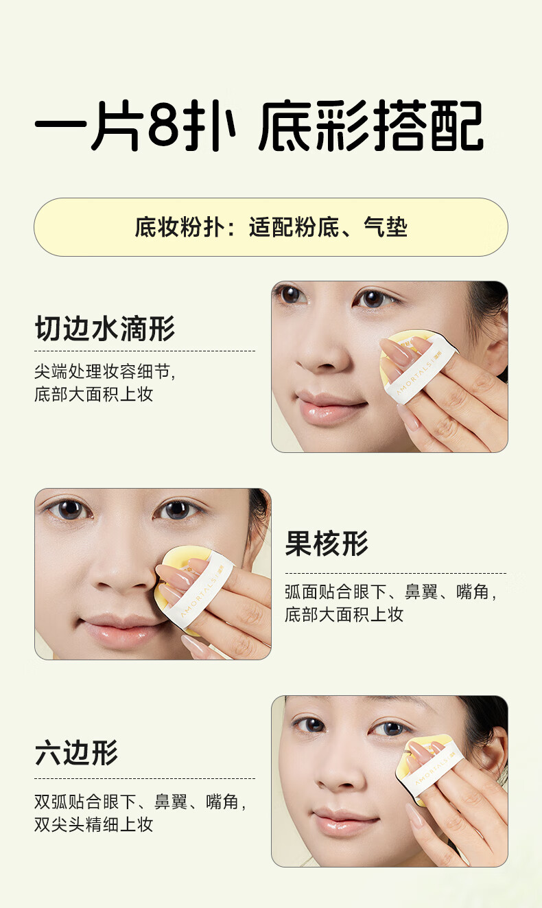AMORTALS powder puff, liquid foundation, special non-eating powder, beauty makeup air cushion puff, portable wet use, pear-shaped picking powder puff, 8 pieces