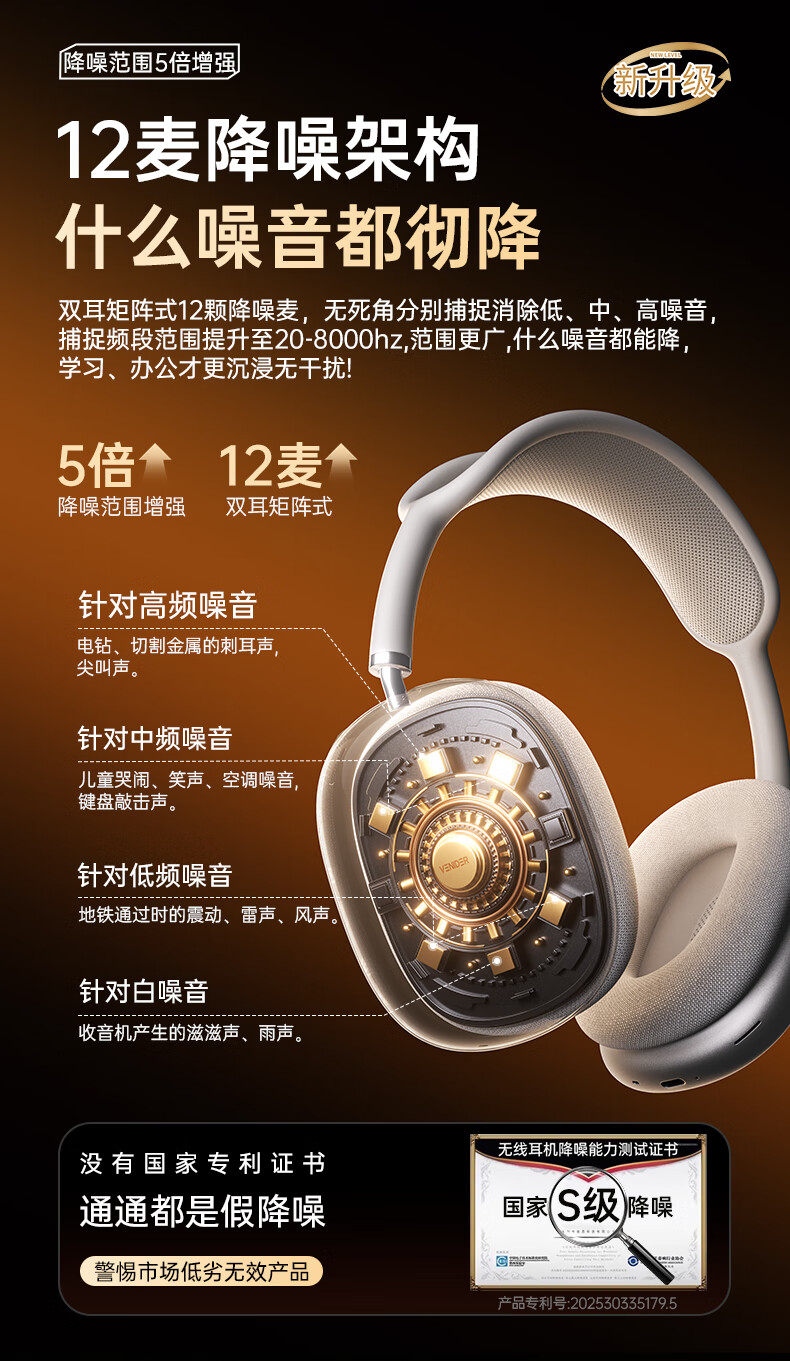 Wei Lide 2026 latest model丨S-level deep noise reduction headset Bluetooth active sound isolation wireless microphone suitable for Apple games and e-sports without hurting the ears while sleeping and specially designed to prevent sound