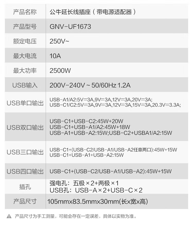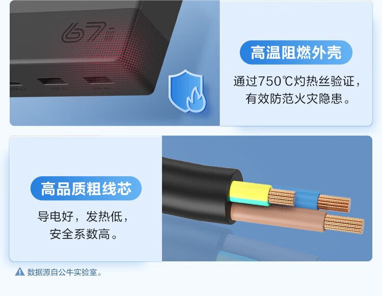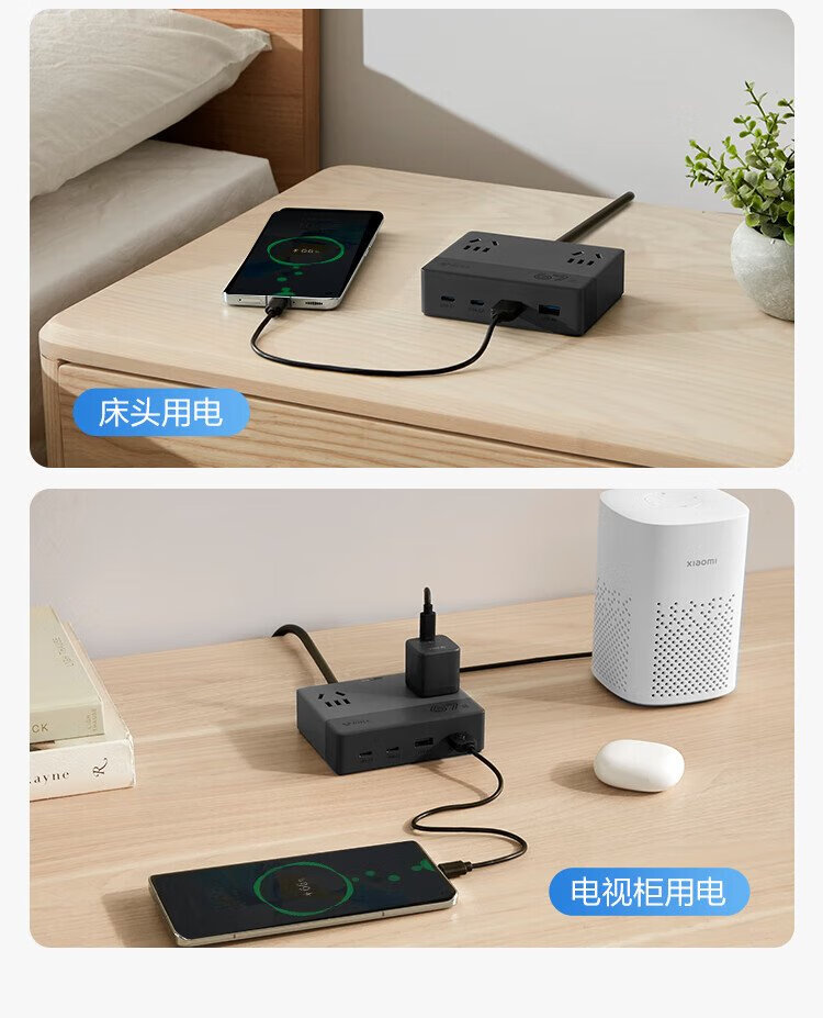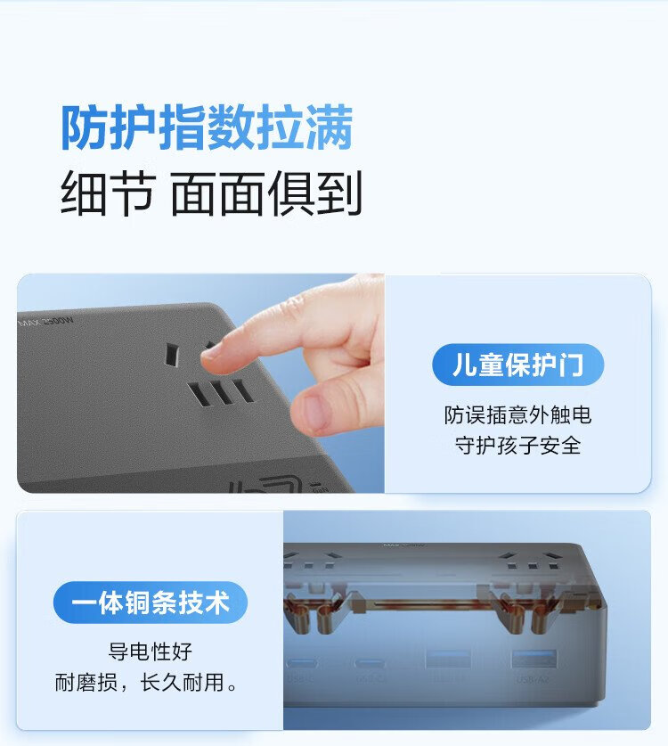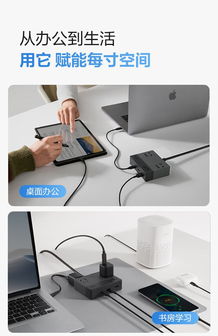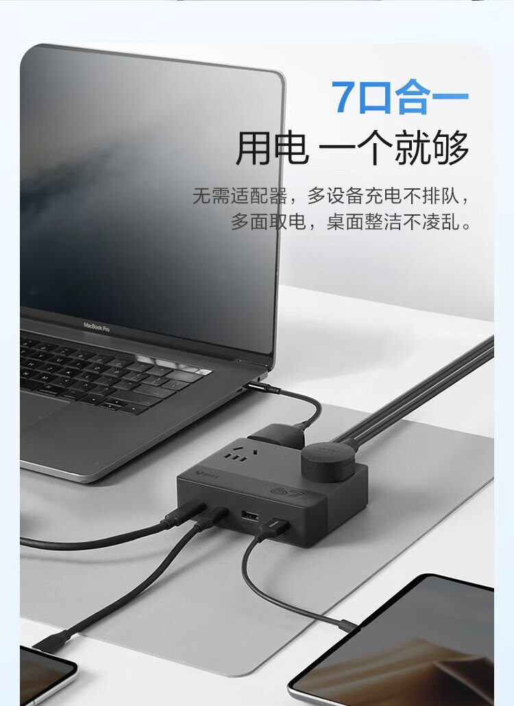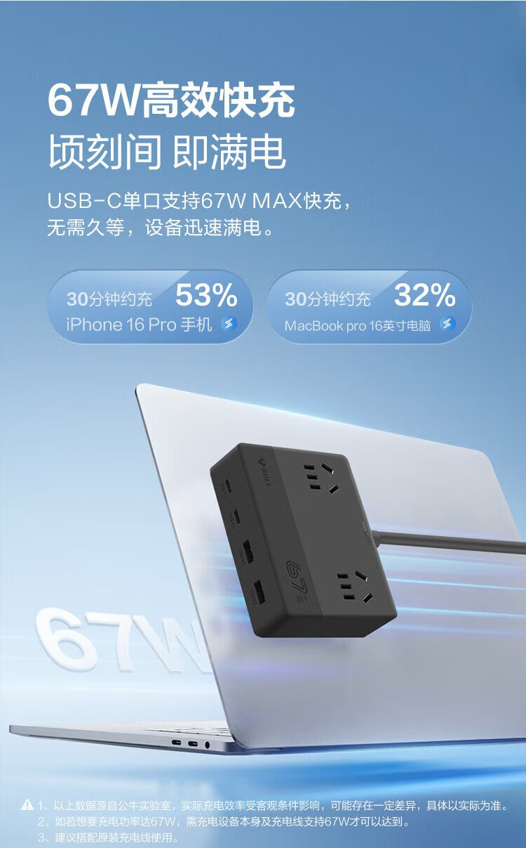 BULL 67W gallium nitride small magic box socket/plug board/socket strip/wiring board 3C certification suitable for iPhone17 master control switch 2A2C+3 positions full length 1.5 meters black