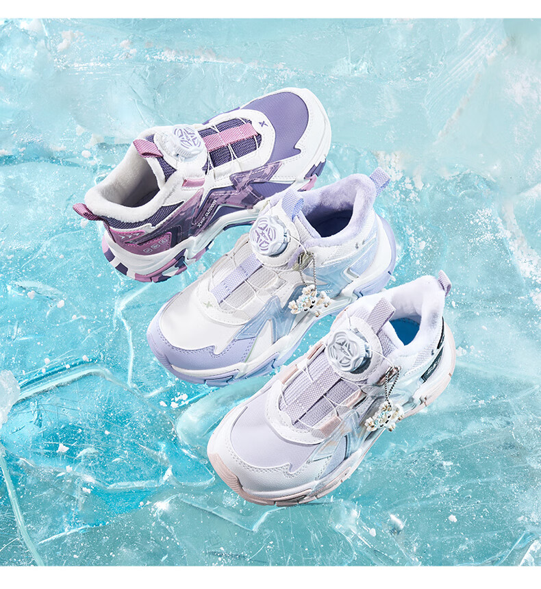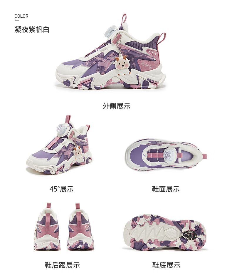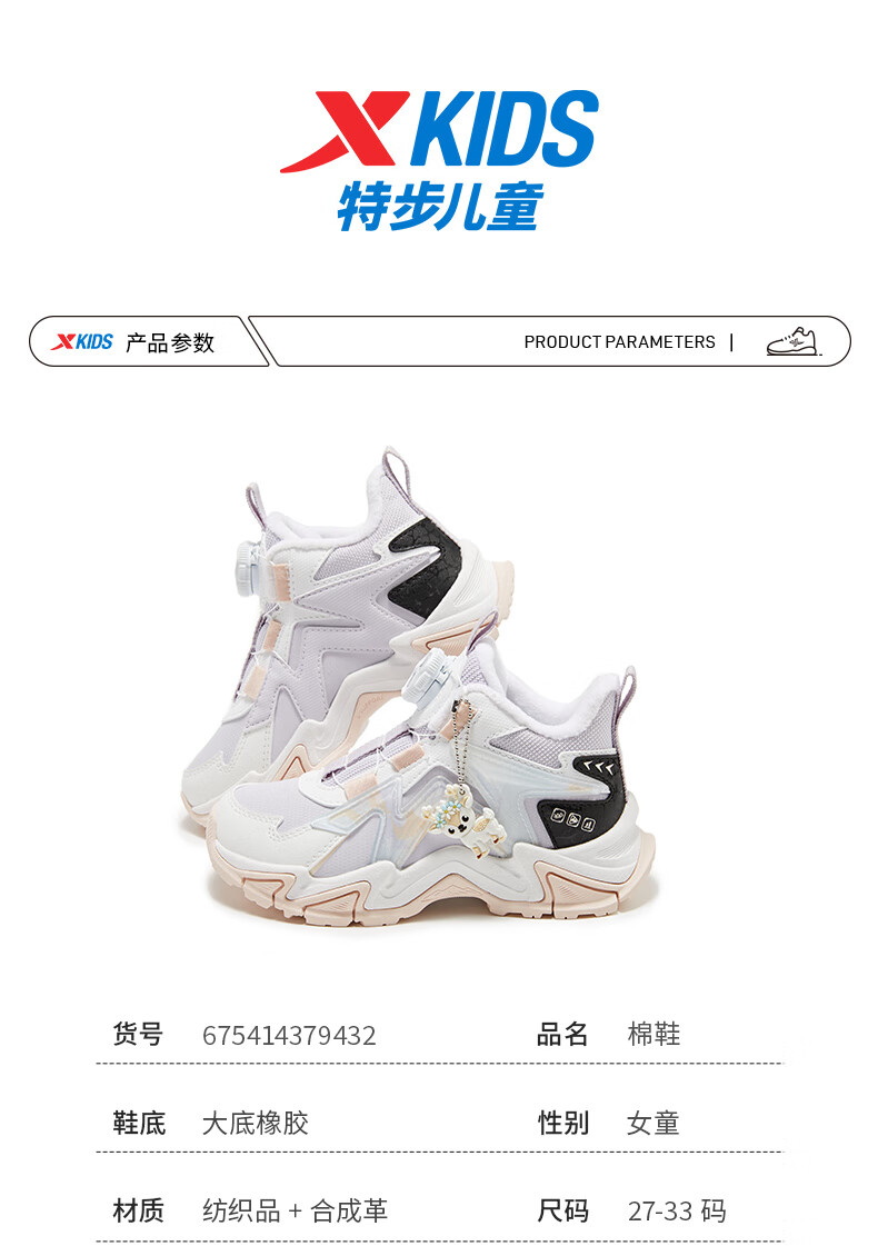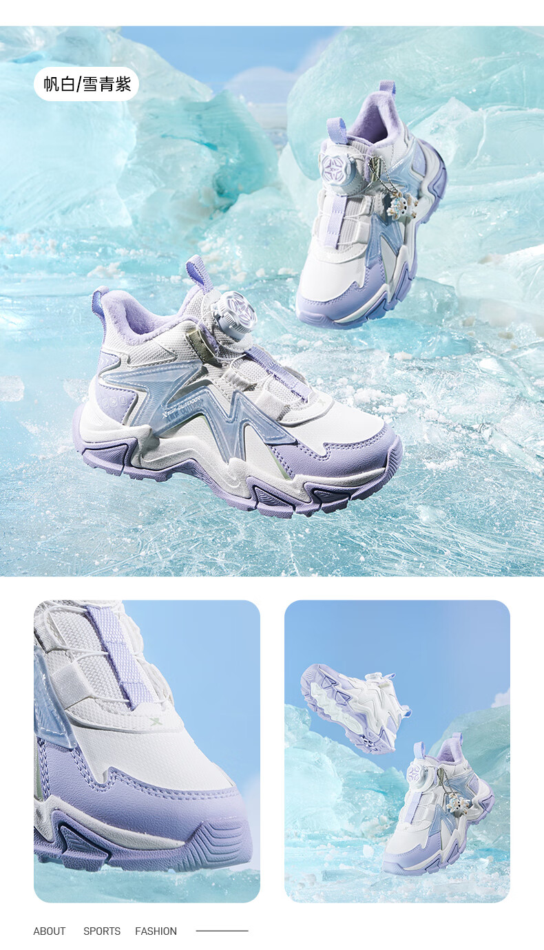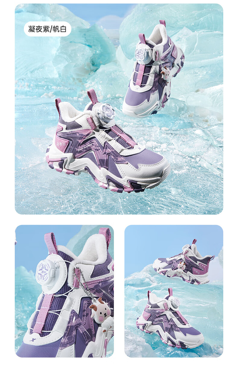XTEP Children's Shoes Lingfeng 3.0 Fine Mink Velvet Warm Sports Shoes Anti-Slip Safety Guard Cotton Shoes Ningye Purple/Sail White 30