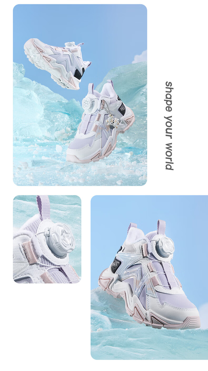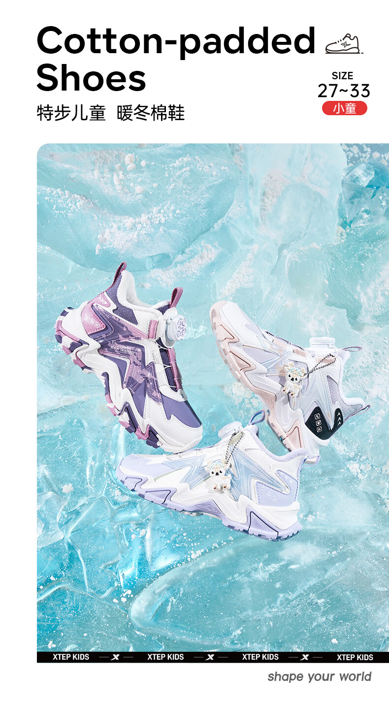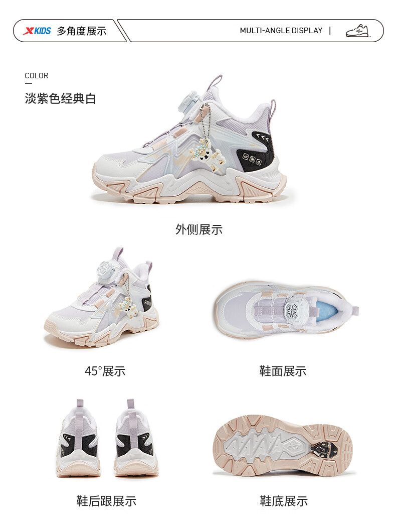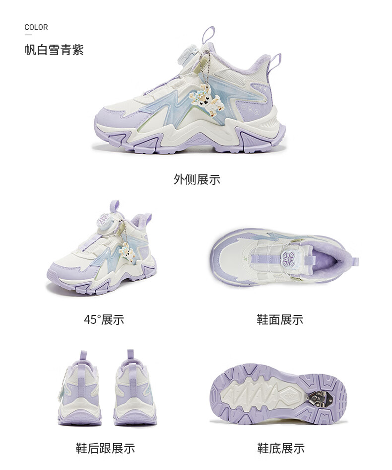 XTEP Children's Shoes Lingfeng 3.0 Fine Mink Velvet Warm Sports Shoes Anti-Slip Safety Guard Cotton Shoes Ningye Purple/Sail White 30