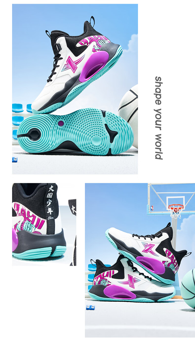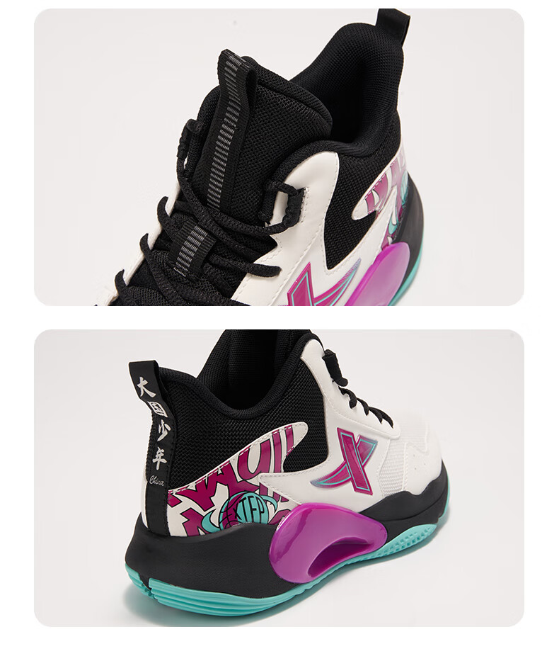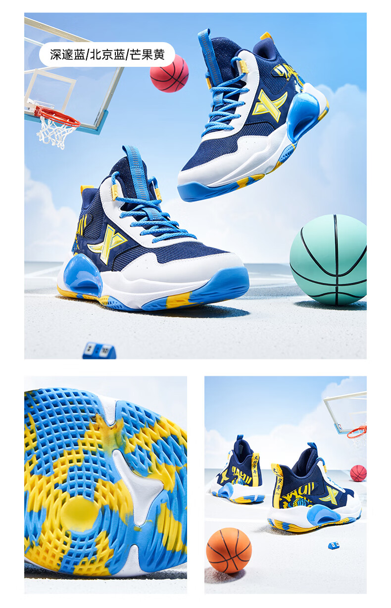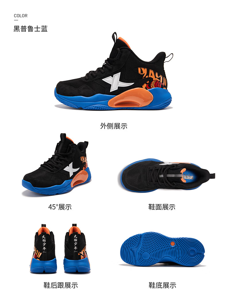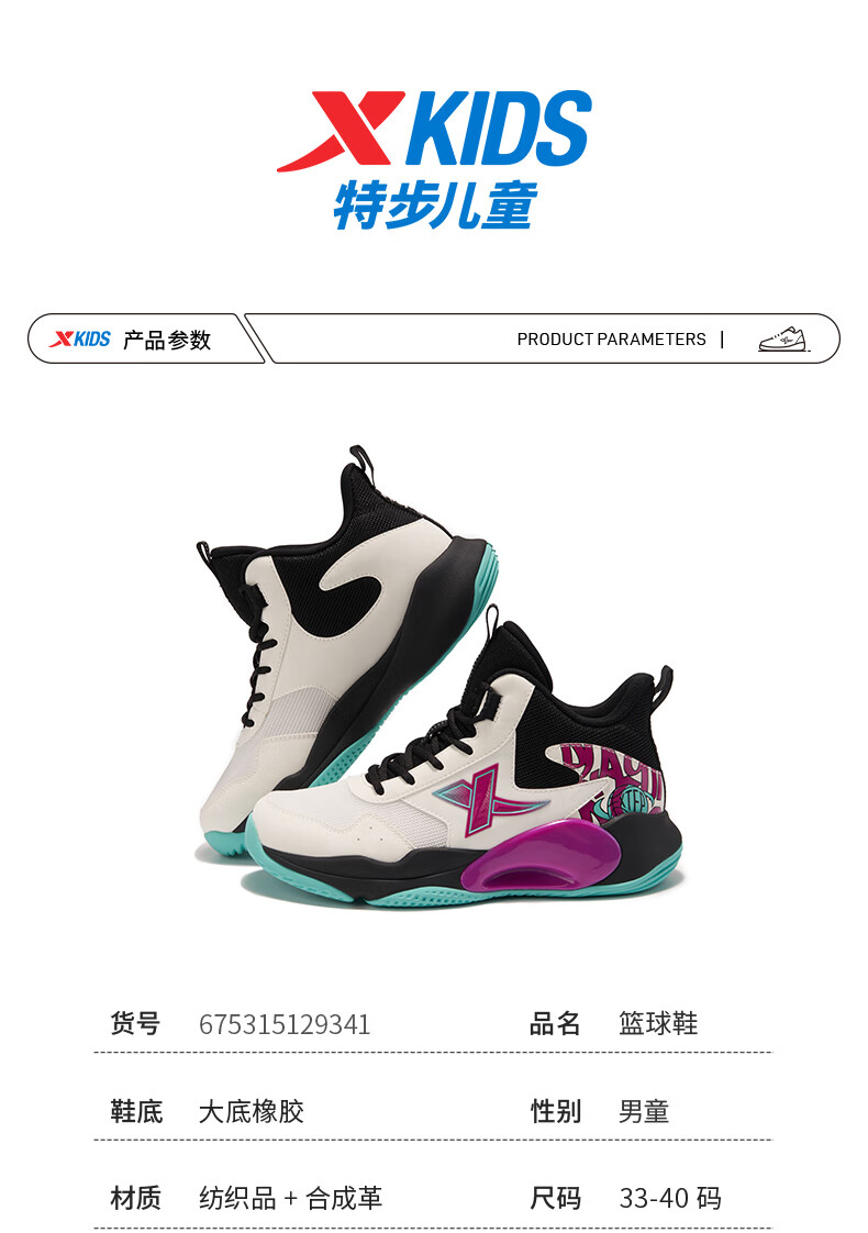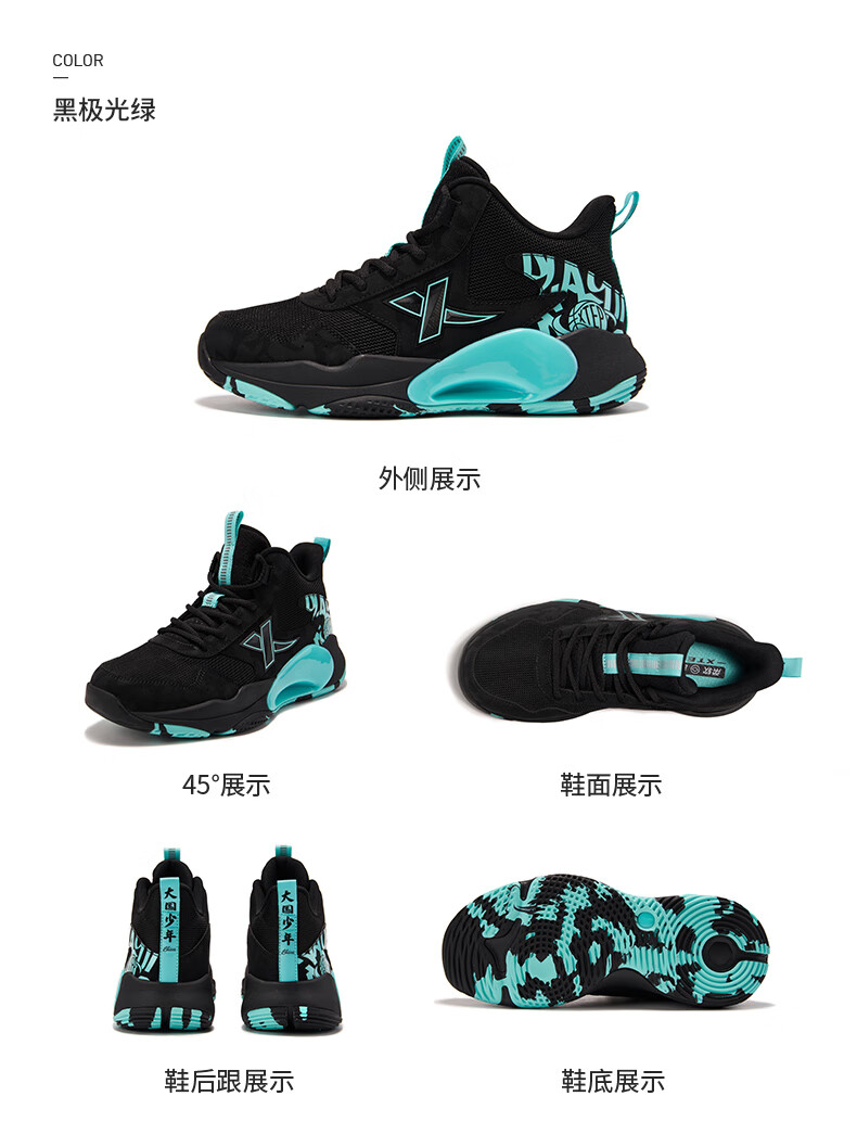 XTEP Children's Shoes Children's Sports Shoes Campus High-Density Upper Training Basketball Shoes Black/Aurora Green 38