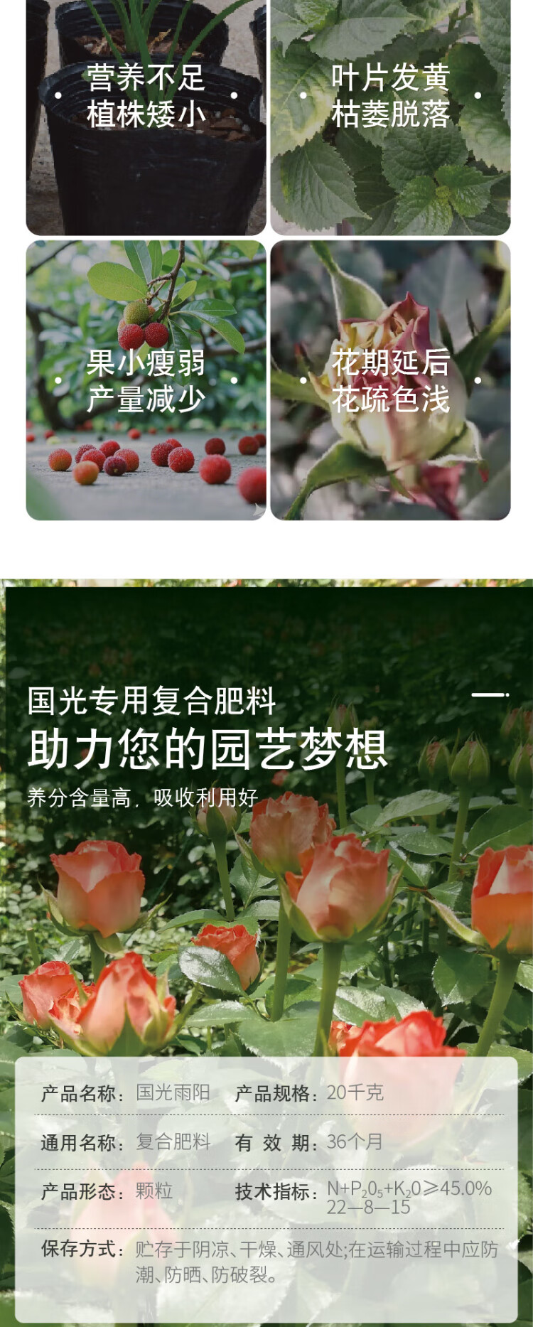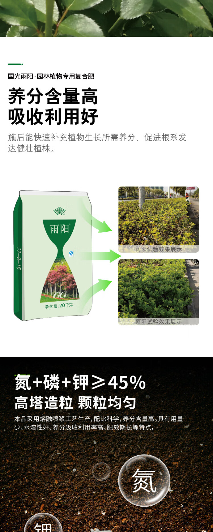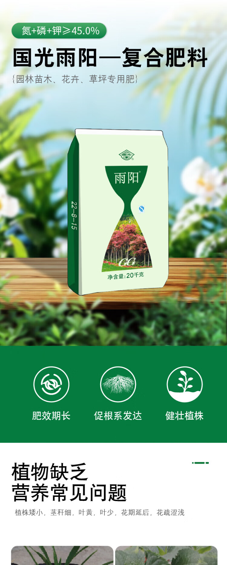 Guoguang Yuyang nitrogen, phosphorus and potassium compound fertilizer 22 8 15 flowers, lawns, seedlings and fruit trees high concentration compound fertilizer 20 kg