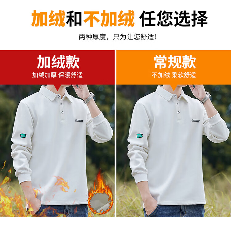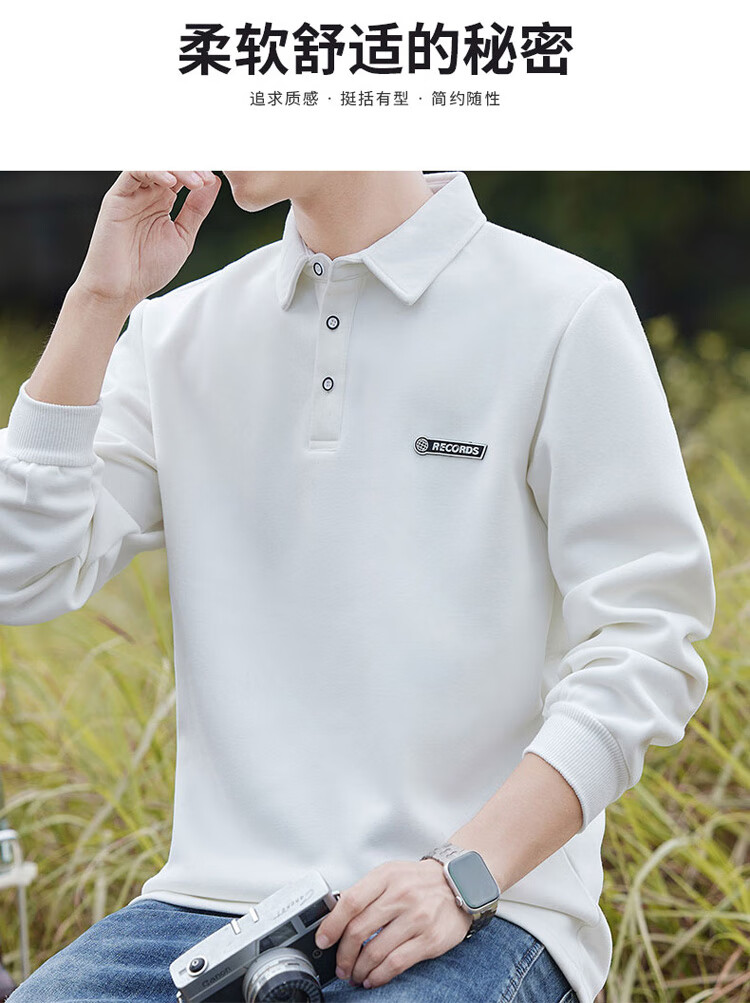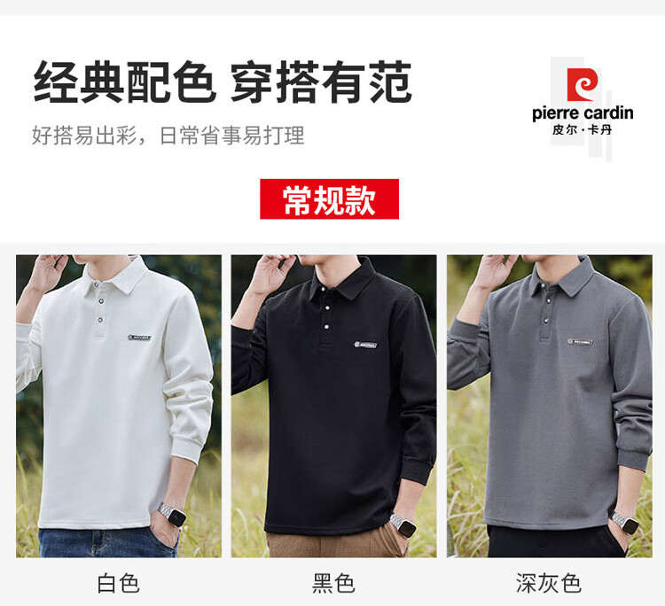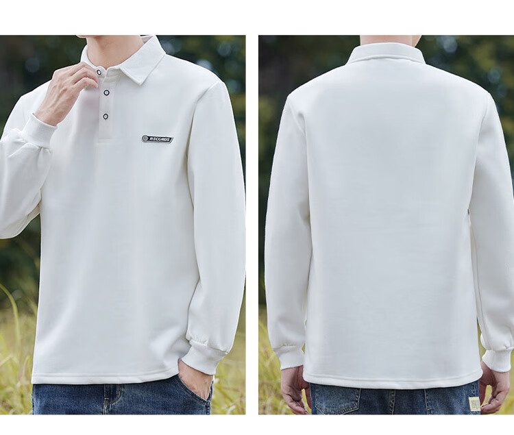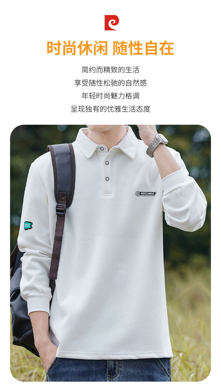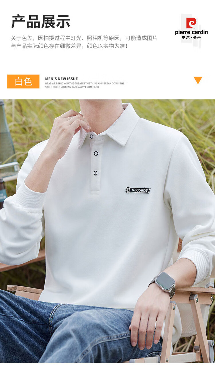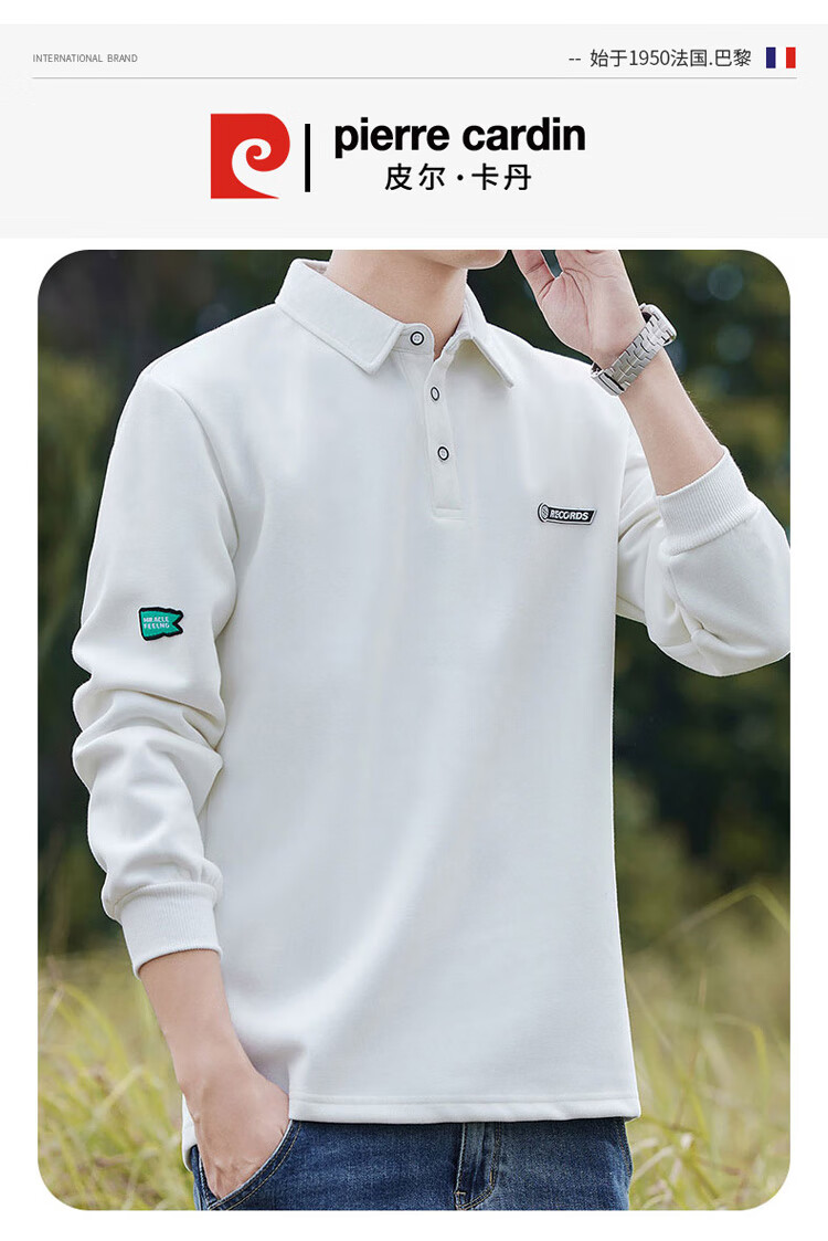 Pierre Cardin sweatshirt men's autumn and winter trendy polo collar bottoming shirt men's long-sleeved T-shirt loose casual men's white 2XL