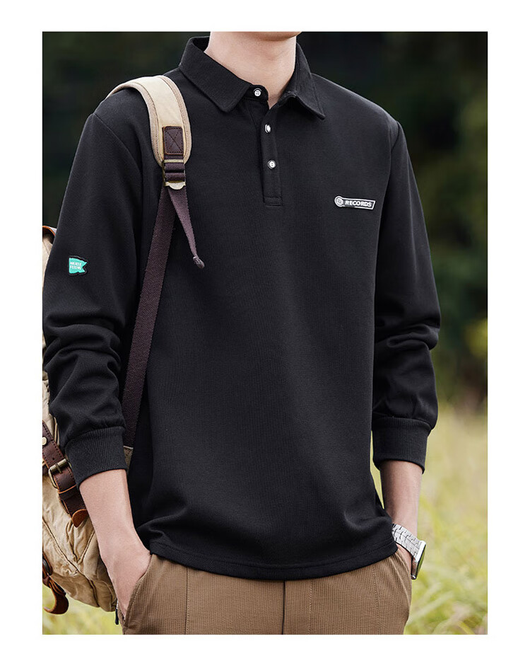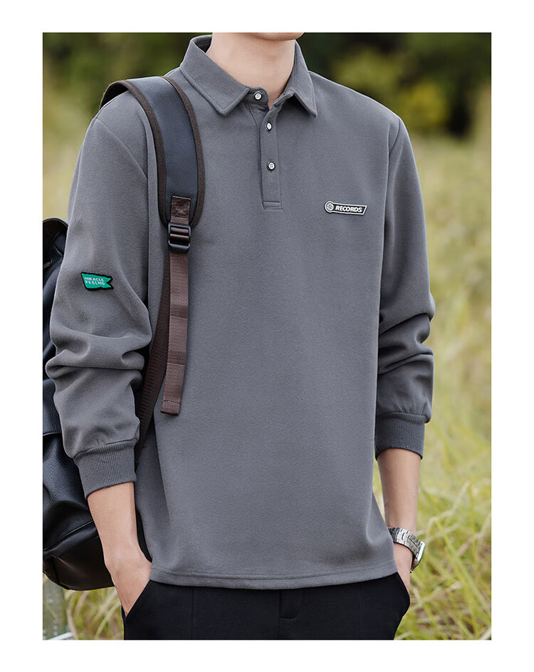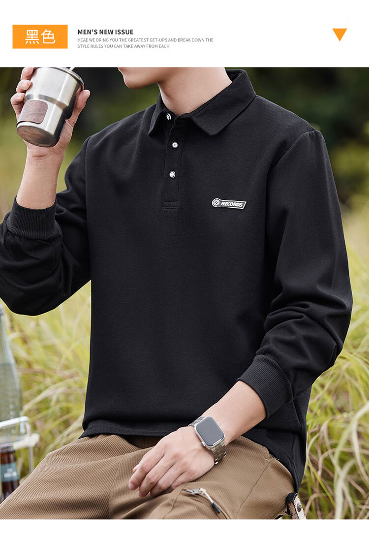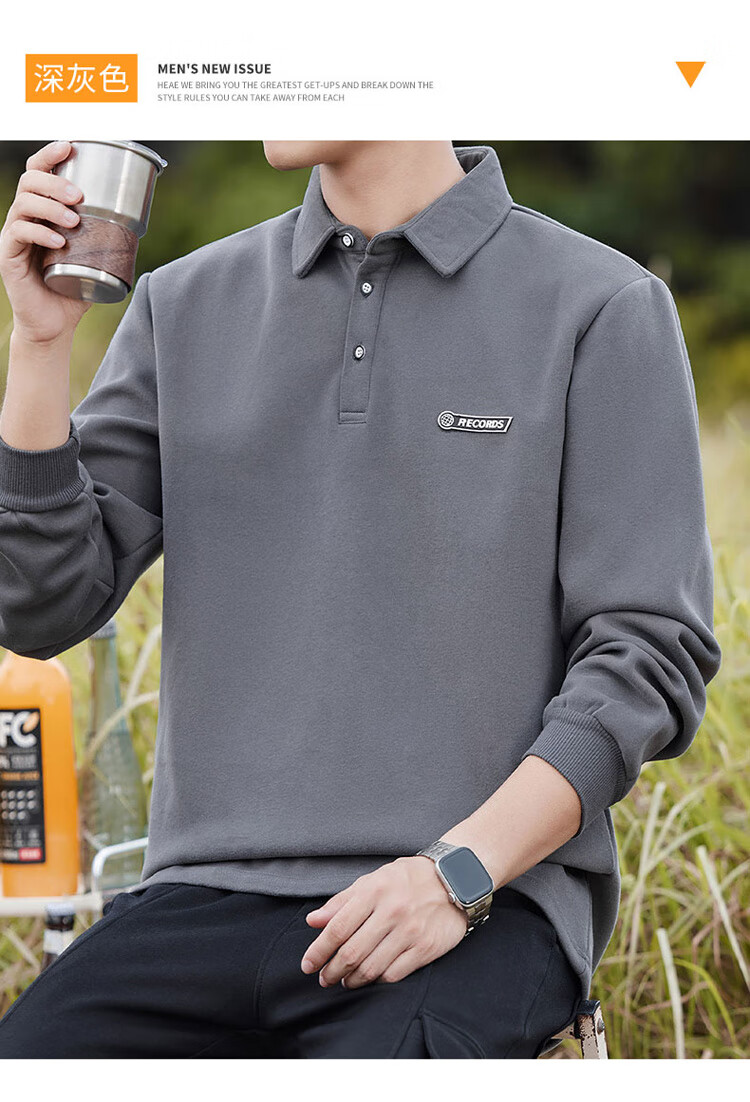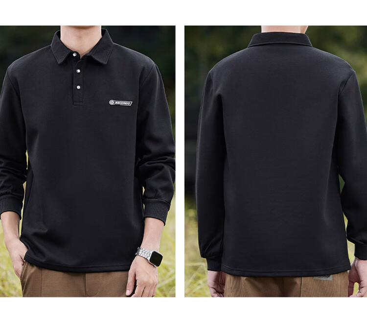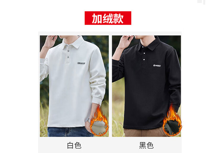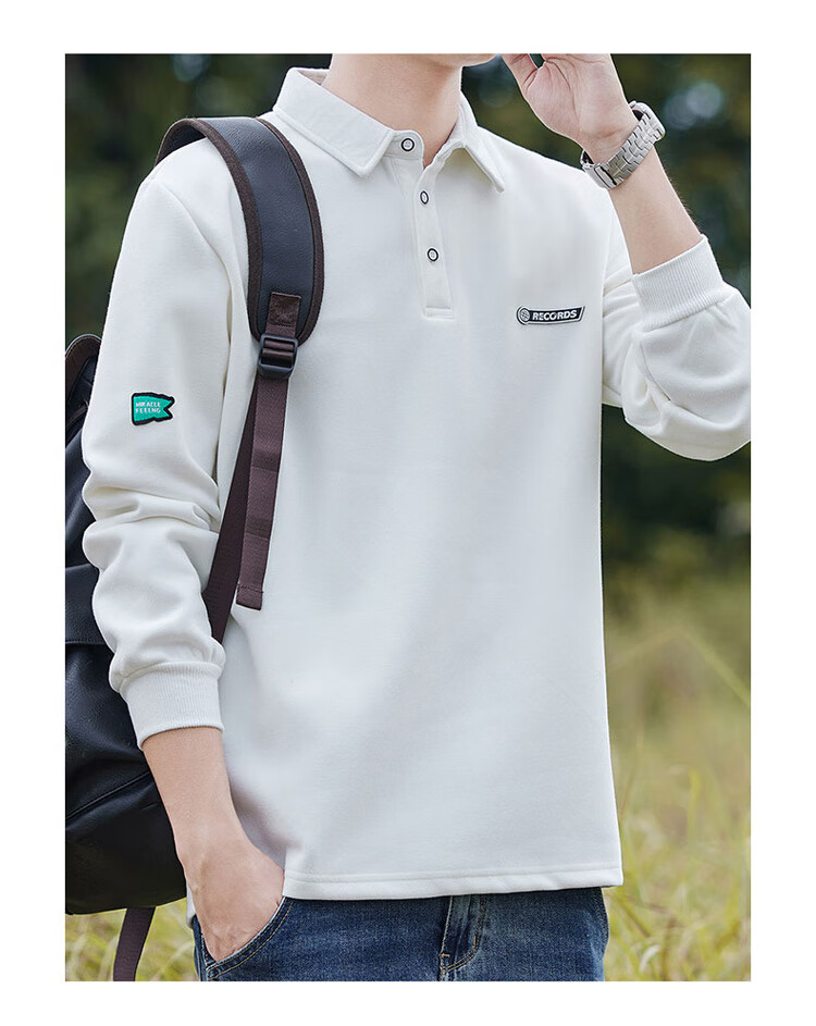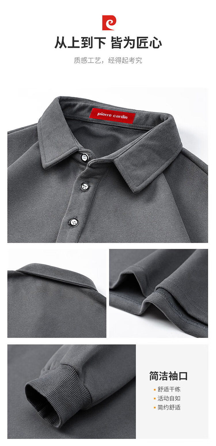 Pierre Cardin sweatshirt men's autumn and winter trendy polo collar bottoming shirt men's long-sleeved T-shirt loose casual men's white 2XL