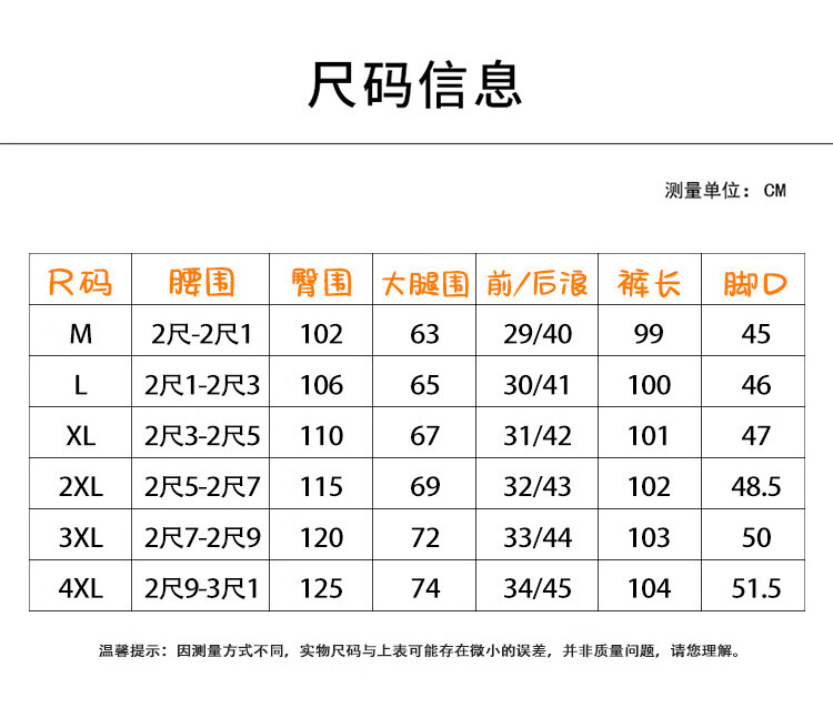 Outseam (cm) 99 cm 101.5 cm 104 cm 106.5 cm 109 cm