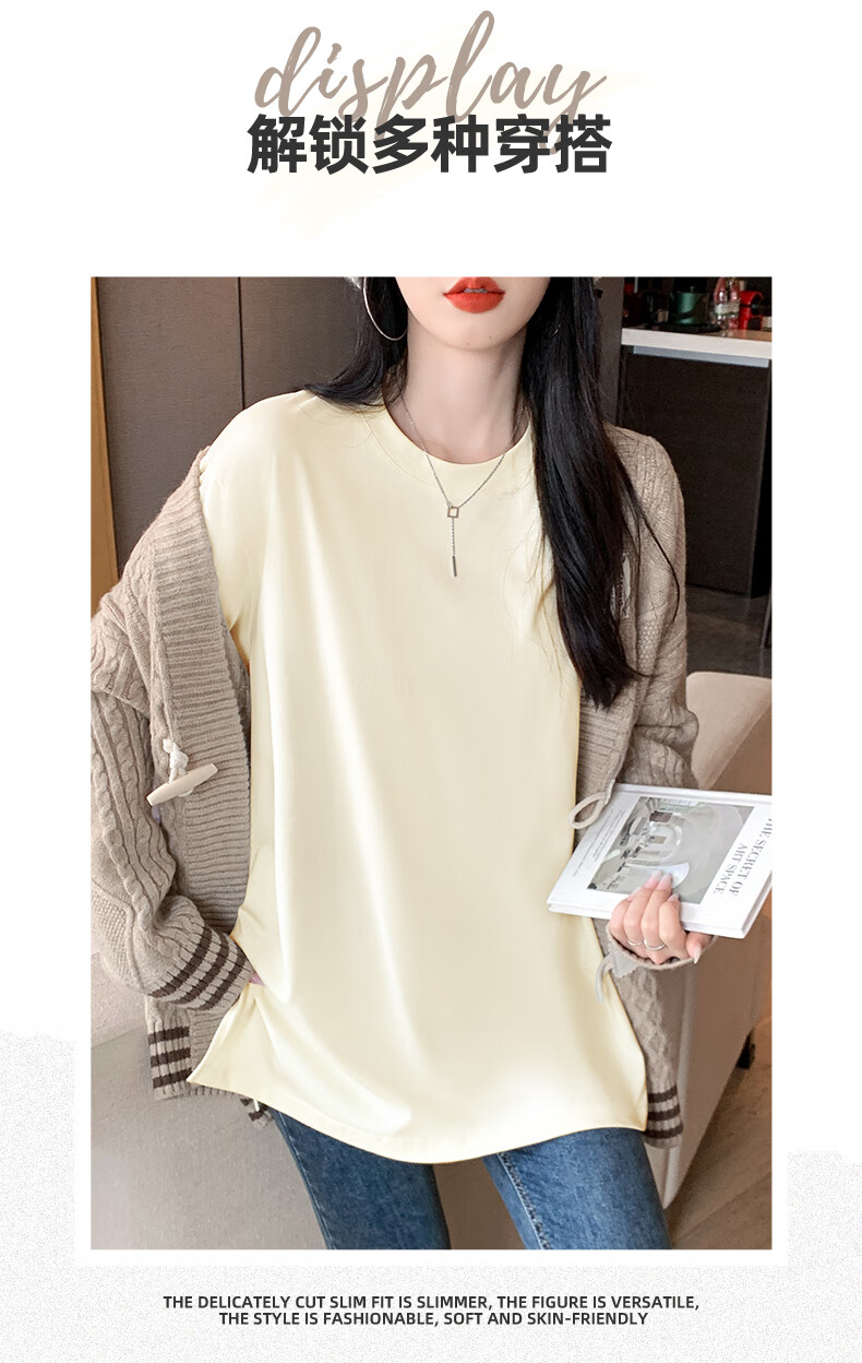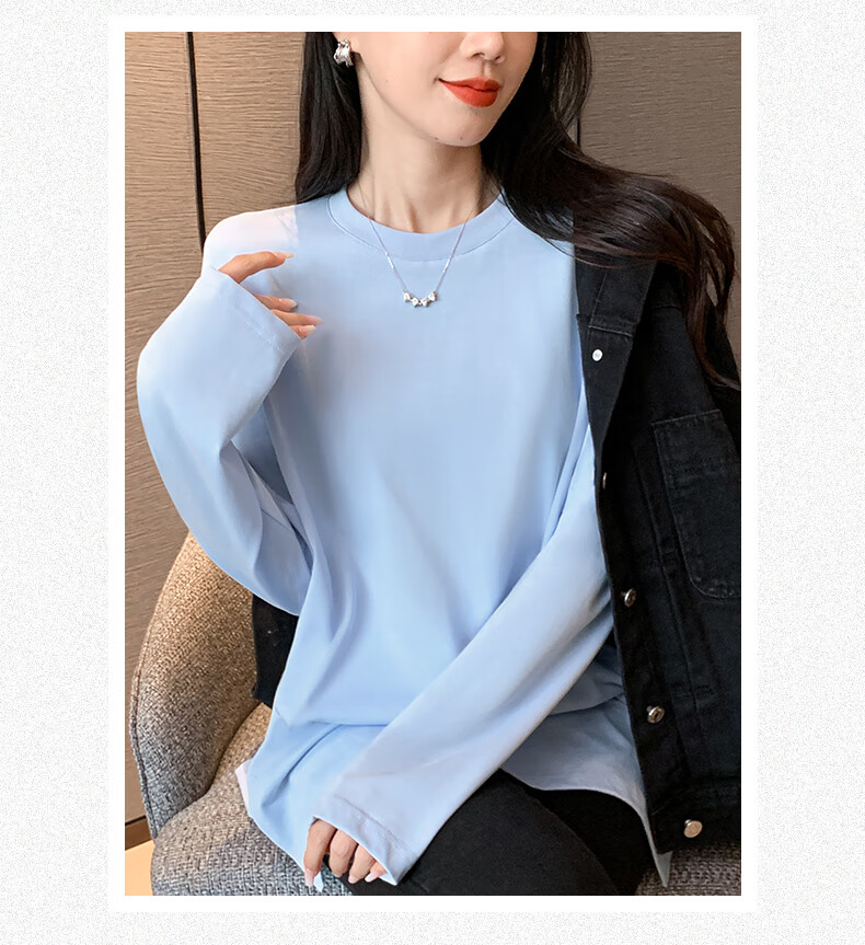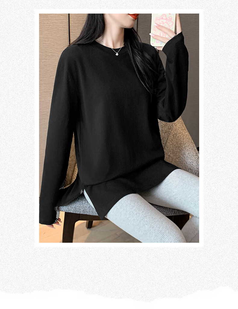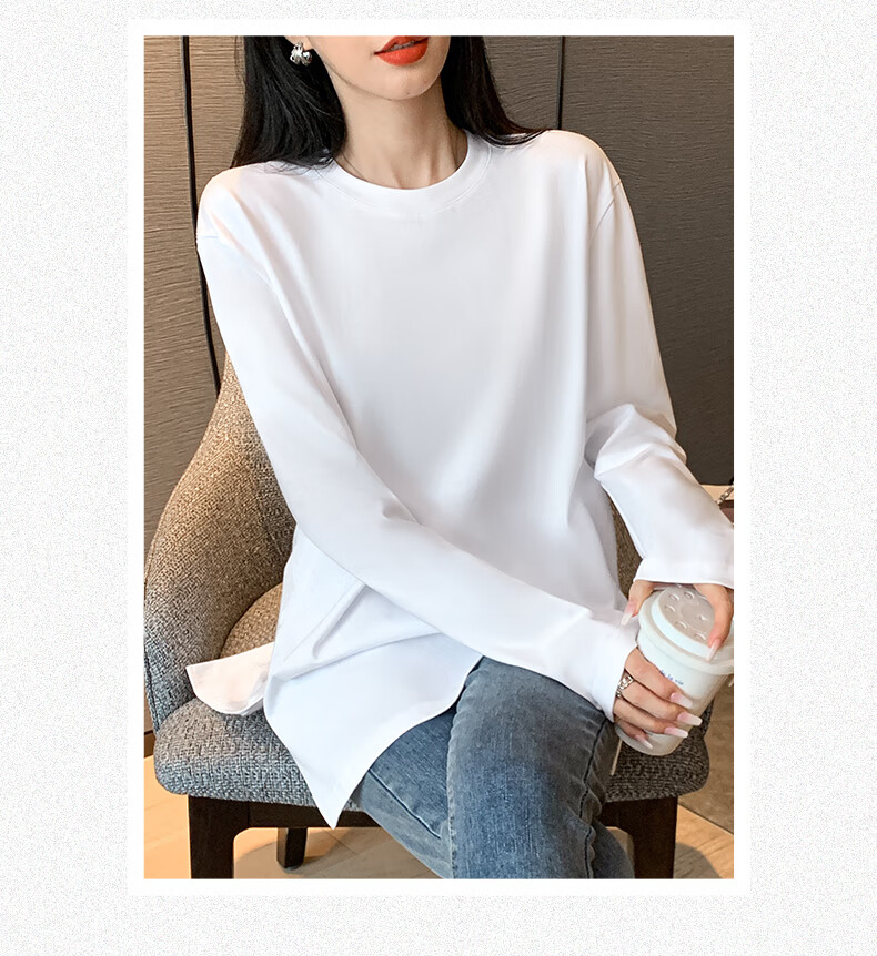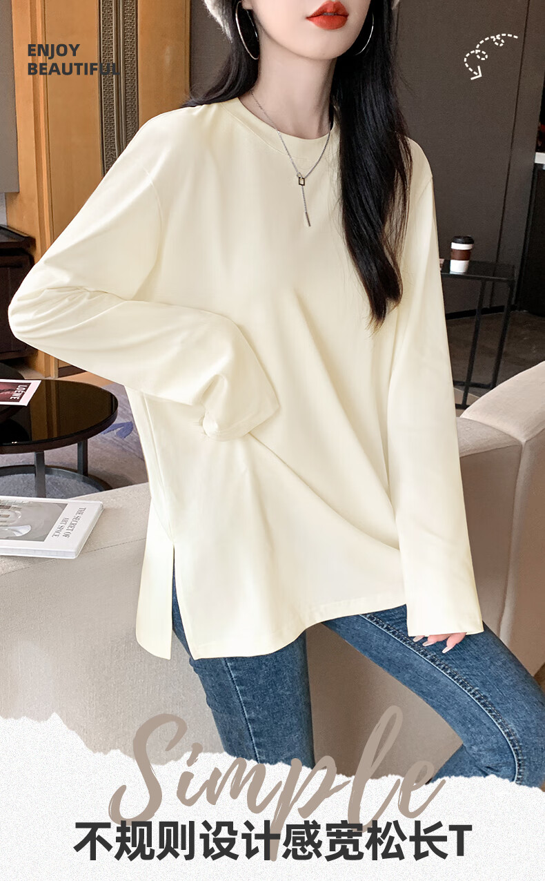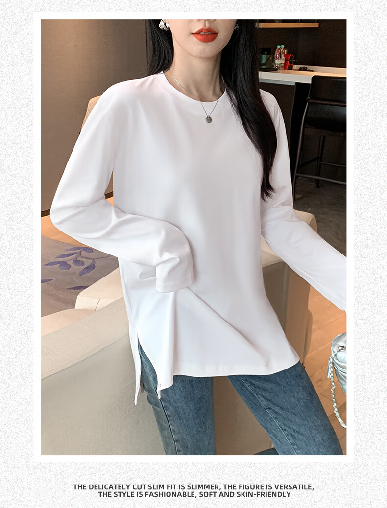 Pull back long-sleeved T-shirt women's autumn clothing 2025 new pure cotton white inner bottoming shirt right shoulder loose casual slit top