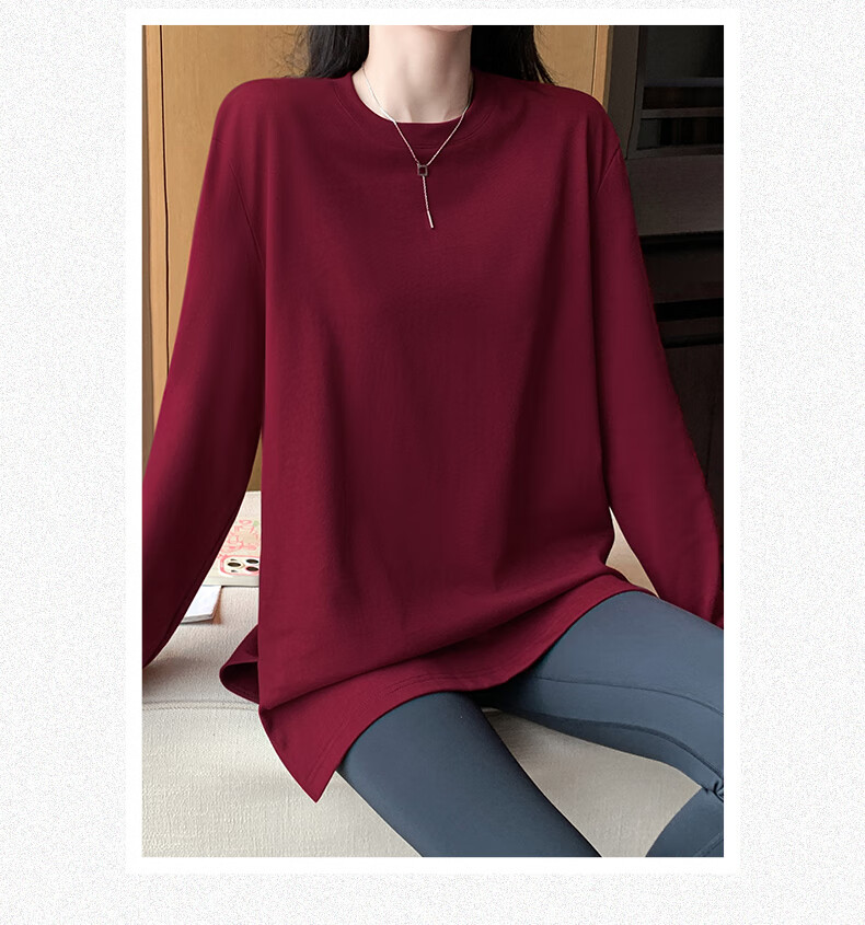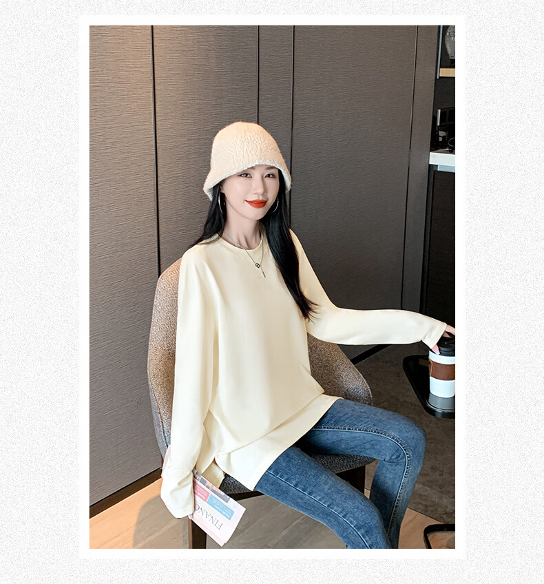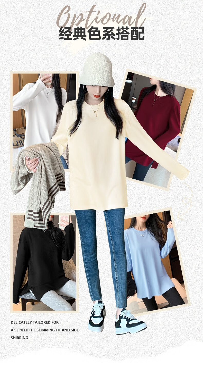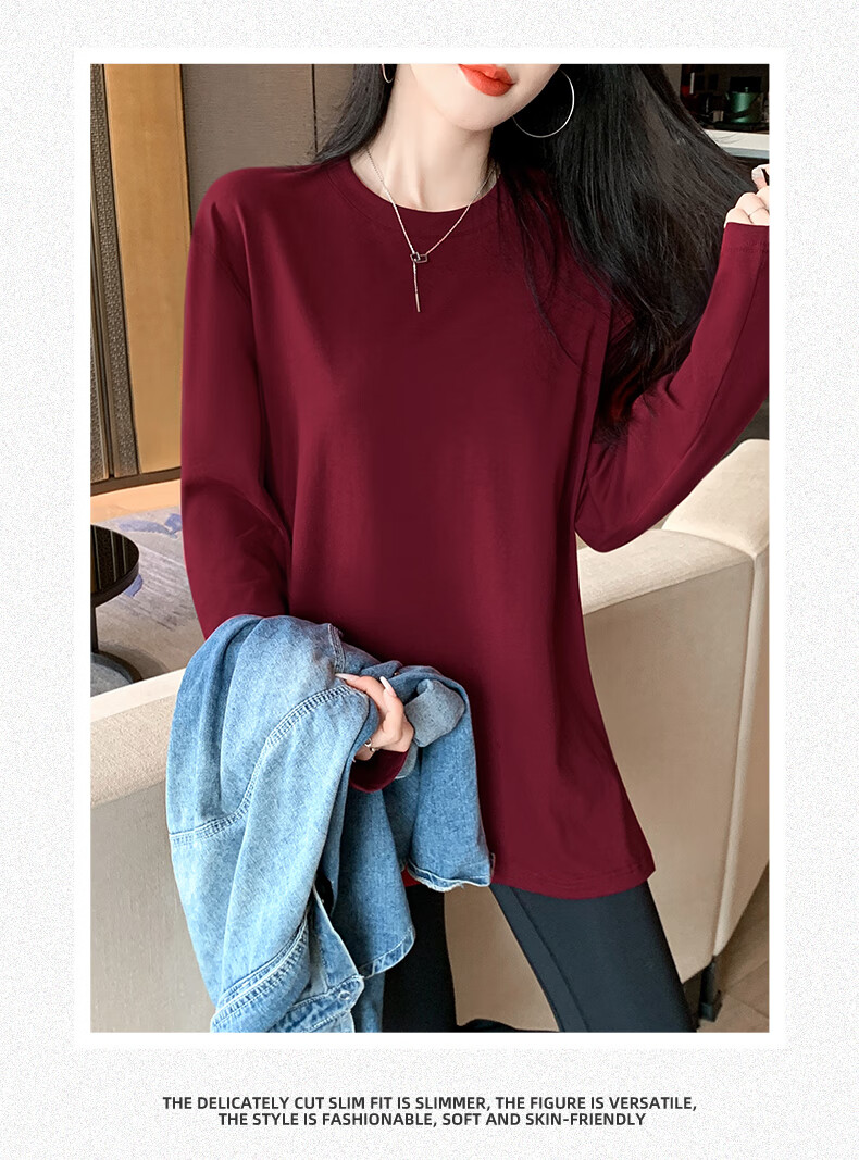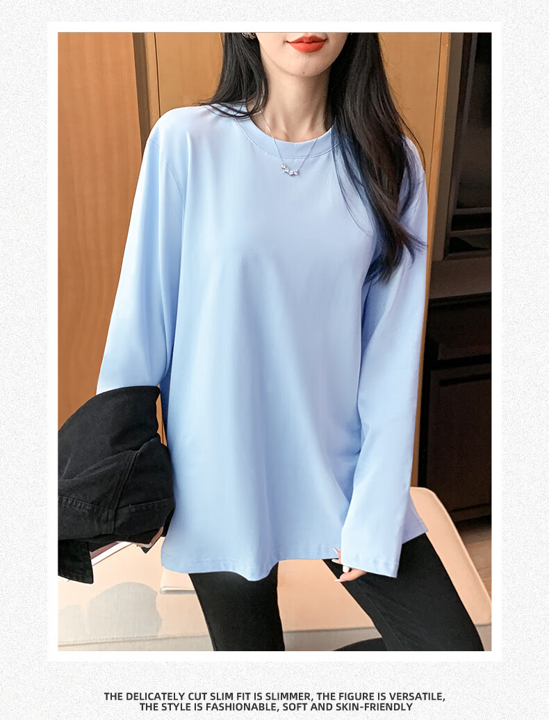 Pull back long-sleeved T-shirt women's autumn clothing 2025 new pure cotton white inner bottoming shirt right shoulder loose casual slit top