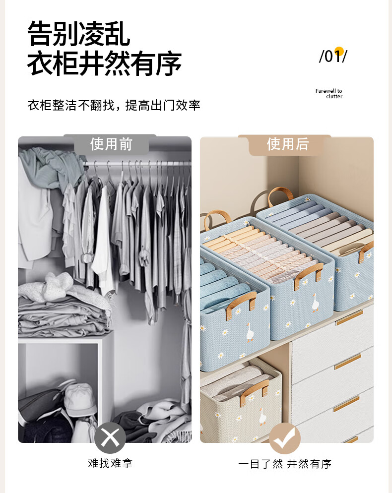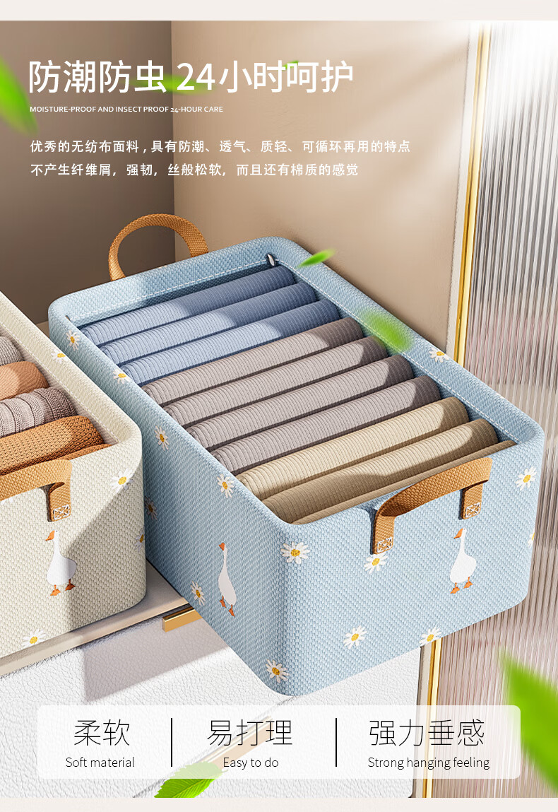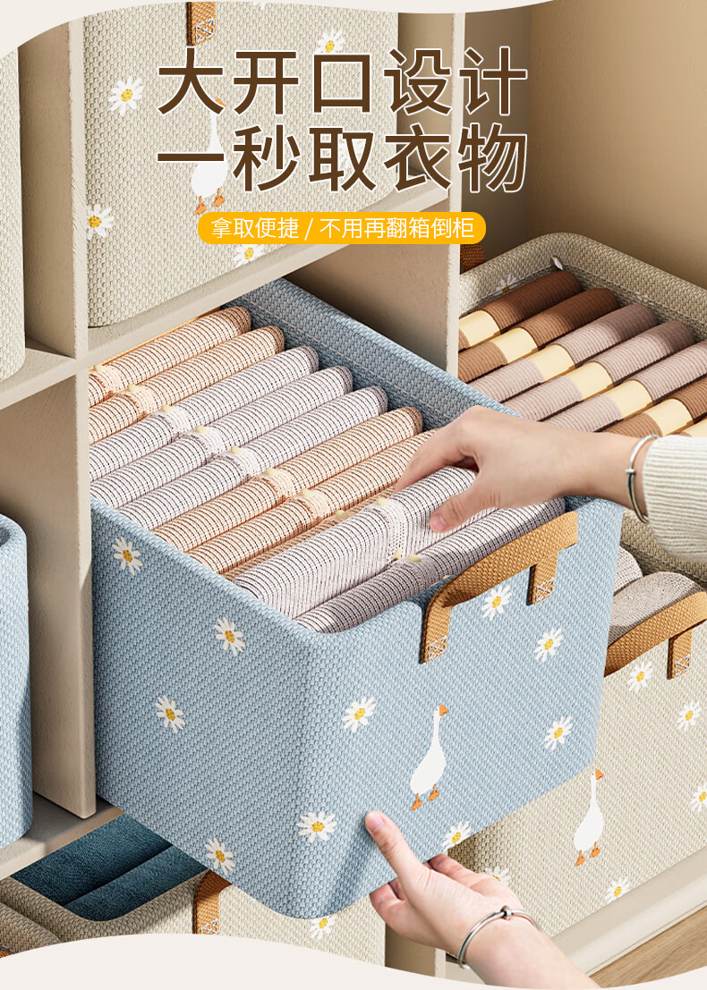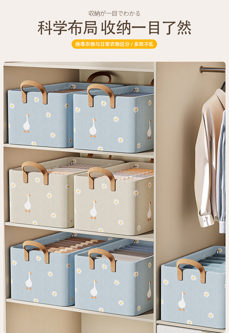 Hear Time Wardrobe Storage Box Clothes Storage Box Storage Basket Storage Box Layered Artifact Thickened Fabric Blue 26L