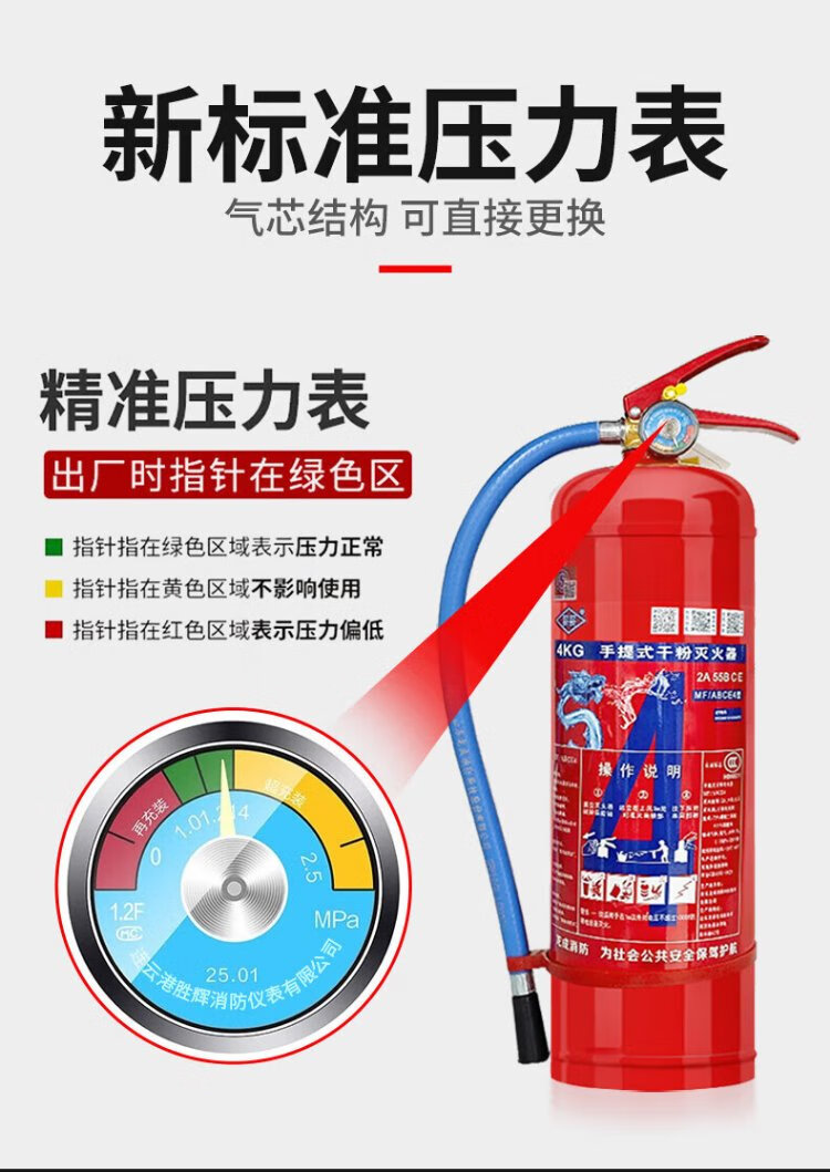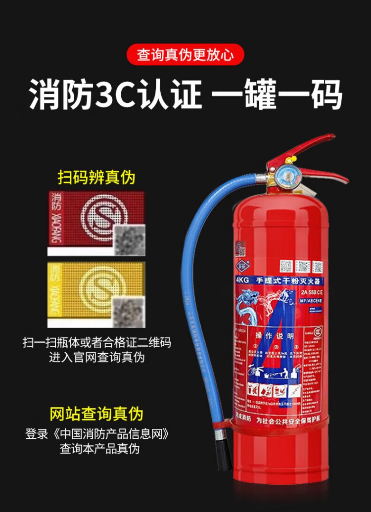 Xinxin 25-year new national standard 4kg dry powder fire extinguisher commercial household vehicle national fire protection 3c certification MFZ/ABCE4