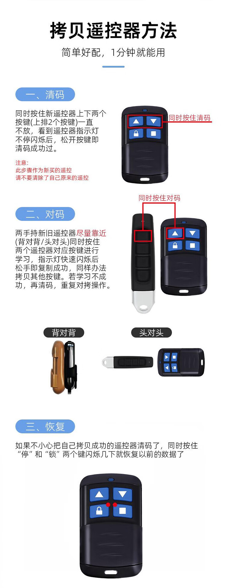 Huili Electric Rolling Shutter Door Copy Rolling Shutter Gate Telescopic Door Key Garage Door Remote Control Waterproof 433/315 433 Waterproof Model