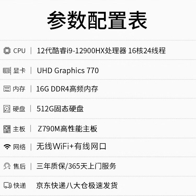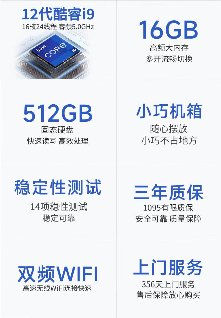 Five-color fish 12th generation i9 16-core desktop computer console game design office commercial home mini computer complete set (12th generation i9-12900HX 16G 512G wireless WiFi)
