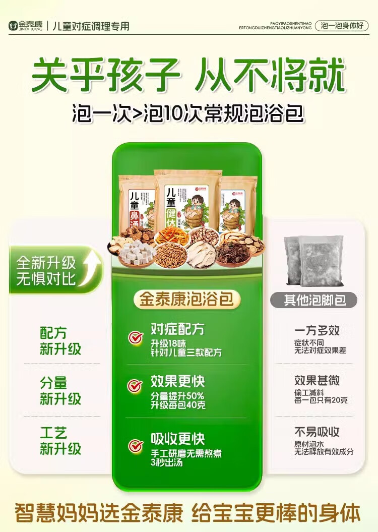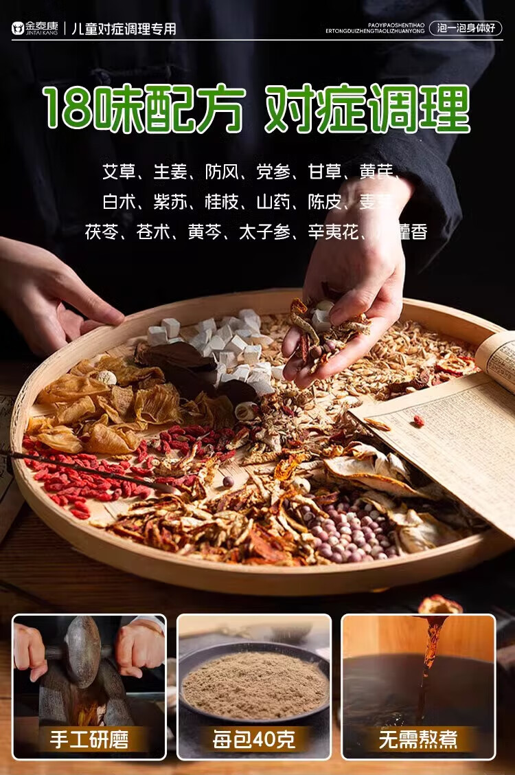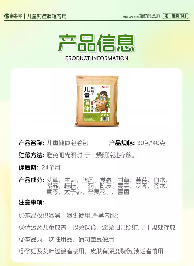 Jintaikang children's foot bath medicated bag 40g*30 bags, regulating the spleen and stomach, removing dampness, medicated bath bag, mugwort leaf baby foot bath bag