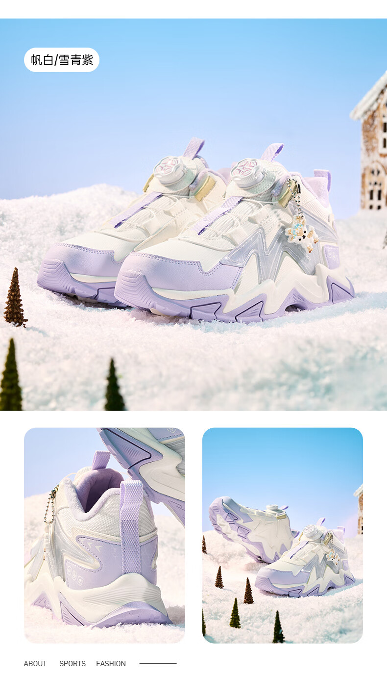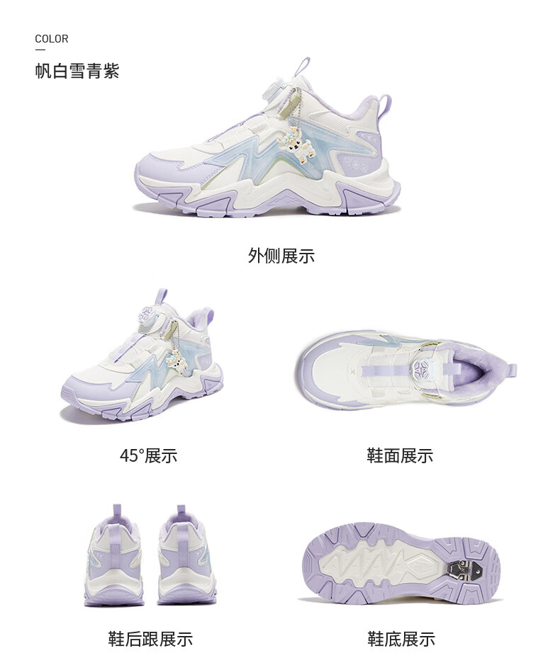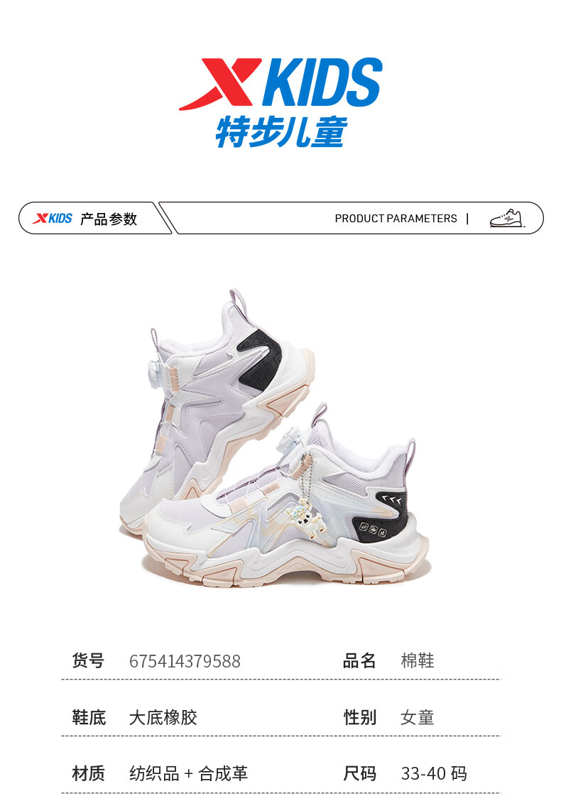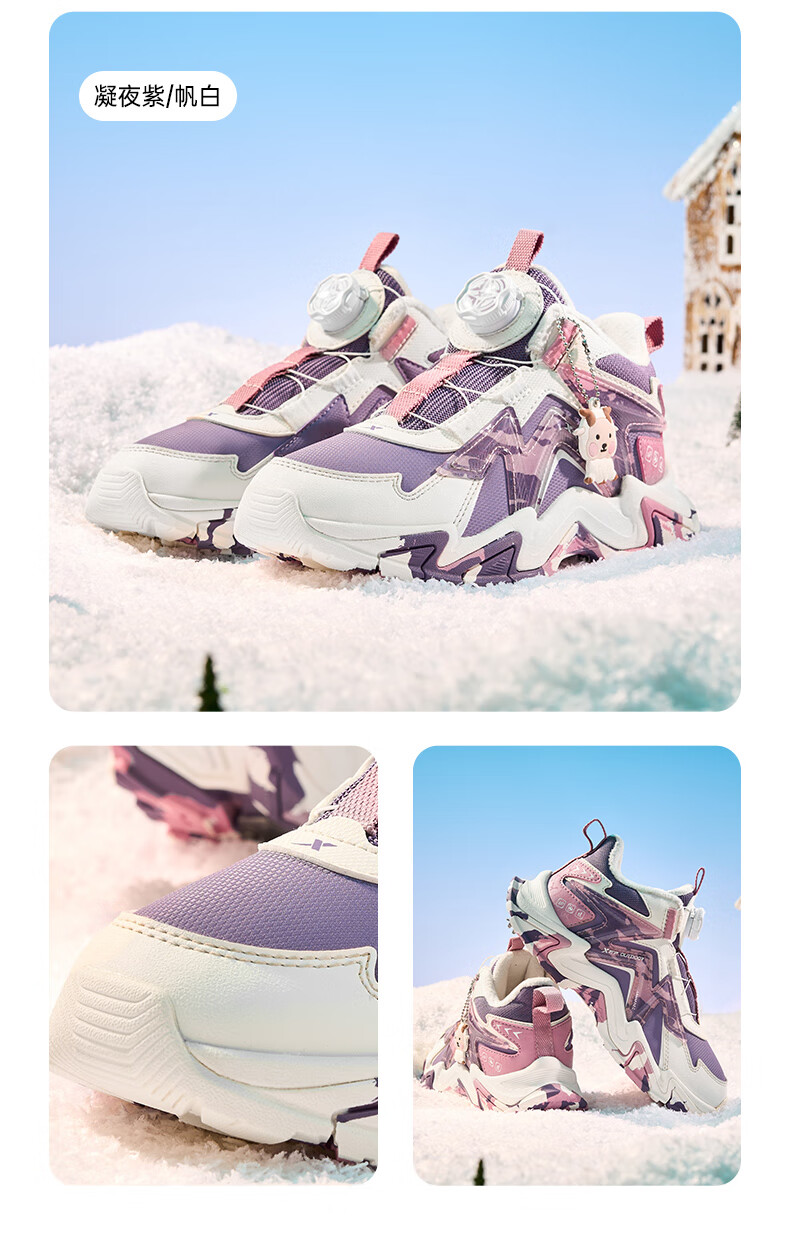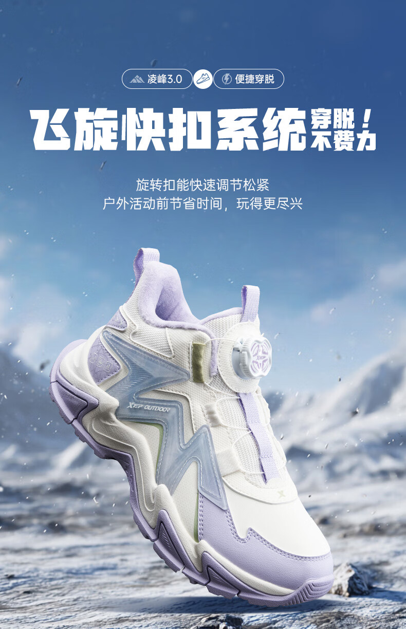 Xtep Children's Shoes Lingfeng 3.0 Fine Mink Velvet Warm Sports Shoes Anti-Slip Safety Guard Cotton Shoes Ningye Purple/Sail White 36