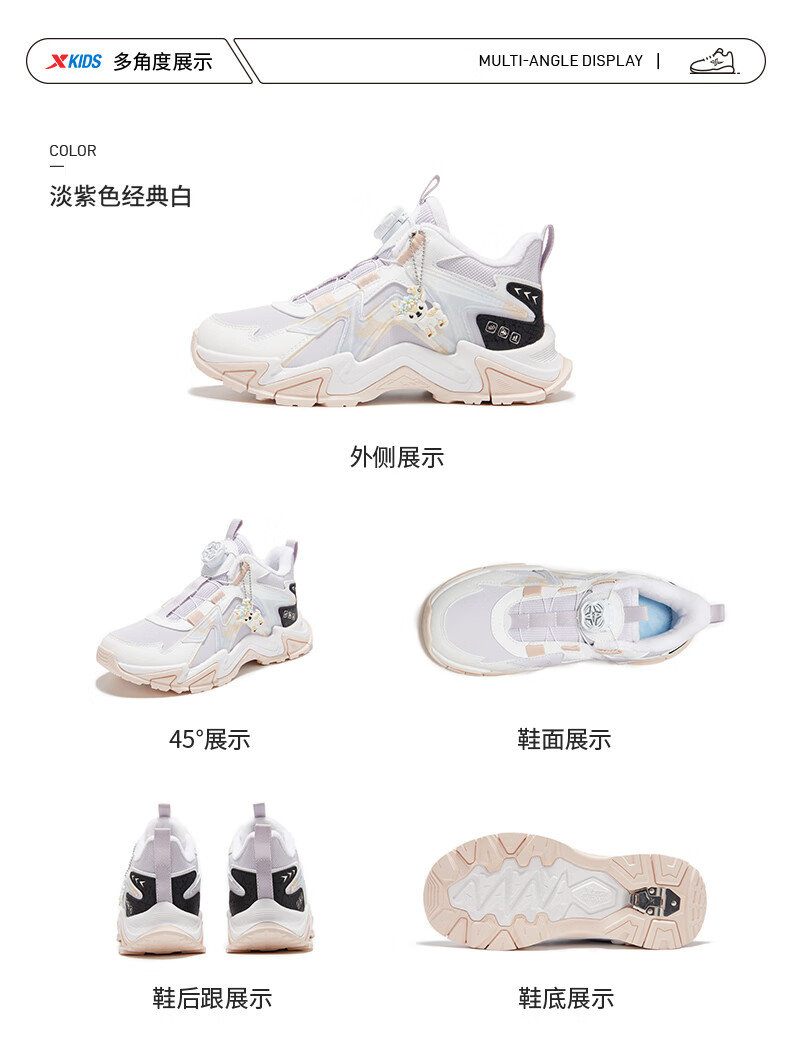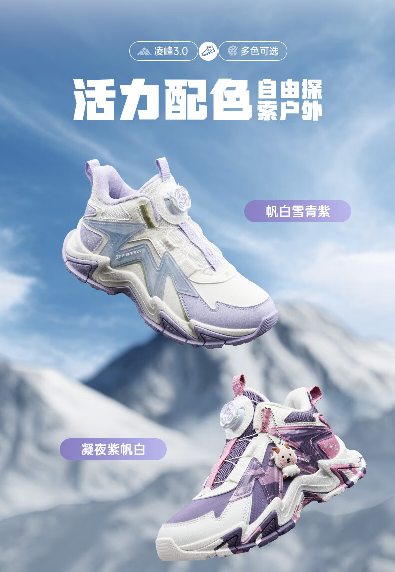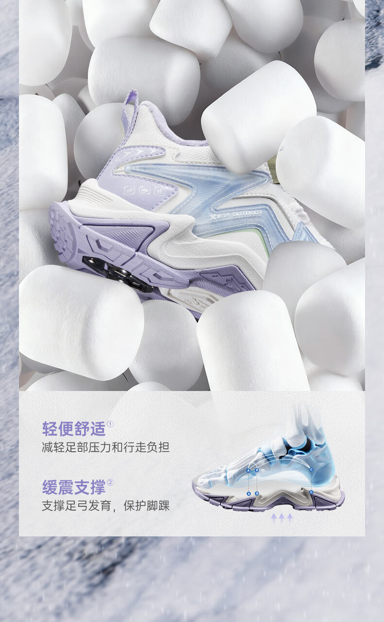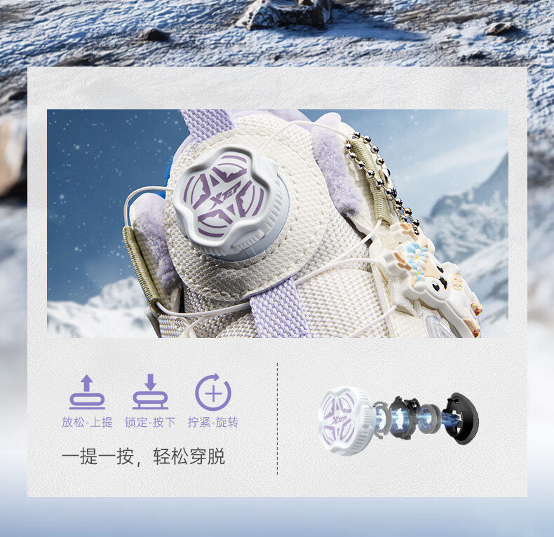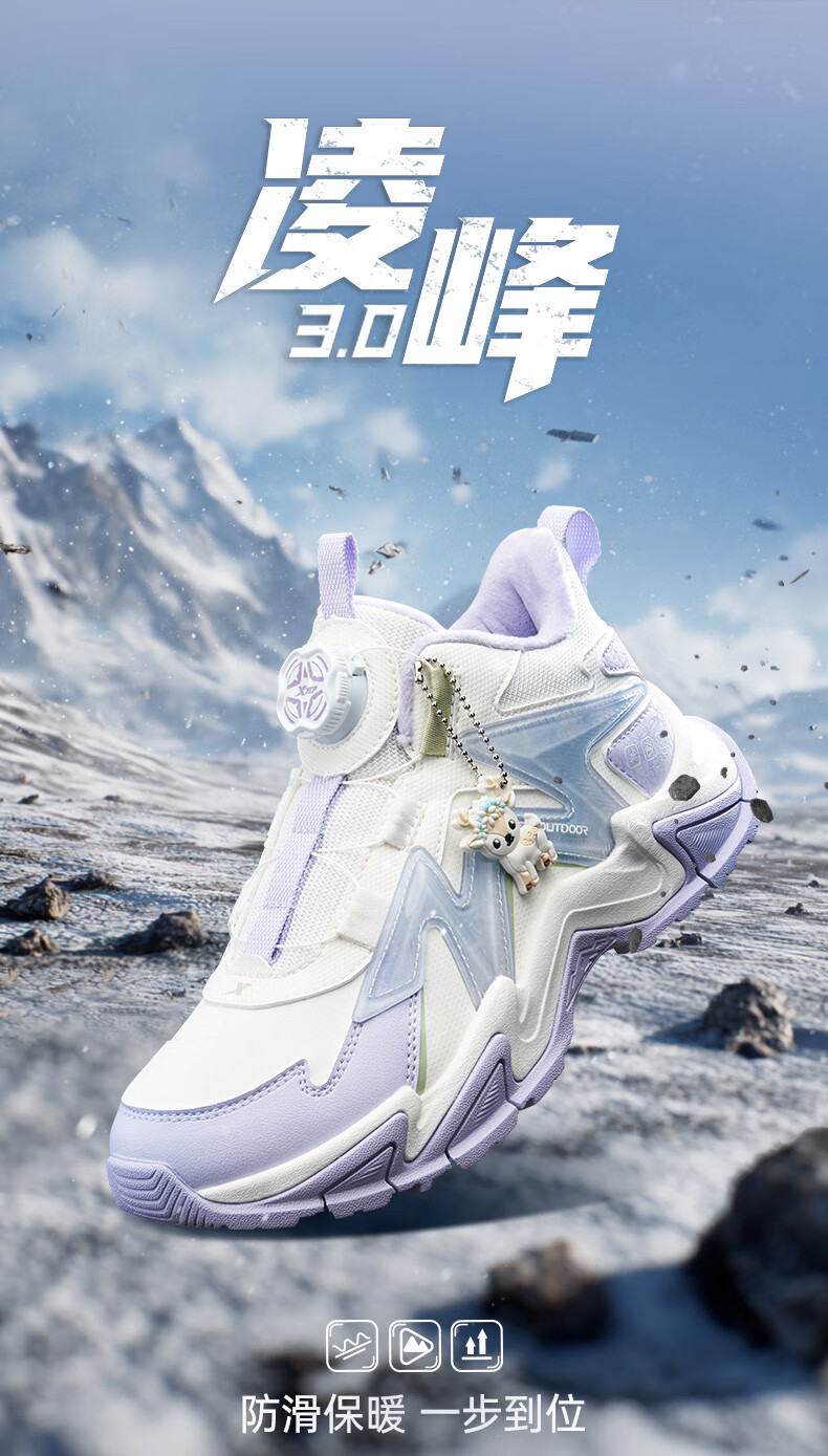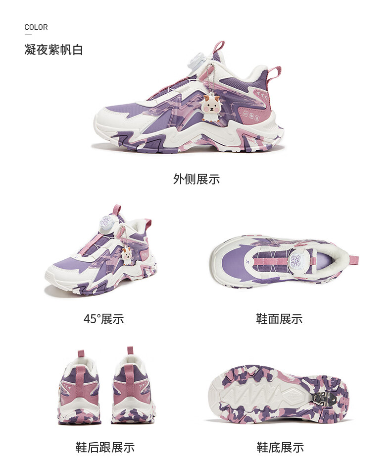 Xtep Children's Shoes Lingfeng 3.0 Fine Mink Velvet Warm Sports Shoes Anti-Slip Safety Guard Cotton Shoes Ningye Purple/Sail White 36