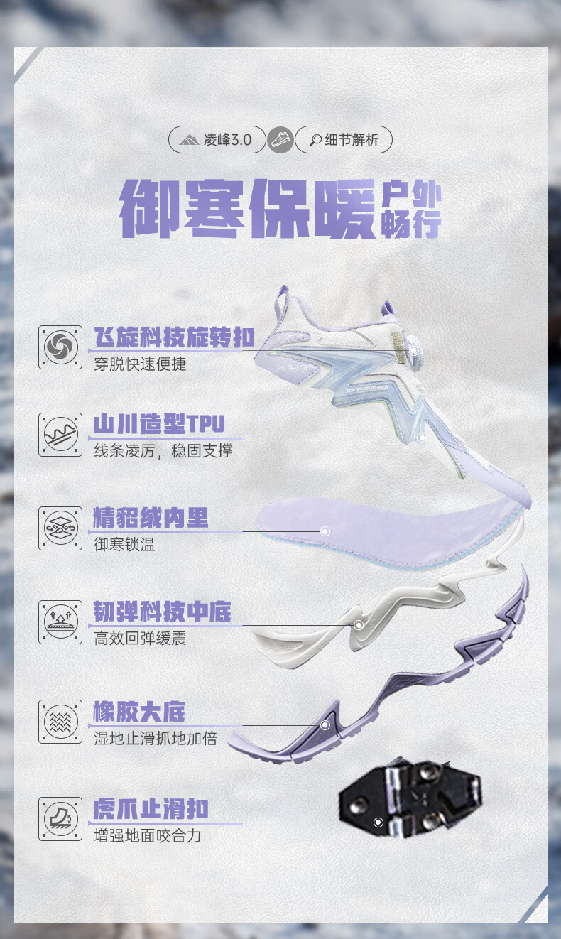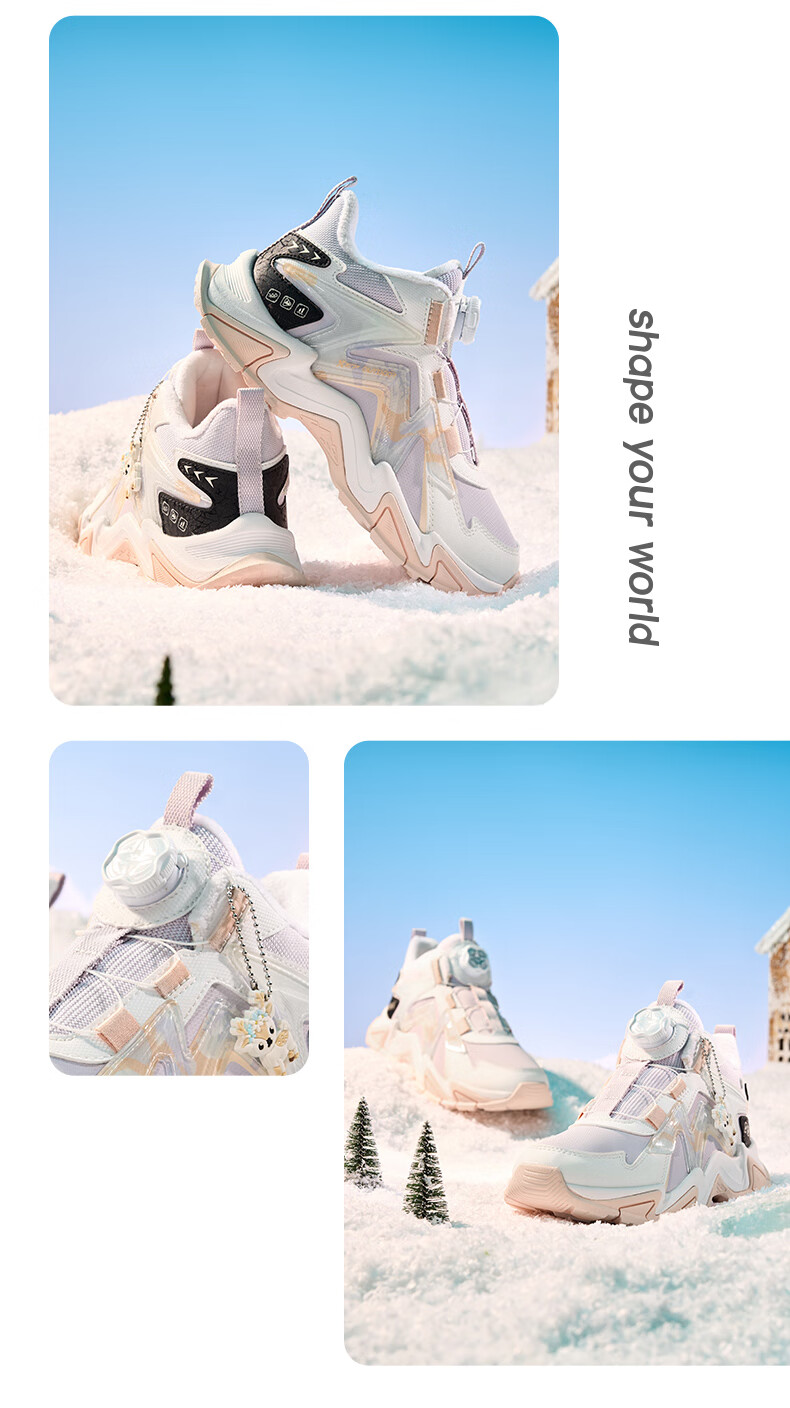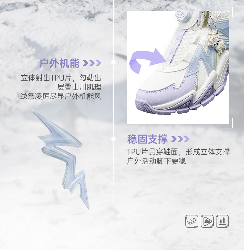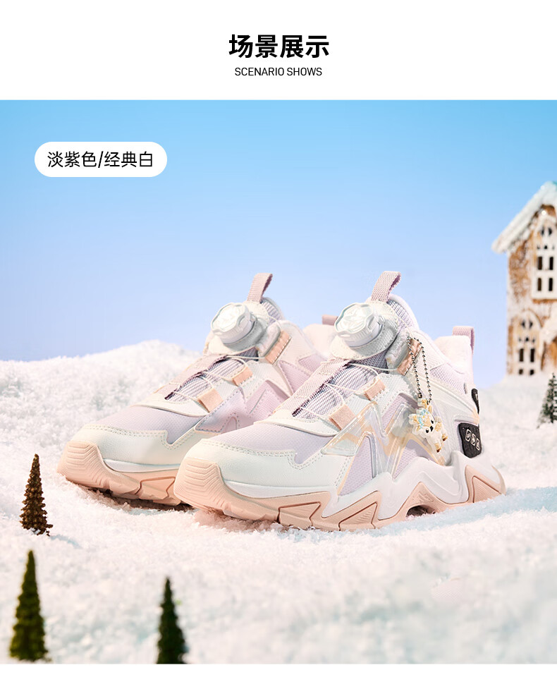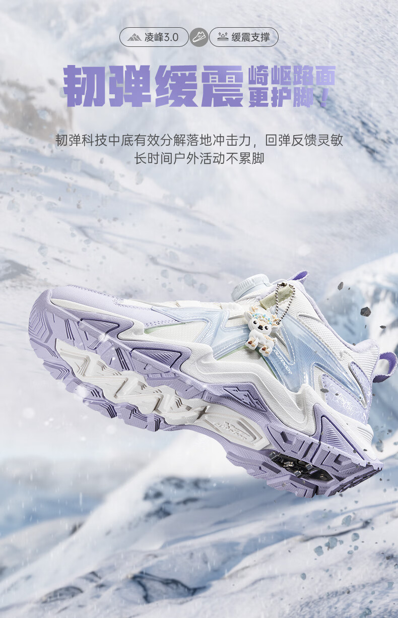 Xtep Children's Shoes Lingfeng 3.0 Fine Mink Velvet Warm Sports Shoes Anti-Slip Safety Guard Cotton Shoes Ningye Purple/Sail White 36
