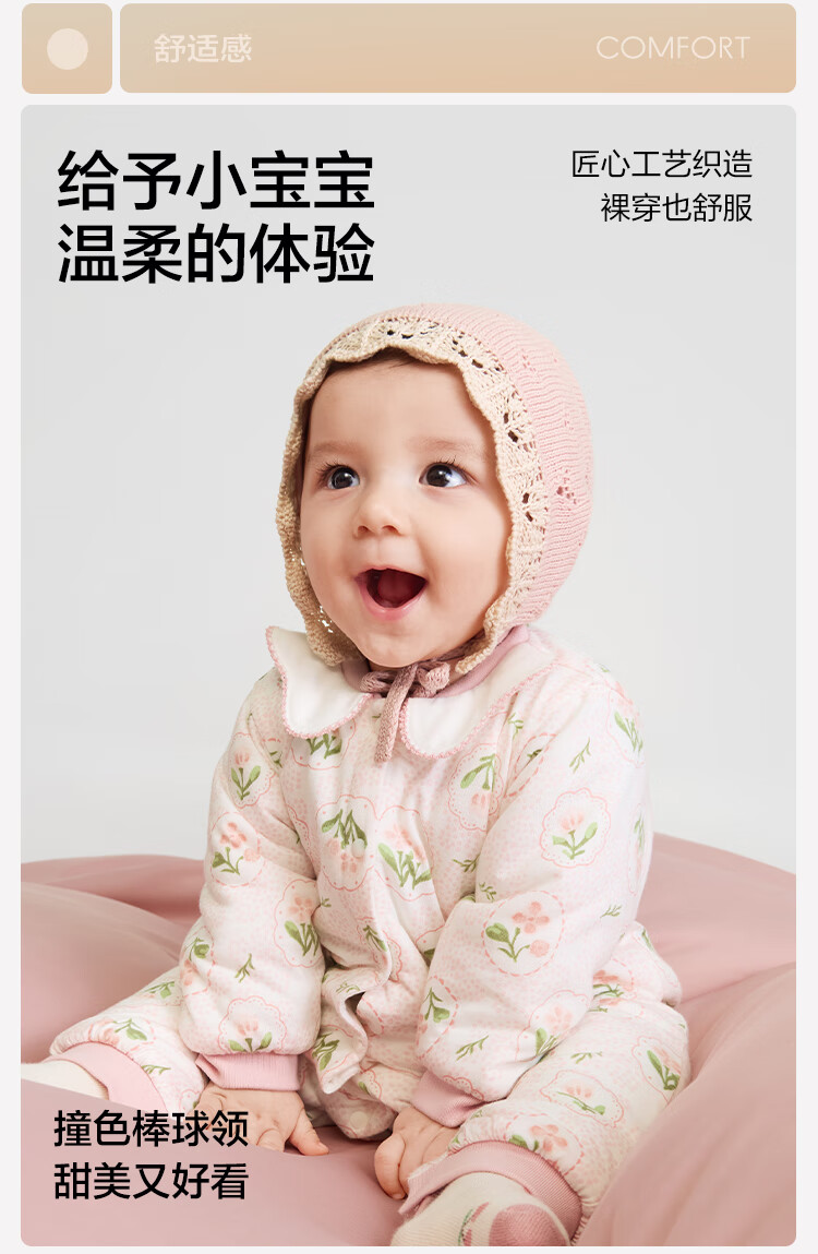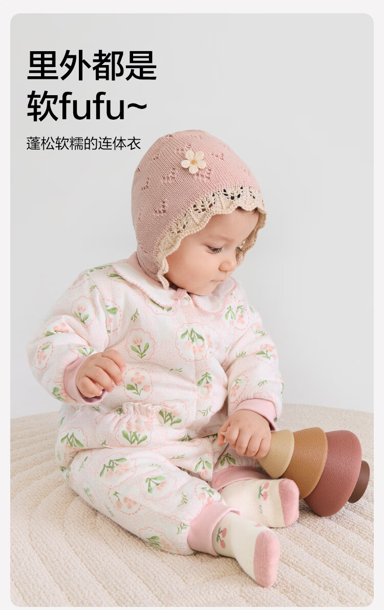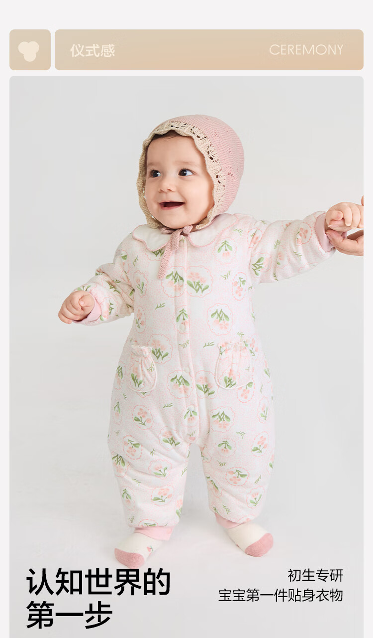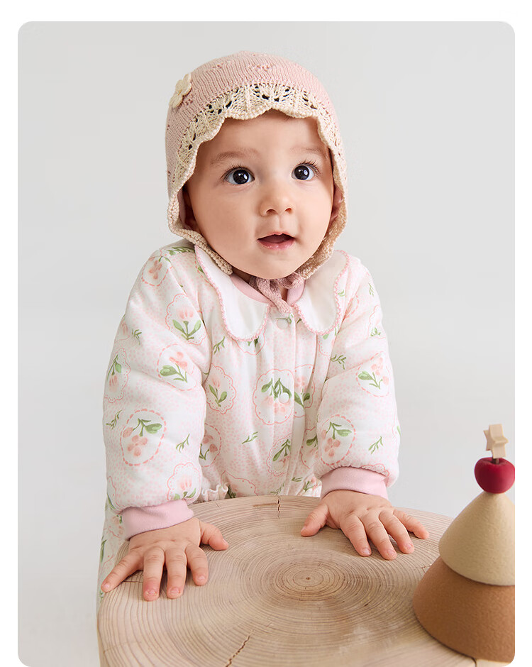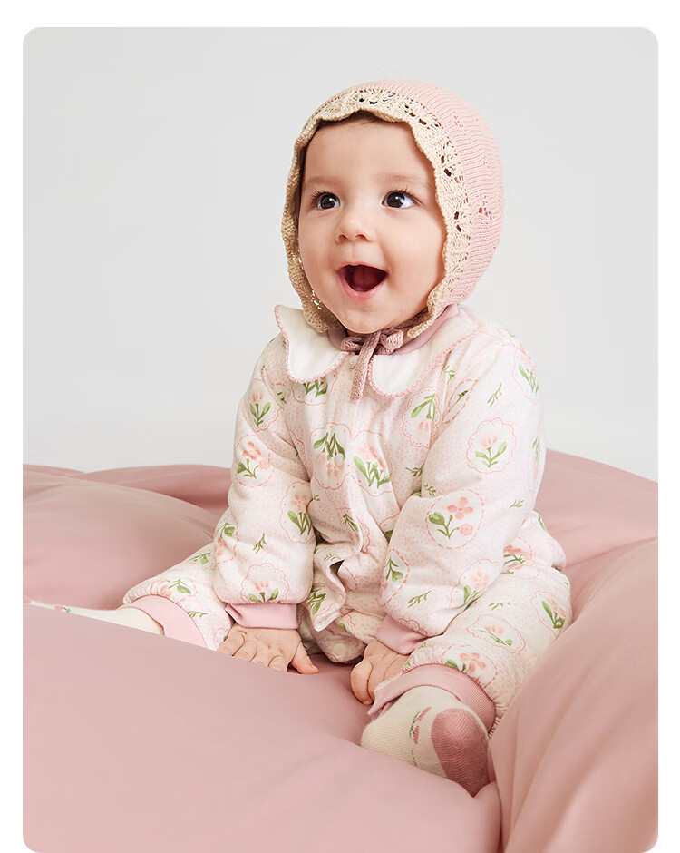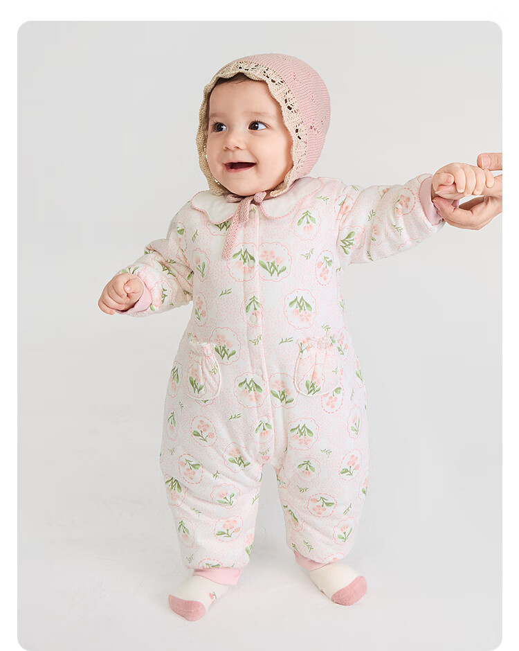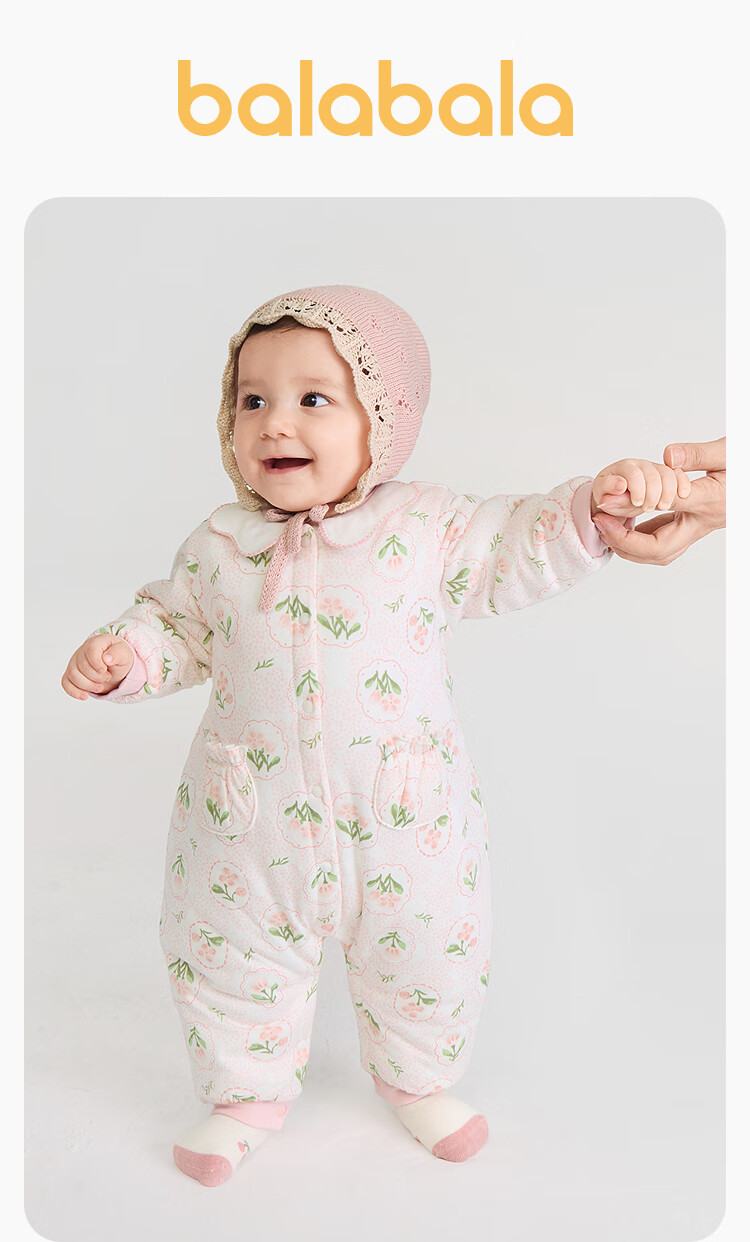 Balabala children's clothing baby jumpsuit baby romper 2025 thickened fart cover sweet floral 208425133206