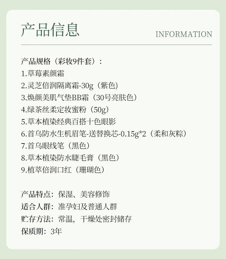 Botanical Makeup Set Lipstick Eyebrow Pencil Mascara Eyeliner Eyeshadow Isolation Cream Air Cushion Setting Powder Cream 9-piece Set