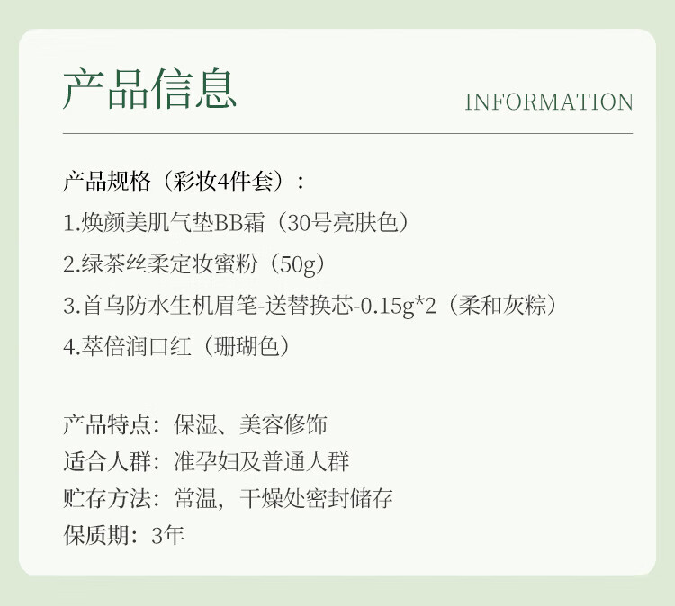Botanical Botanical Makeup Set Lipstick Eyebrow Pencil Glowing Air Cushion Setting Powder 4-piece Set