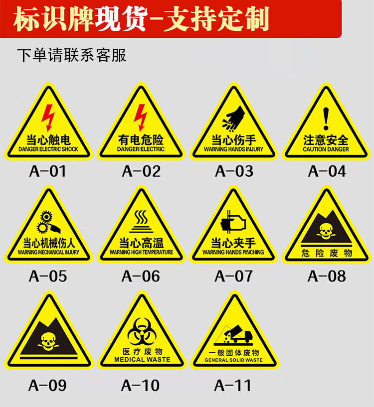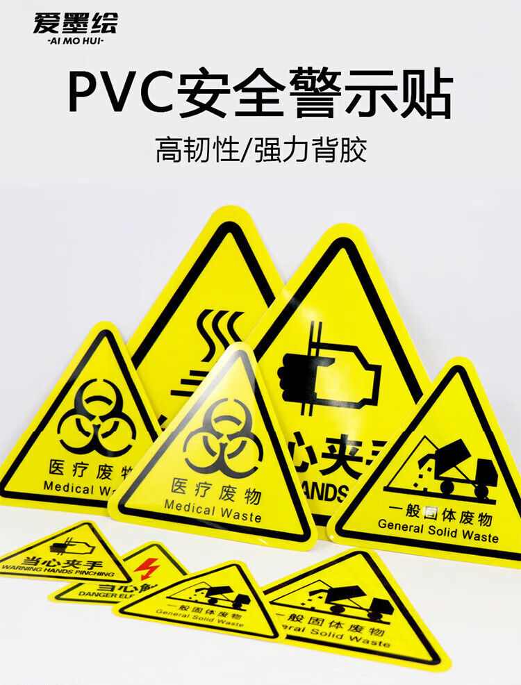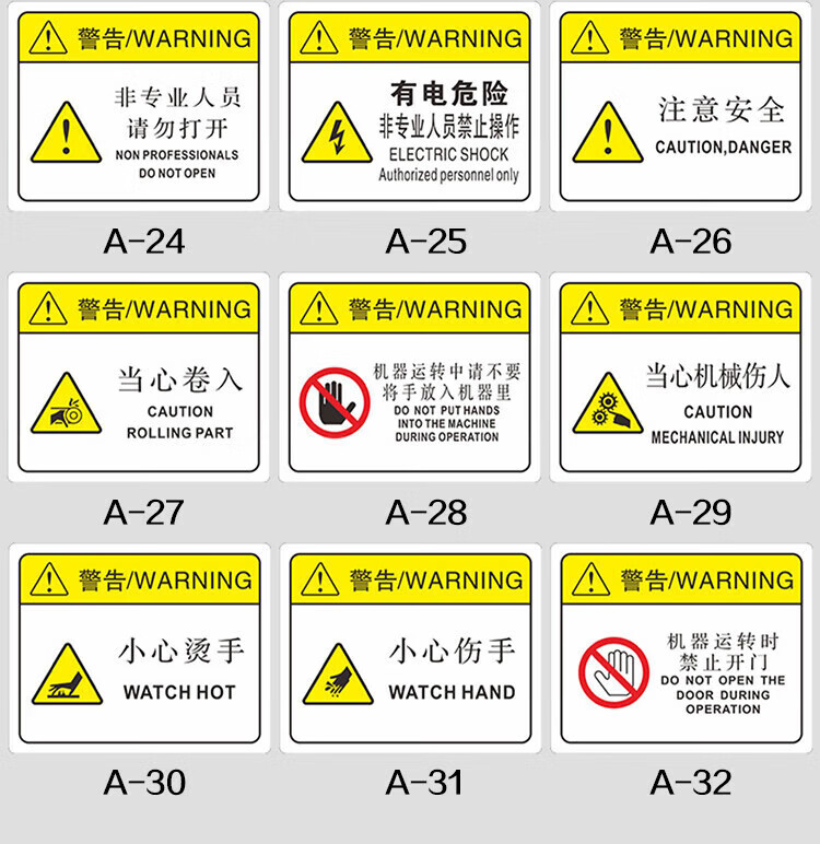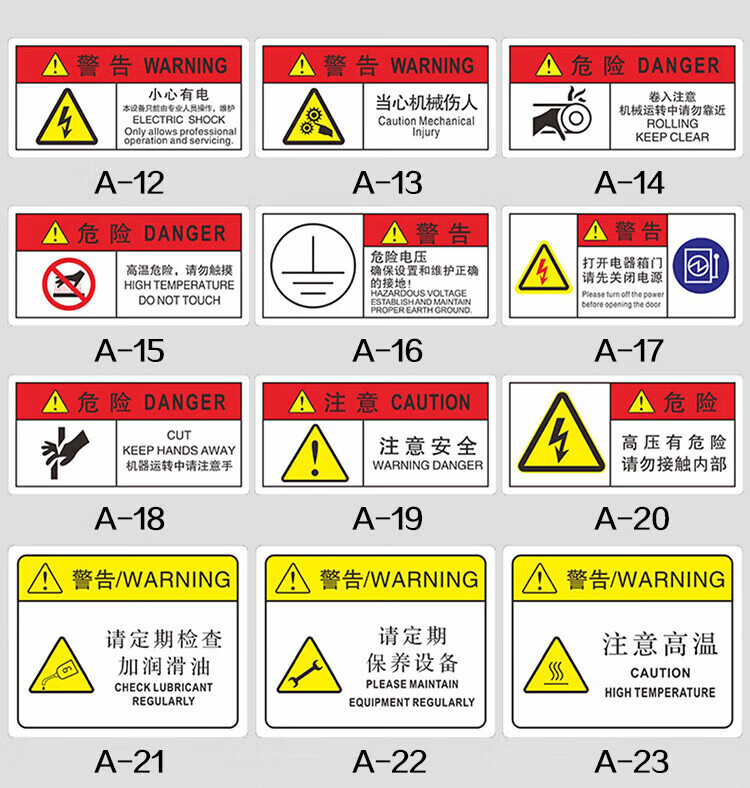 Aimohui Beware of mechanical injury safety warning PVC self-adhesive signage 20*20cm 10 sheets