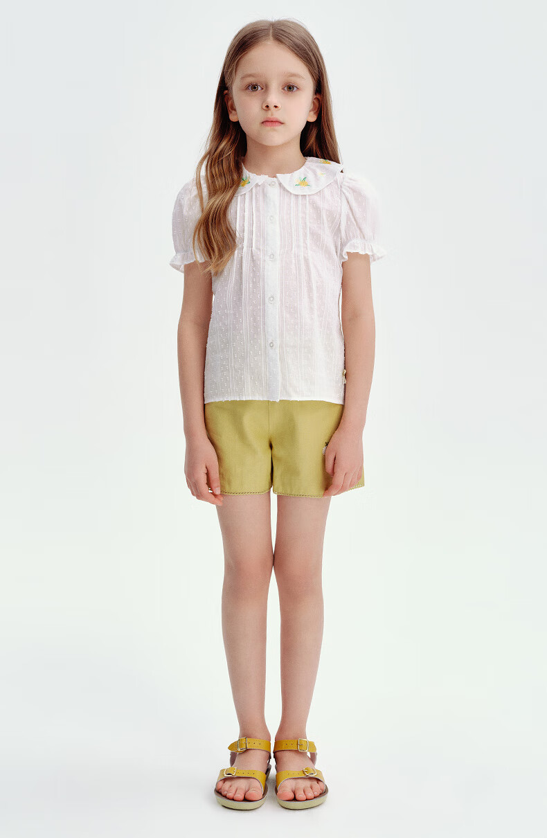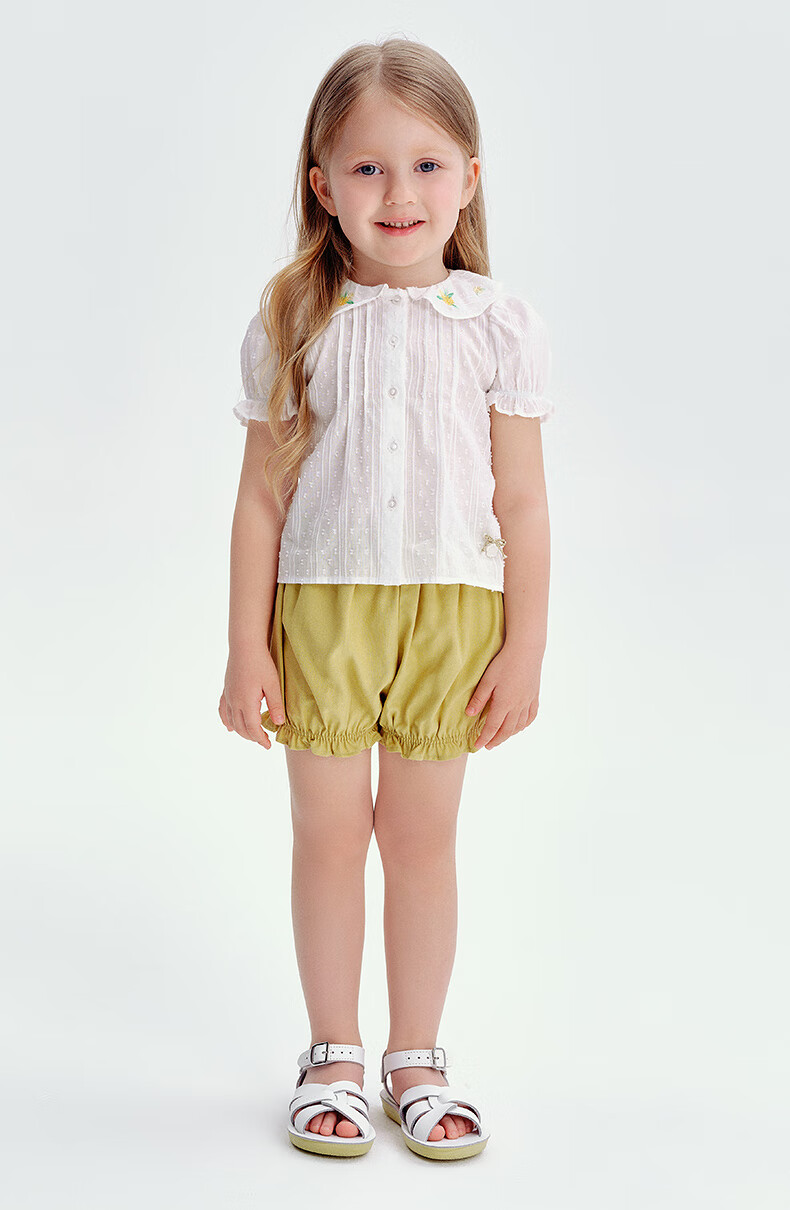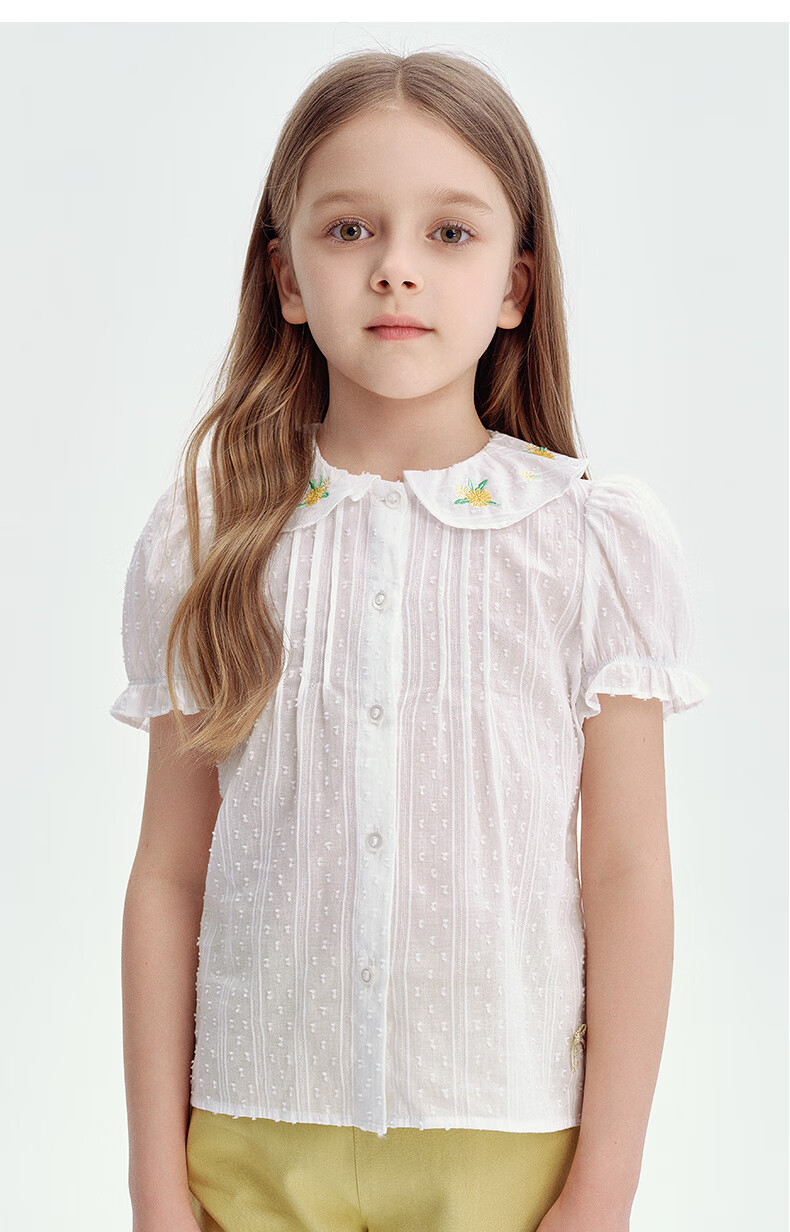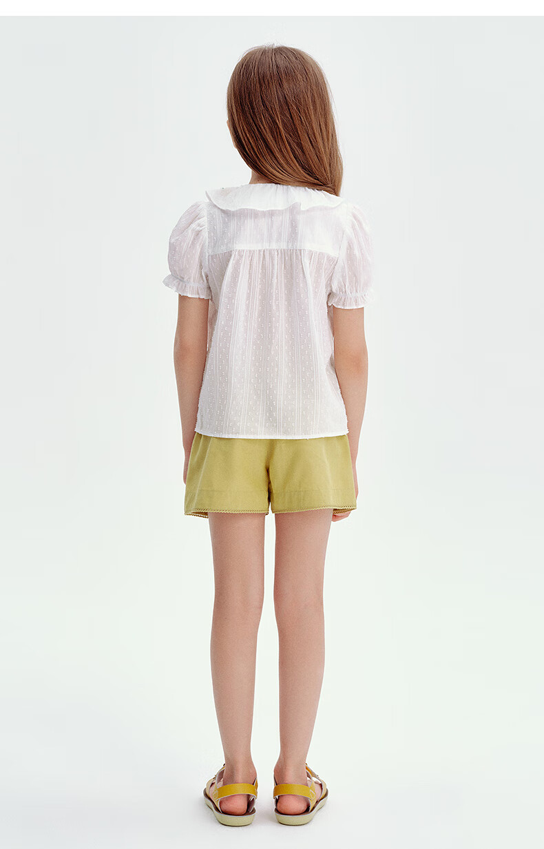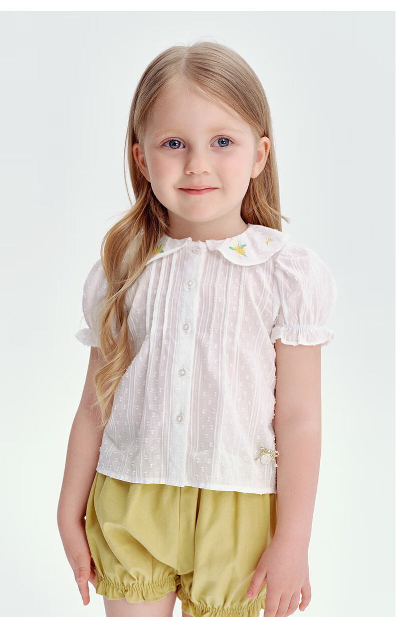 Teenie Weenie Kids 25 Summer Girls Baby Doll Collar Puff Sleeve Shirt Ivory 120cm