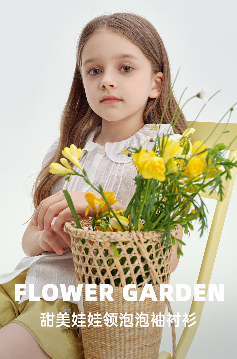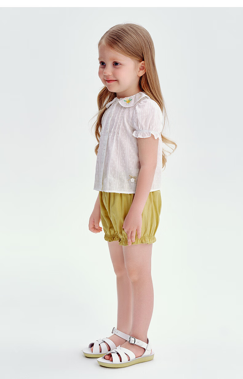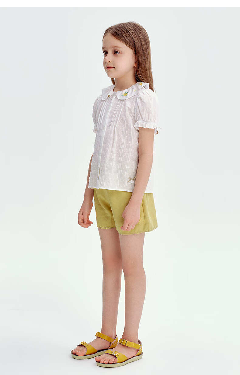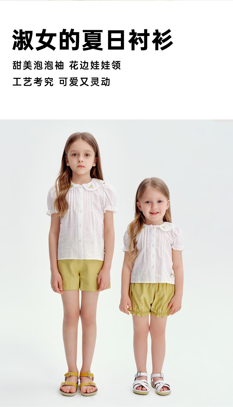 Teenie Weenie Kids 25 Summer Girls Baby Doll Collar Puff Sleeve Shirt Ivory 120cm