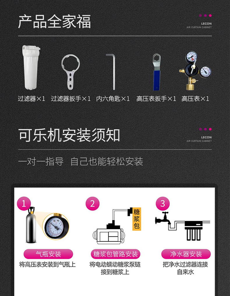 Lechuang (lceon) Cola-Maschine, kommerzielle Buffet-Maschine für kohlensäurehaltige Getränke, Sprite-Instant-Mix-Maschine, Kaltgetränk, drei Ventile, drei Pumpen, Cola-Maschine (nicht mit Zylindern und Sirup ausgestattet)