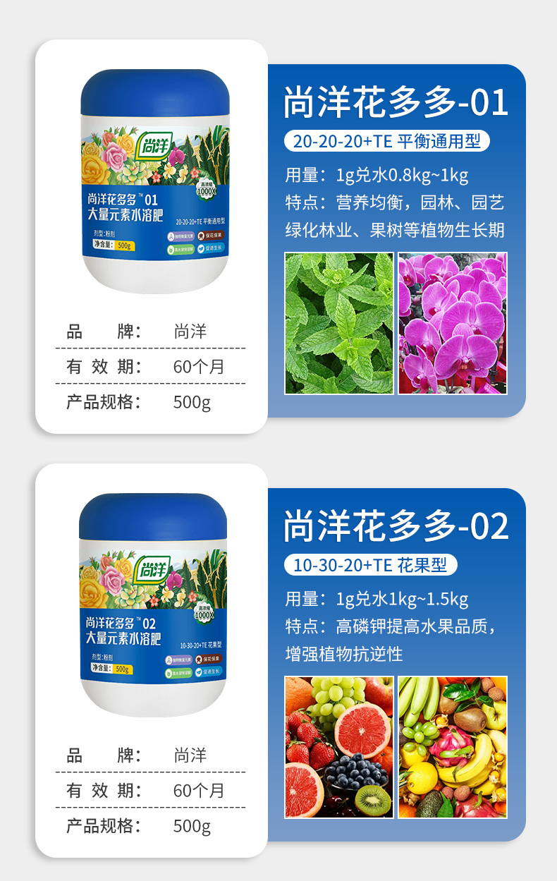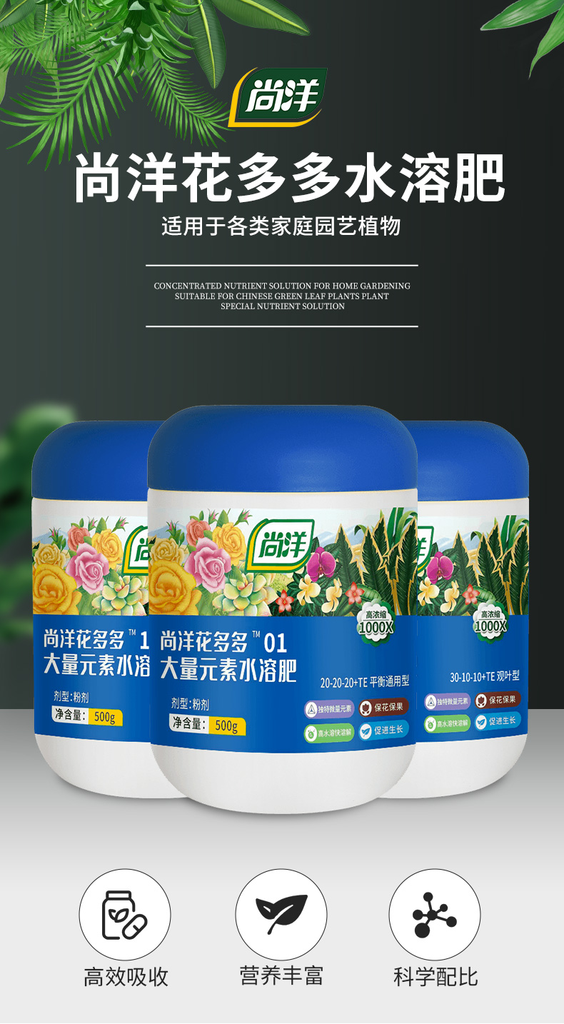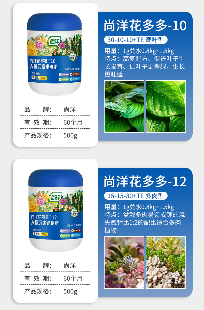 Shangyang Huaduoduo No. 2 general flowering promotion 500g gardening green plant flowers succulent plant water-soluble foliar flower fertilizer
