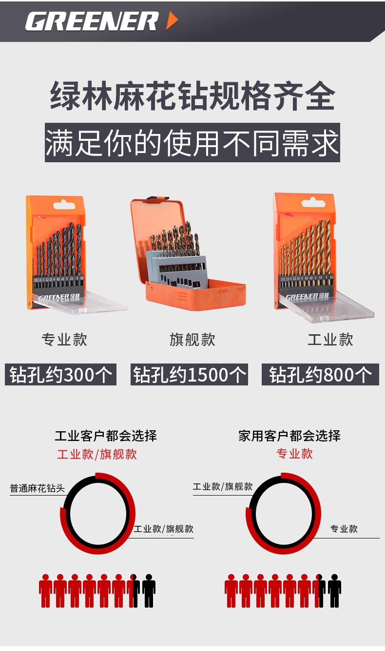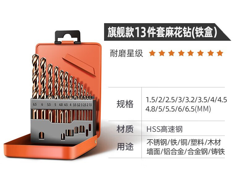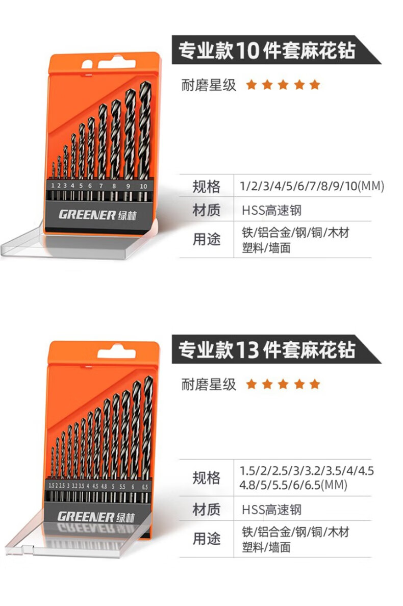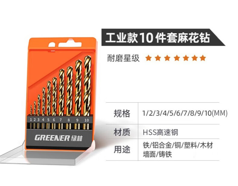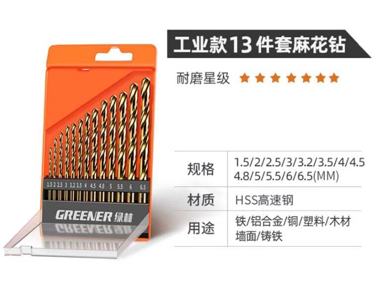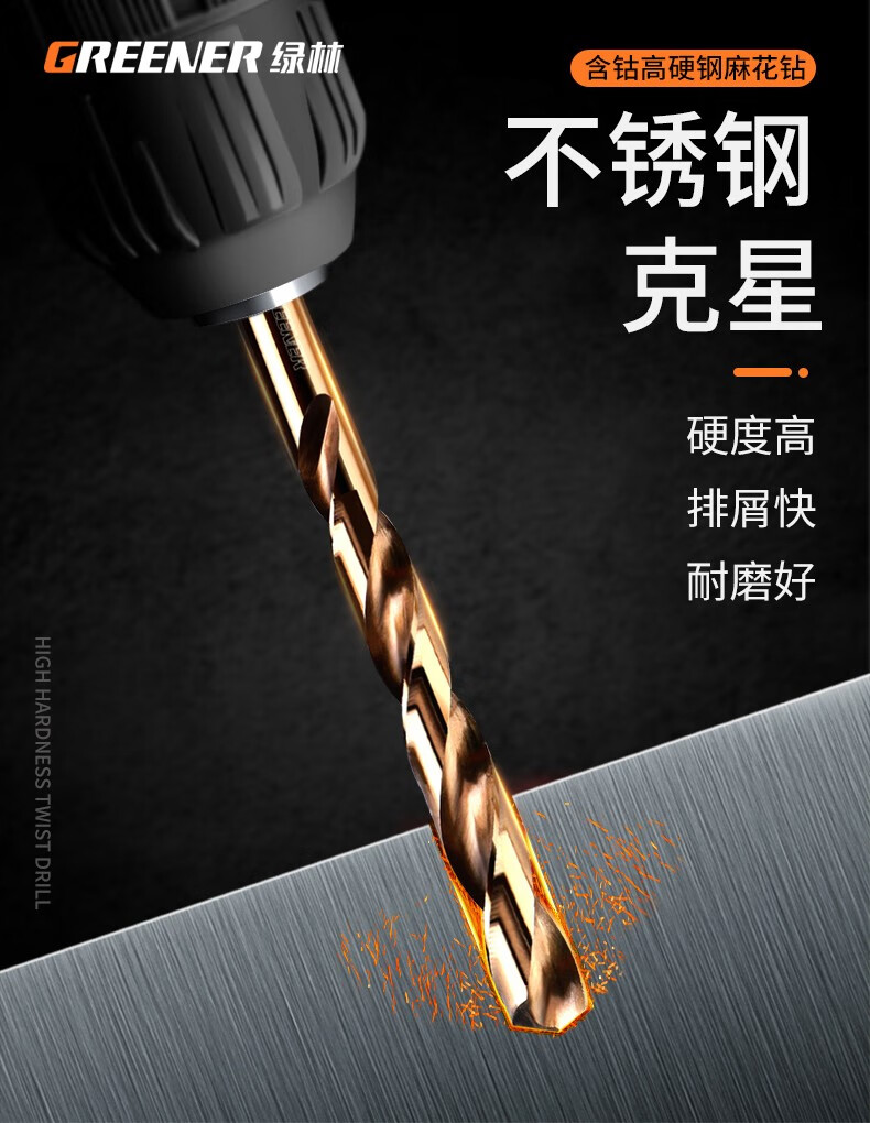 GREENER Greener Twist Drill Bit Set Stainless Steel Spiral Alloy Steel Angle Iron Multi-Function Wood Straight Handle Electric Drill Hard Cobalt Flagship Iron Box 19-piece Set