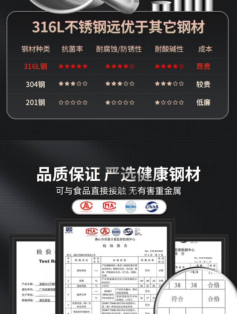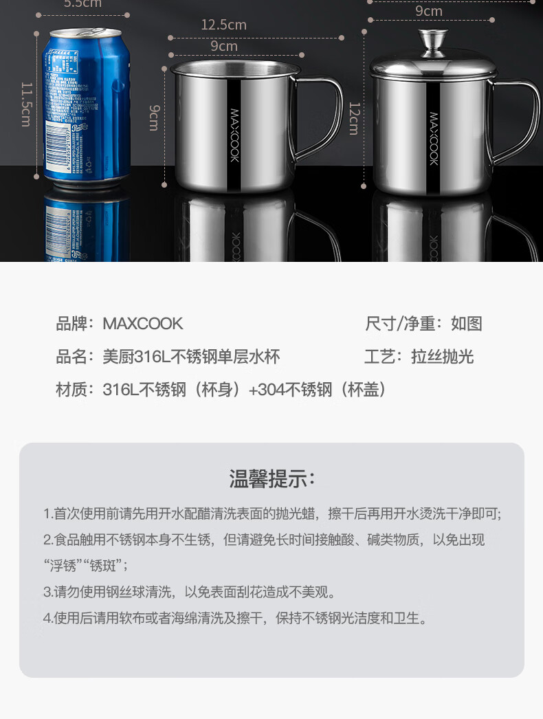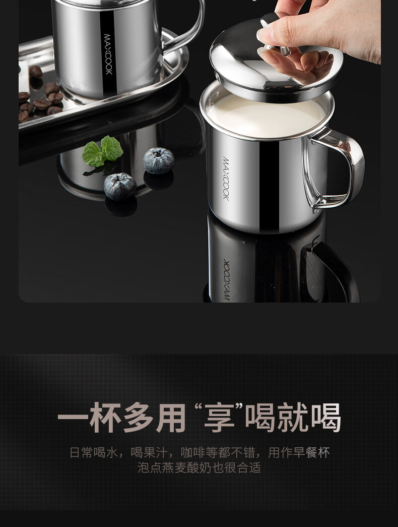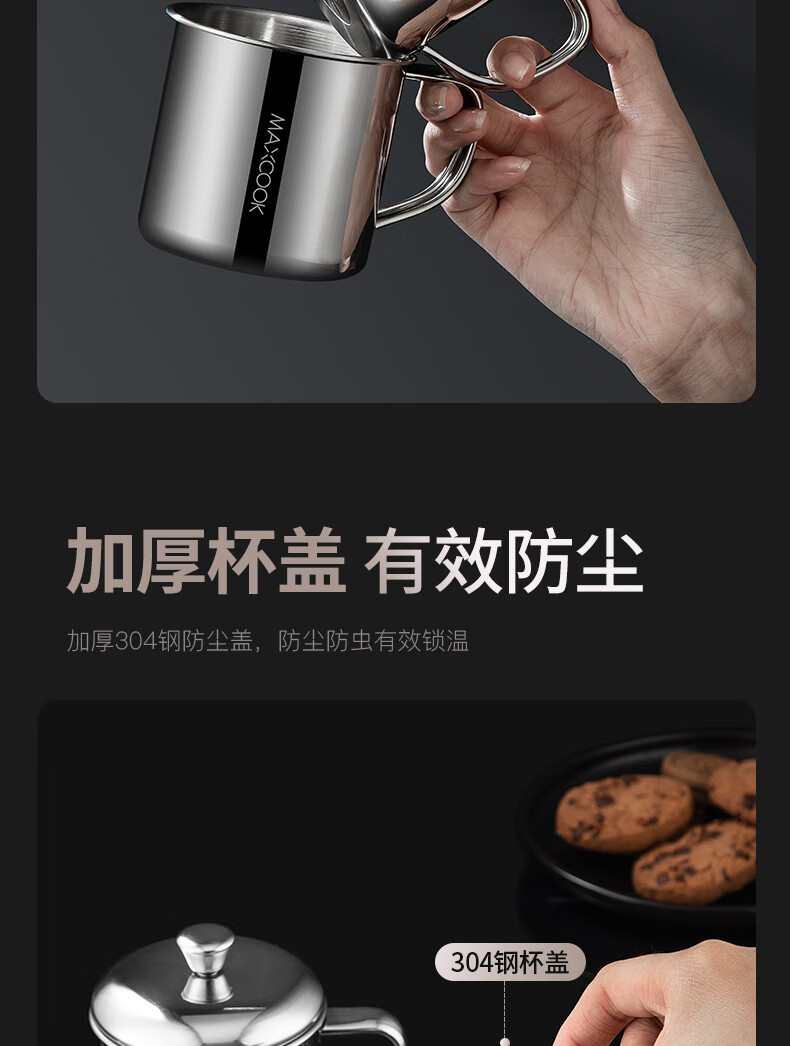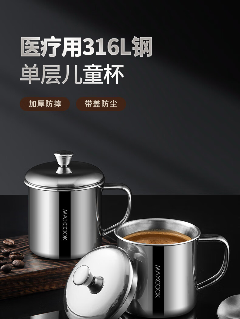 Maxcook 316L stainless steel cup with lid household water cup mouth cup tea cup student large capacity 550ml MCB9705