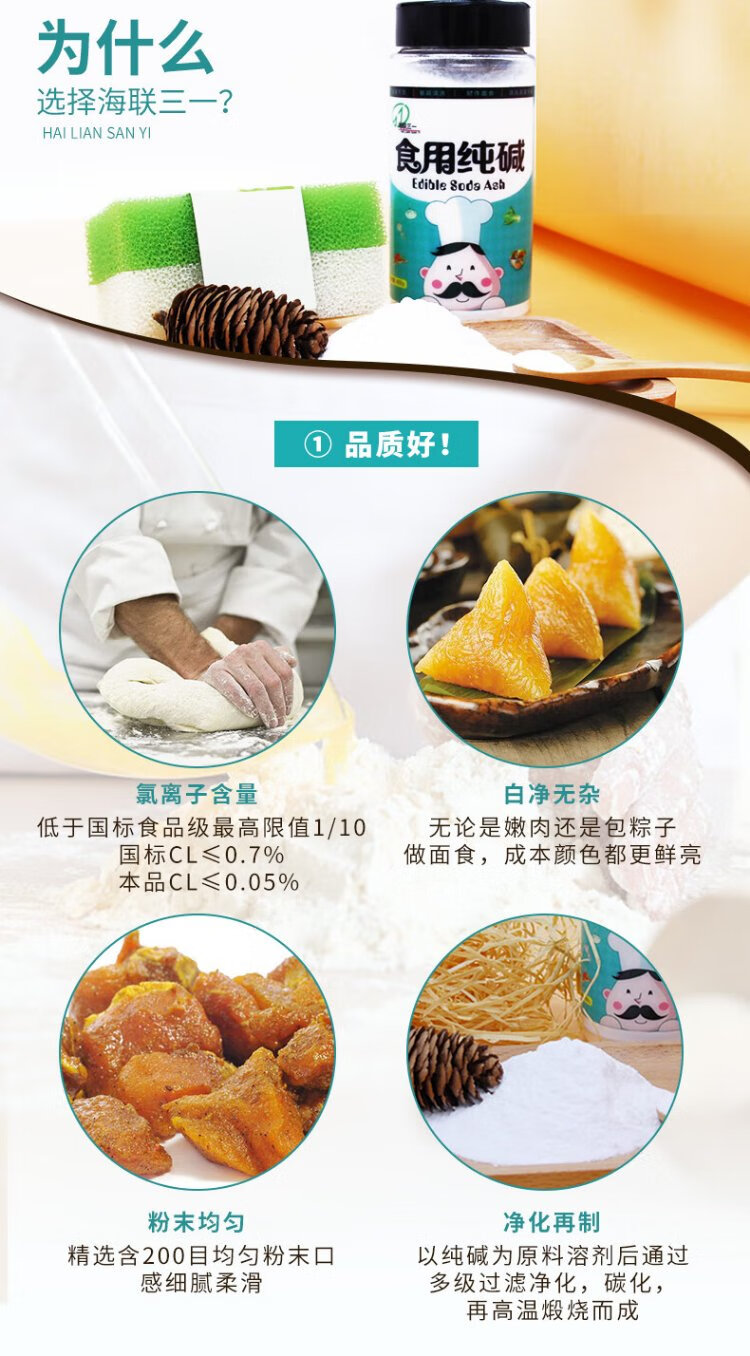 Hailian Sany Edible Alkali Powder Kneading Dough to Remove Acid Cooking Tenderized Meat Wrapped Rice Dumplings Making Konjac Tofu Washed Pork and Beef Tripe 400g Double Open Cap Bottle x1