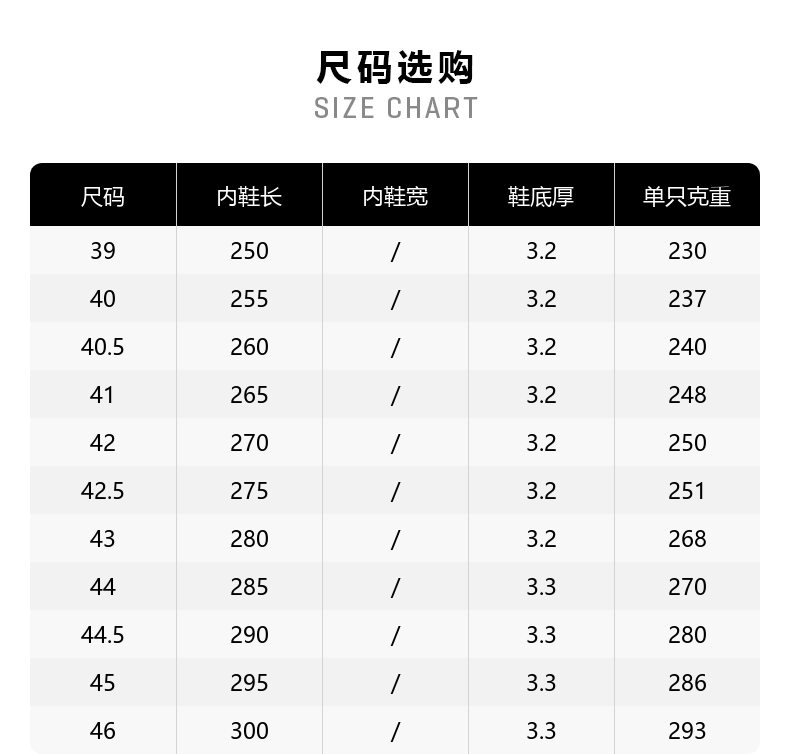 China (cm) 36 - 37 38 - 39 40 - 42 43 - 44 45 - 47