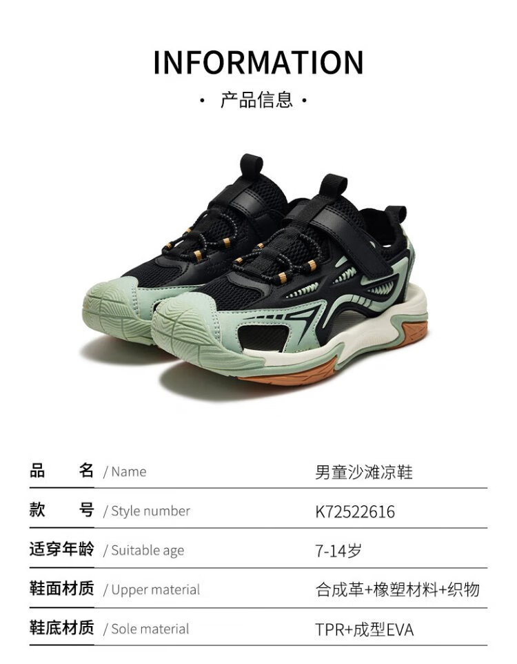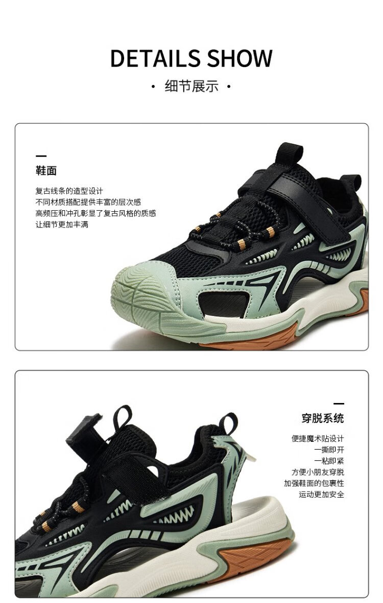 361 Shopping mall same style children's sandals 25 summer men's and large children's wear-resistant toe-protecting beach shoes black 36
