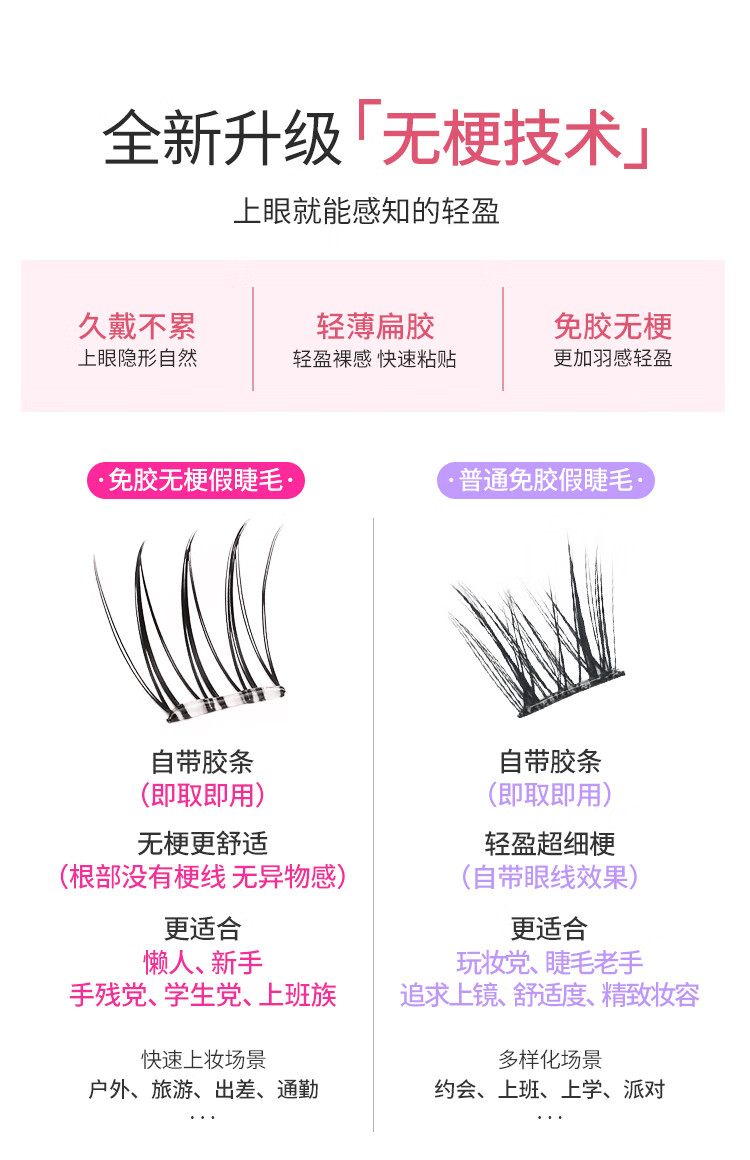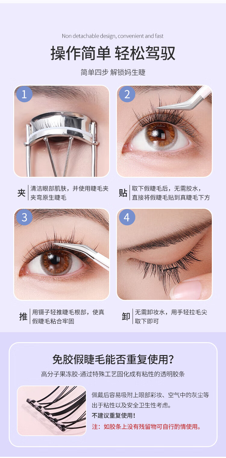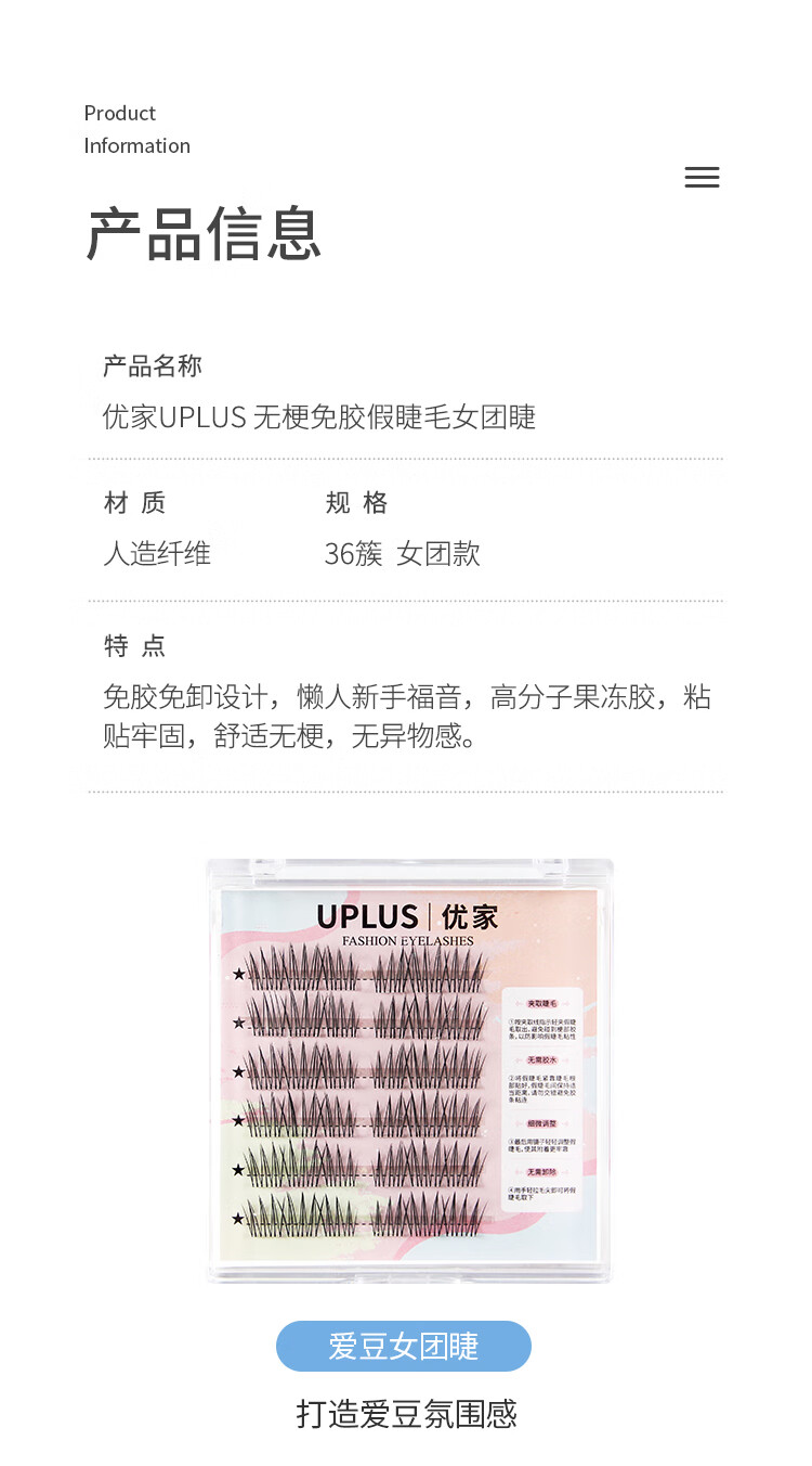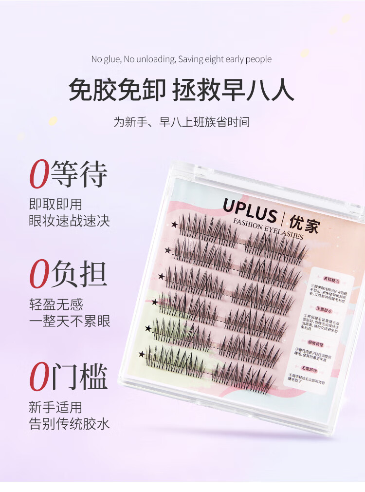 Youjia UPLUS stemless glue-free false eyelashes glue-free women's group eyelashes novice single cluster self-adhesive no removal natural eyelashes simulation