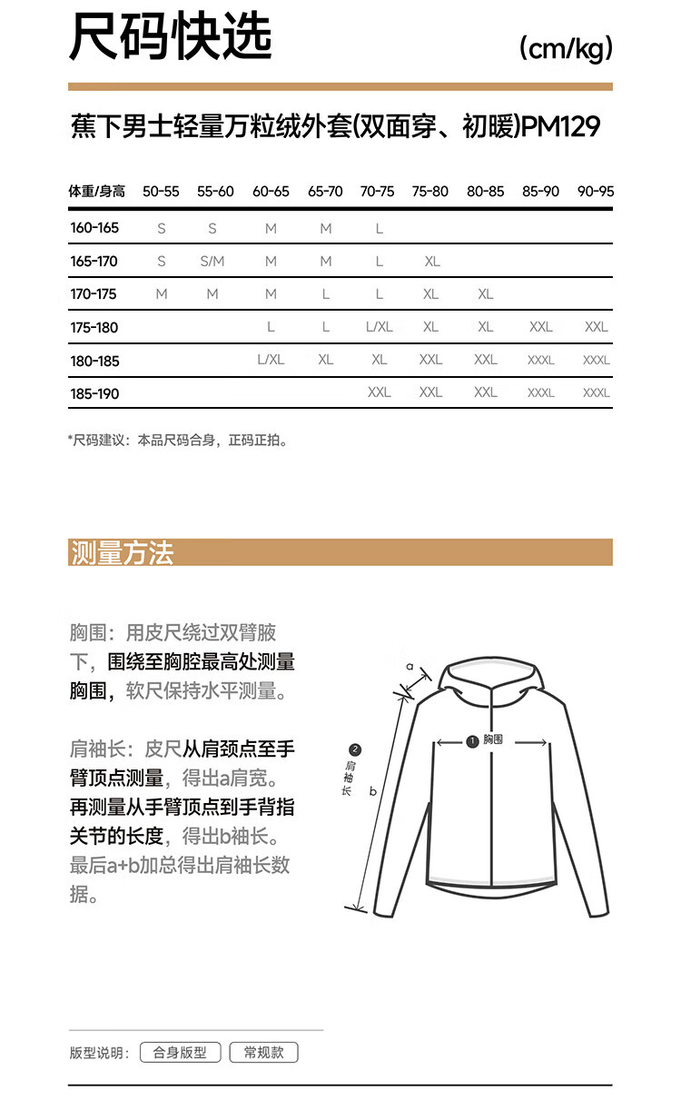 China (cm) 160-165/84-86 165-170 / 88-90 167-172 / 92-96 168-173 / 98-102 170-176 / 106-110