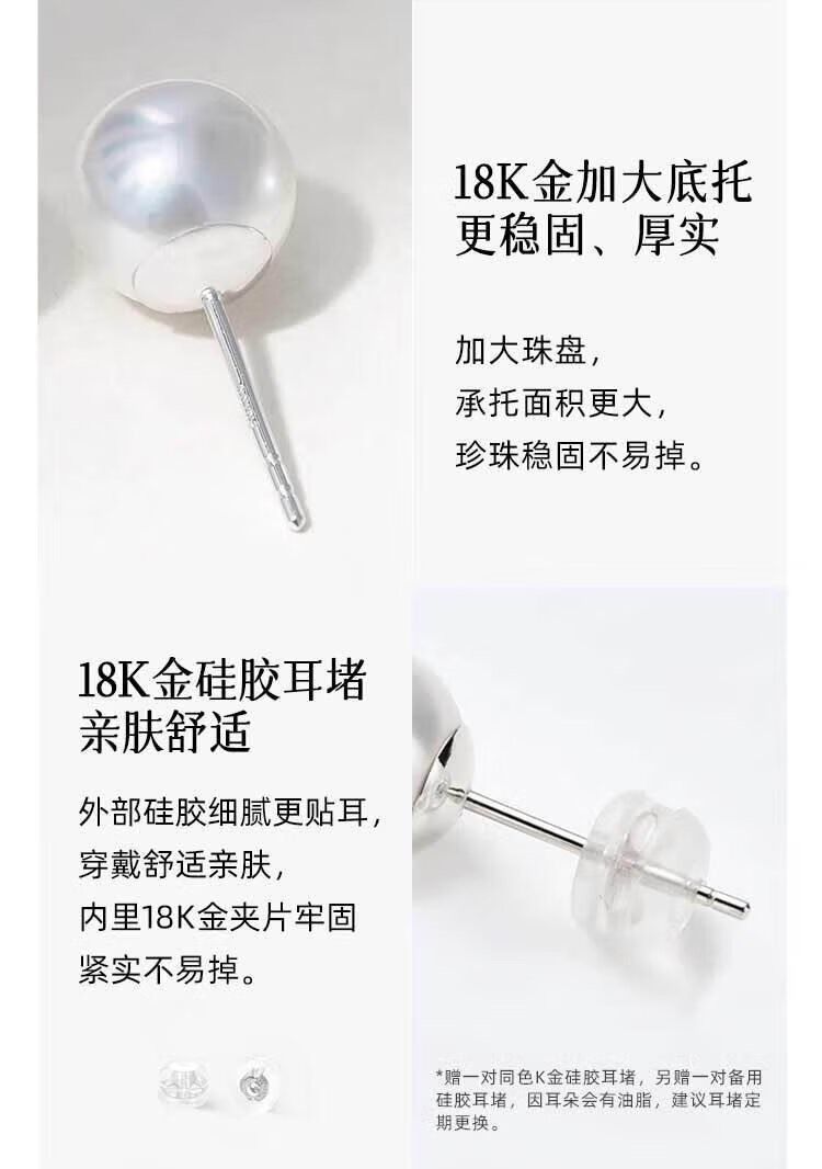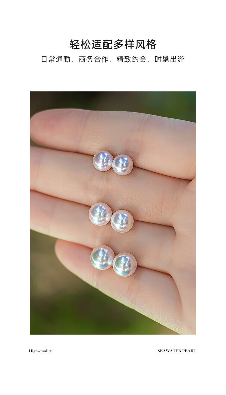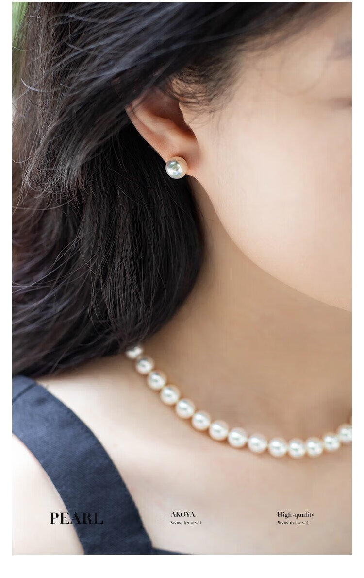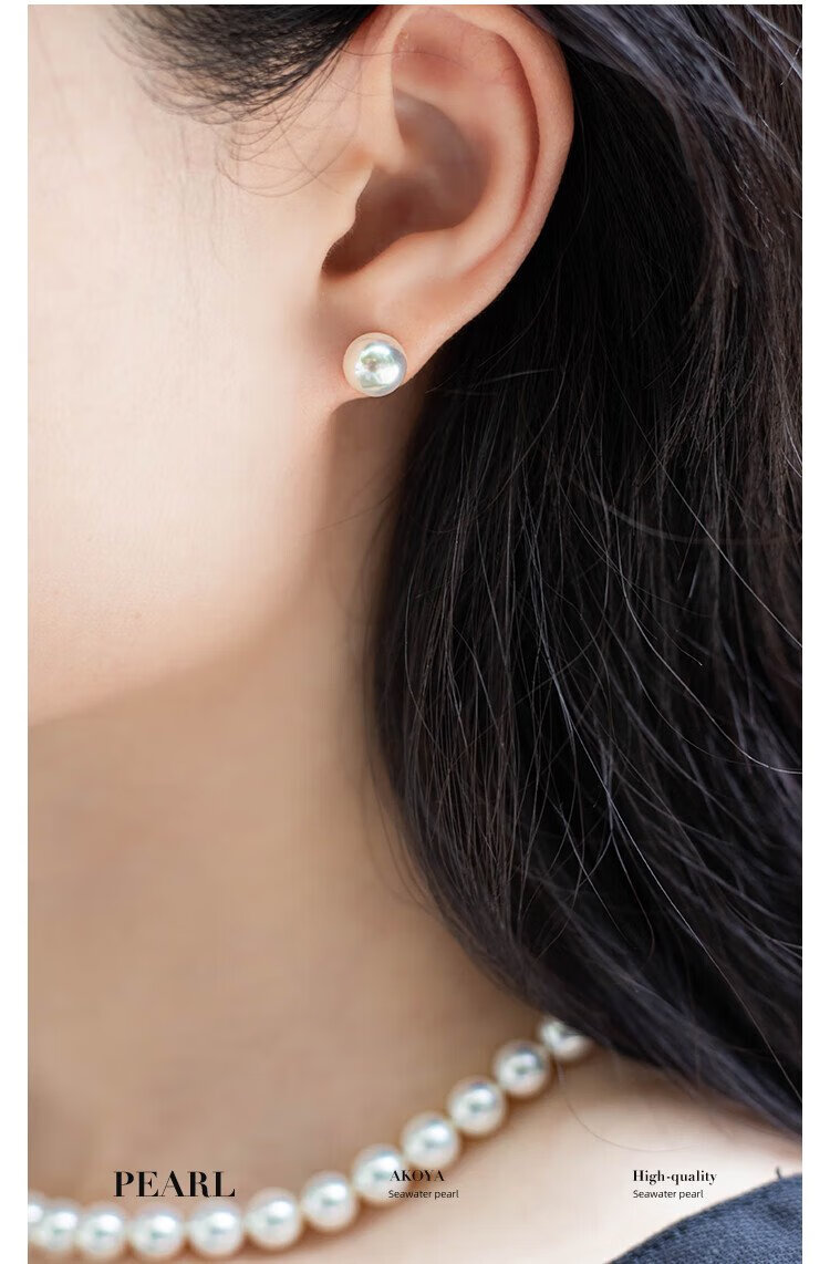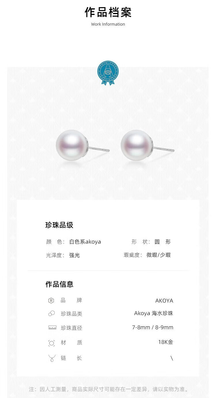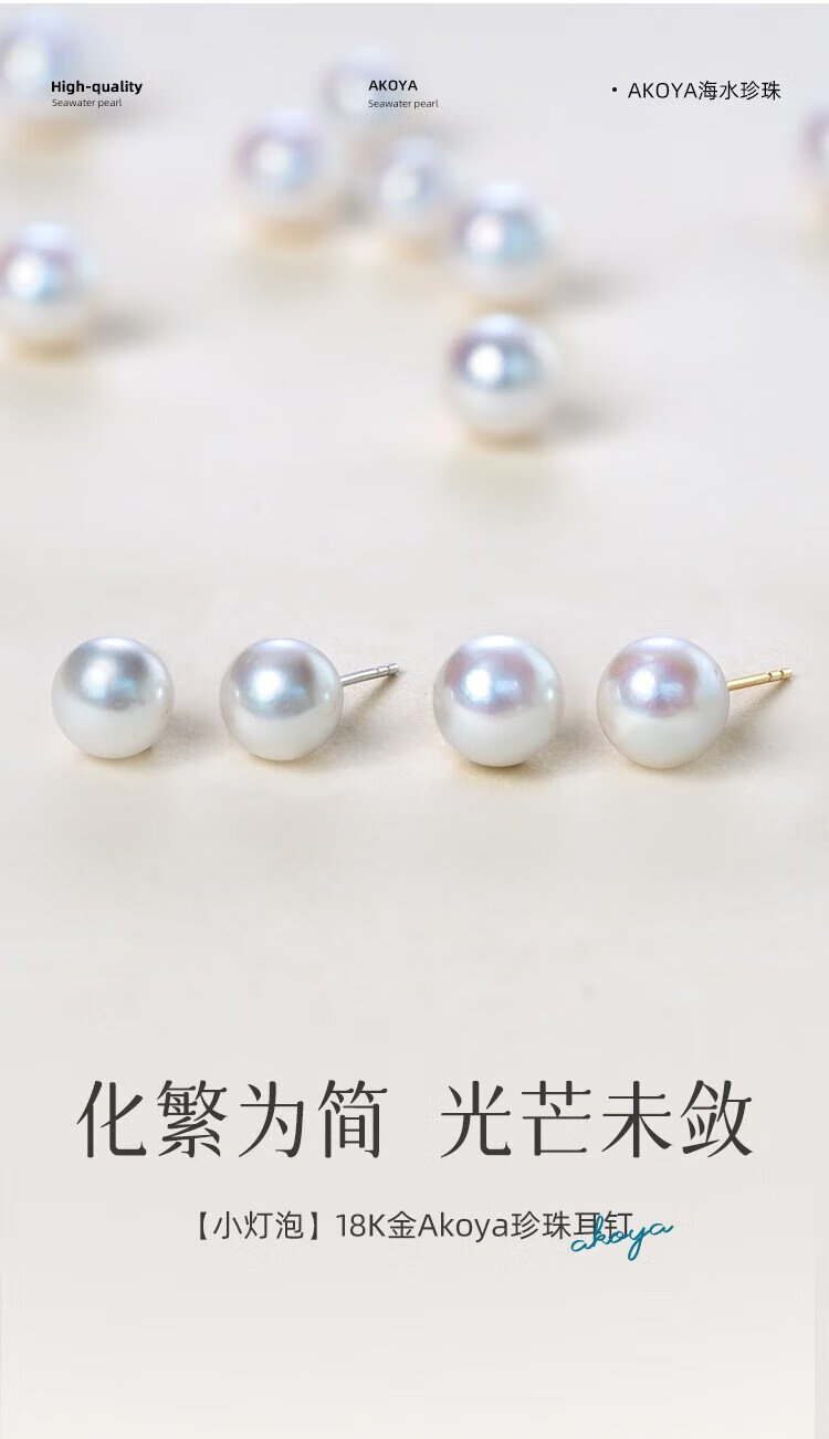 AKOYA small light bulb pearl earrings 18K gold 7-8 versatile daily gift temperament commuting 0258