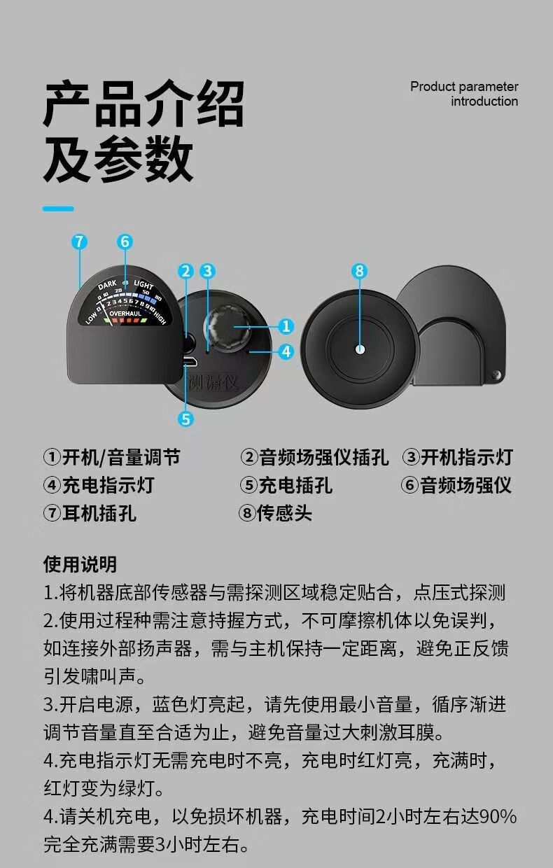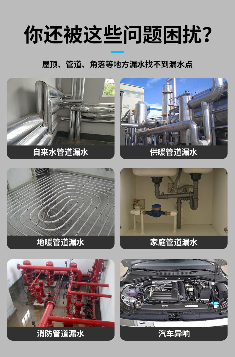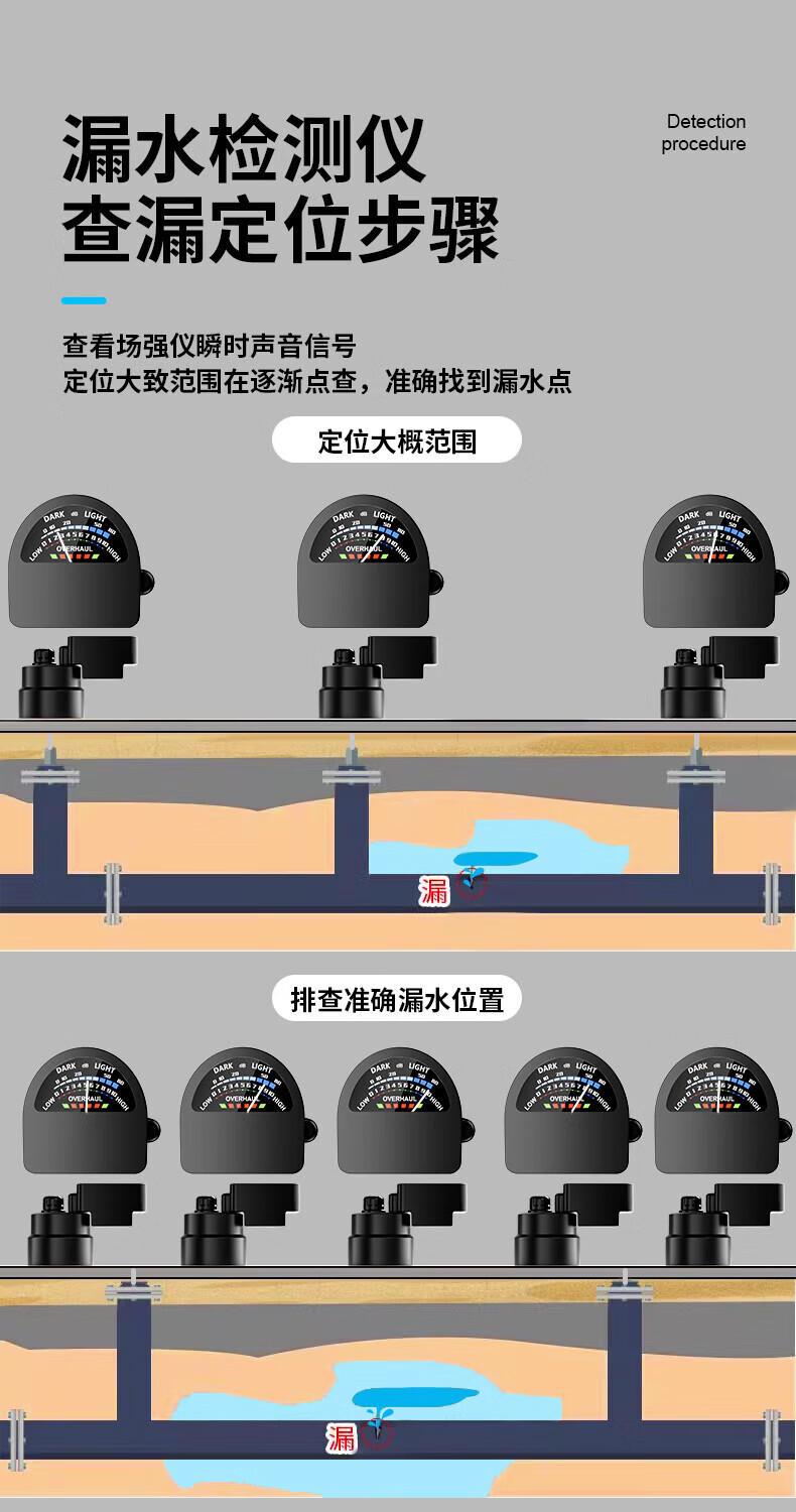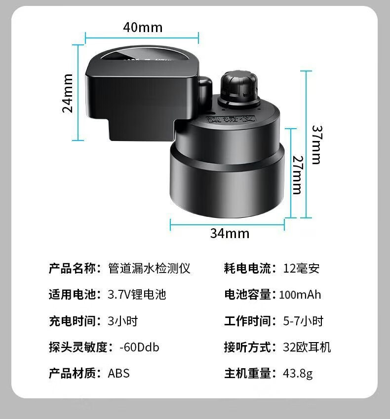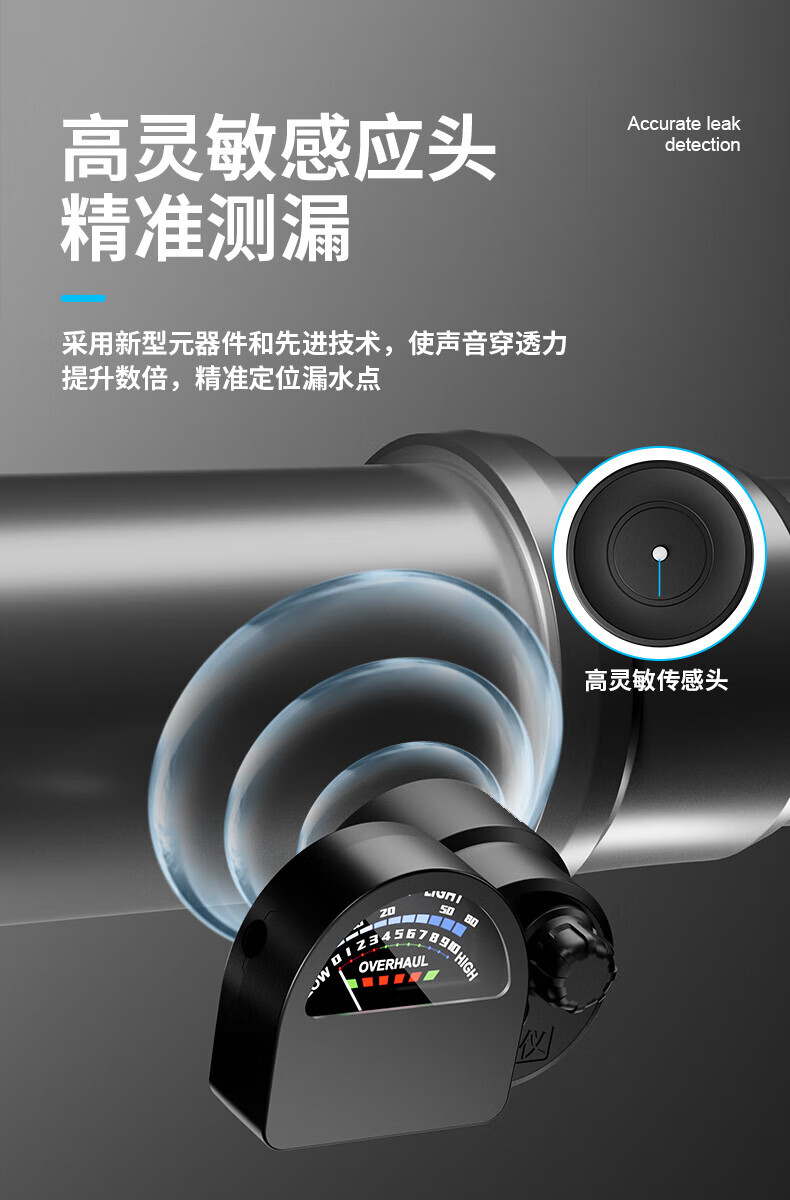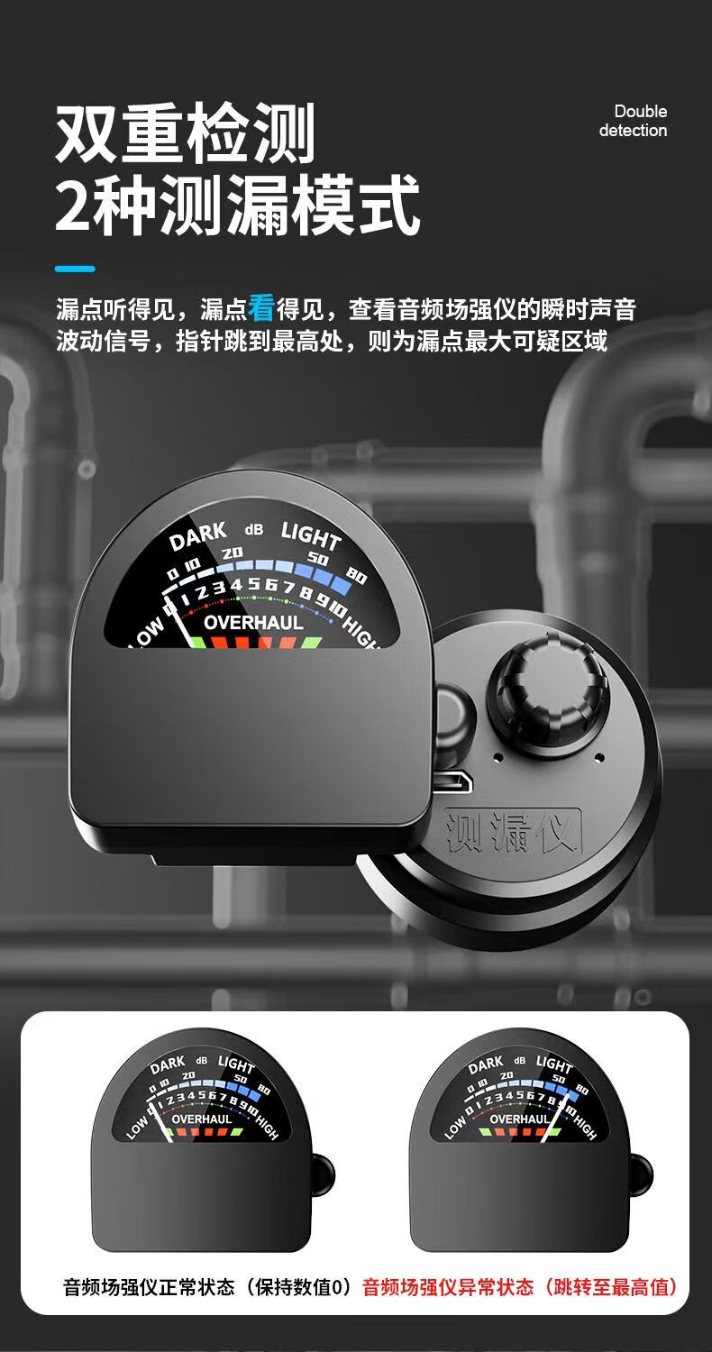 Honggong Water Leakage Detector Sounder Pipe Concealed Pipe Water Leakage Locator Listening Detector + Audio Field Strength Meter