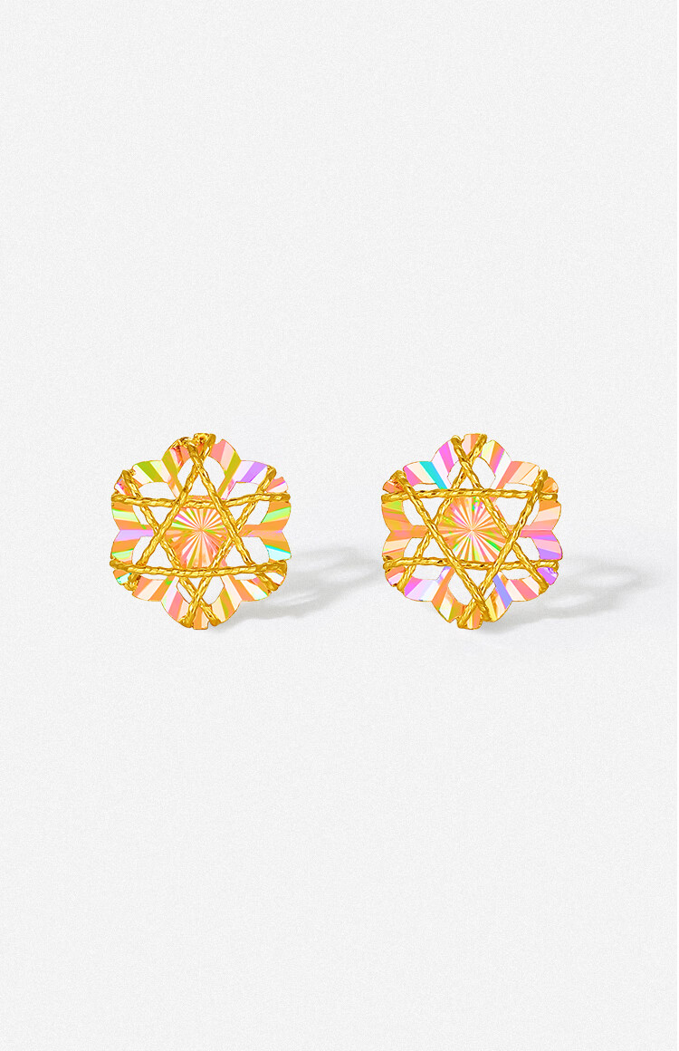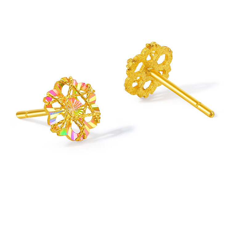 Saturday blessing colorful flower-shaped gold earrings women's gold earrings birthday gift price A0921147 one pair about 1g
