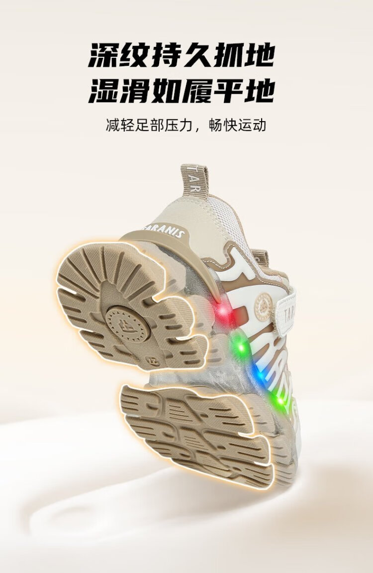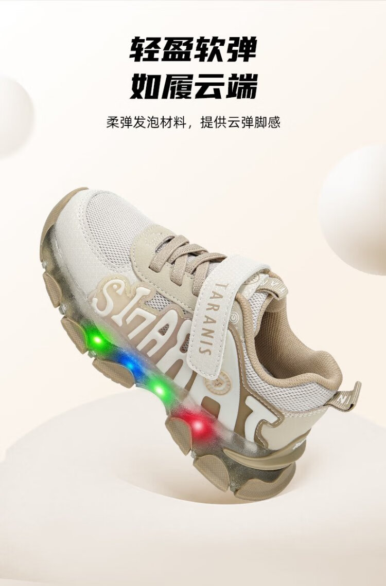Terranis children's shoes for boys and girls with controllable switch flashing shoes, lightweight non-slip kindergarten soft bottom flashing sneakers white/apricot 29
