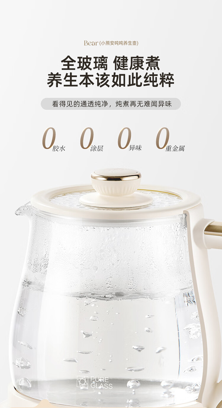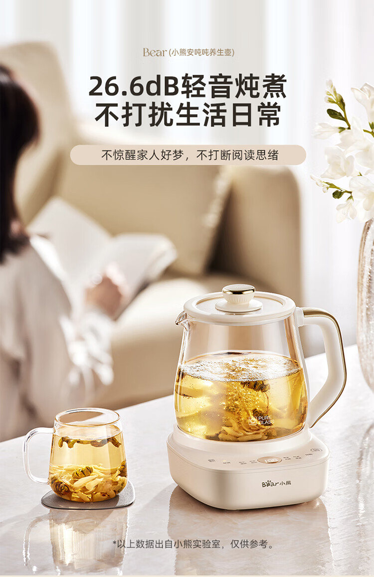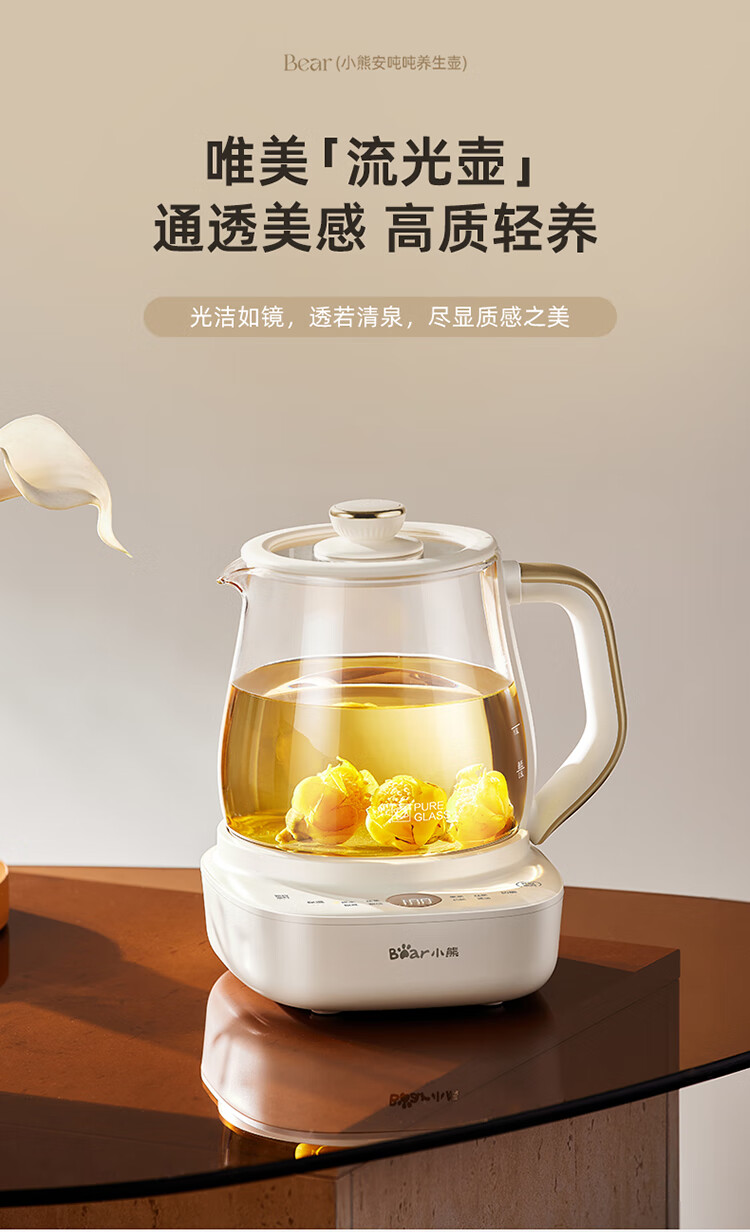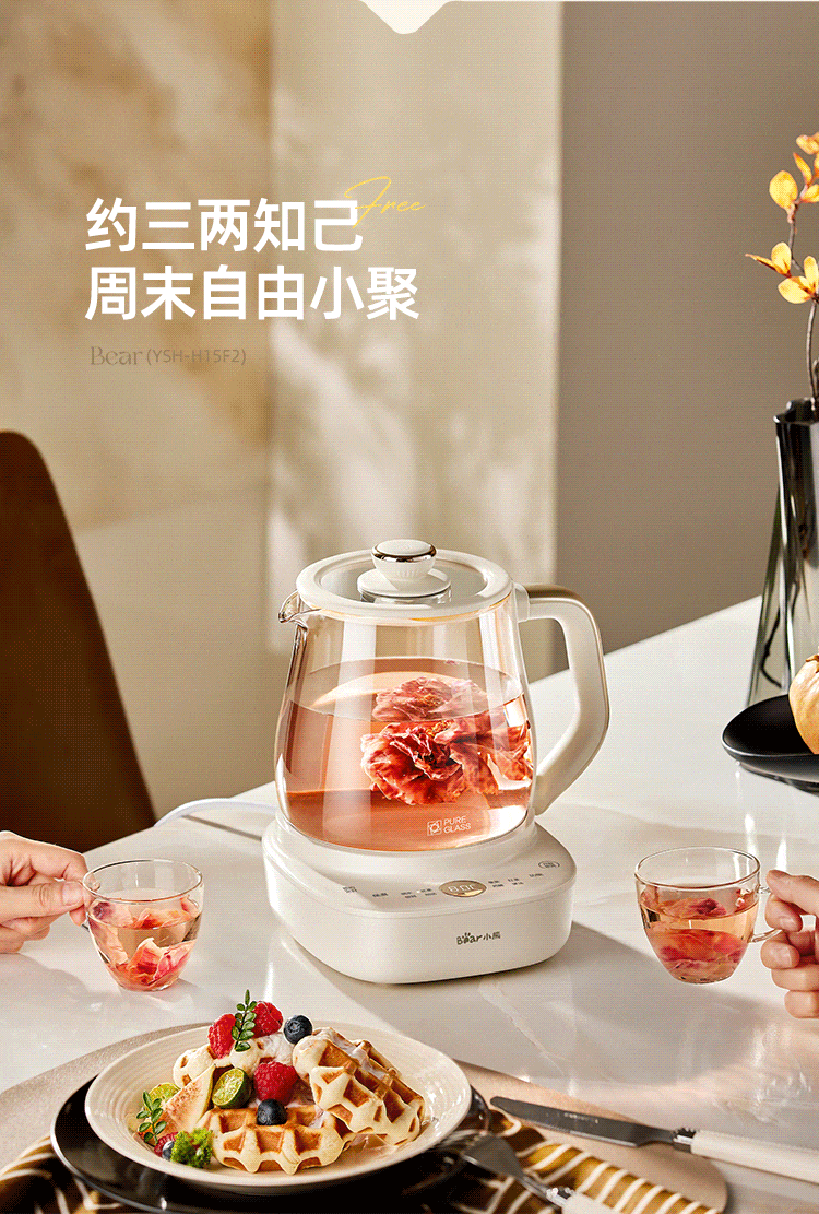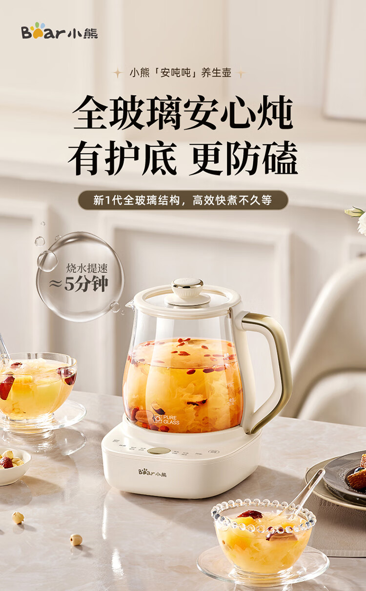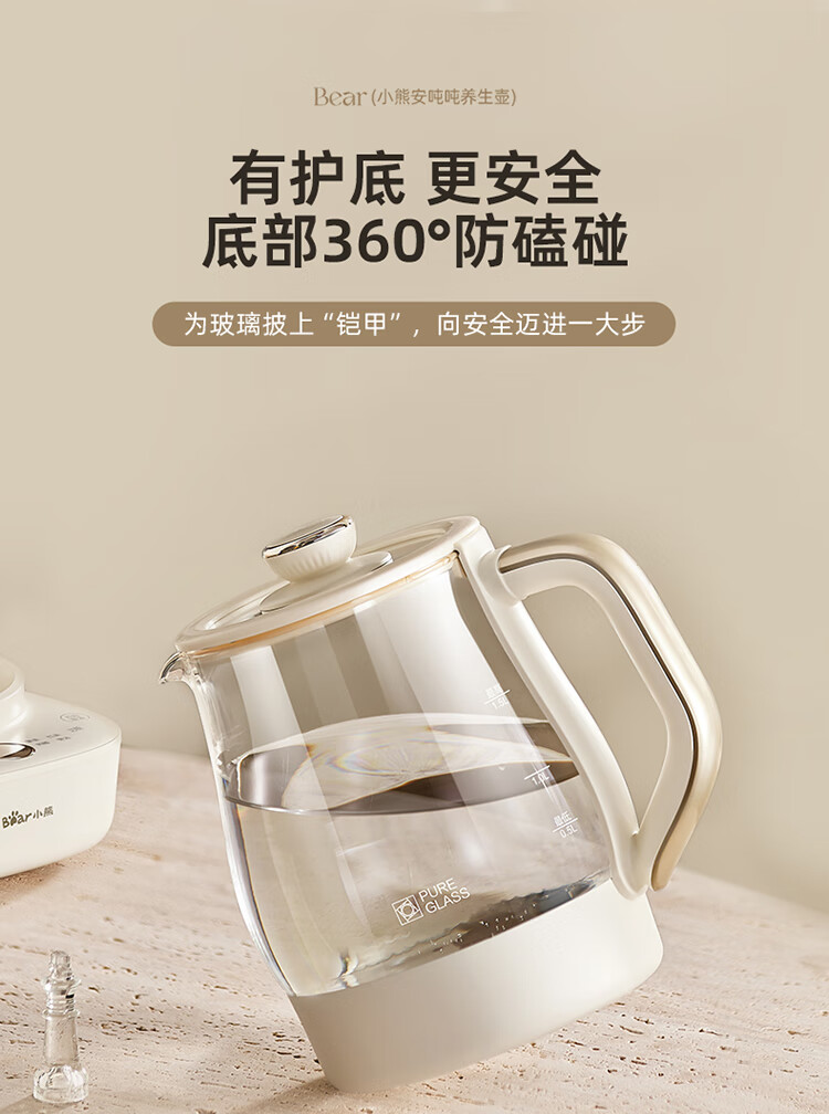 Bear all-glass health pot, Anton constant temperature pot, office multi-function teapot, 0 glue, 0 metal, 24h reservation, 72h heat preservation, 1.5L YSH-H15F2