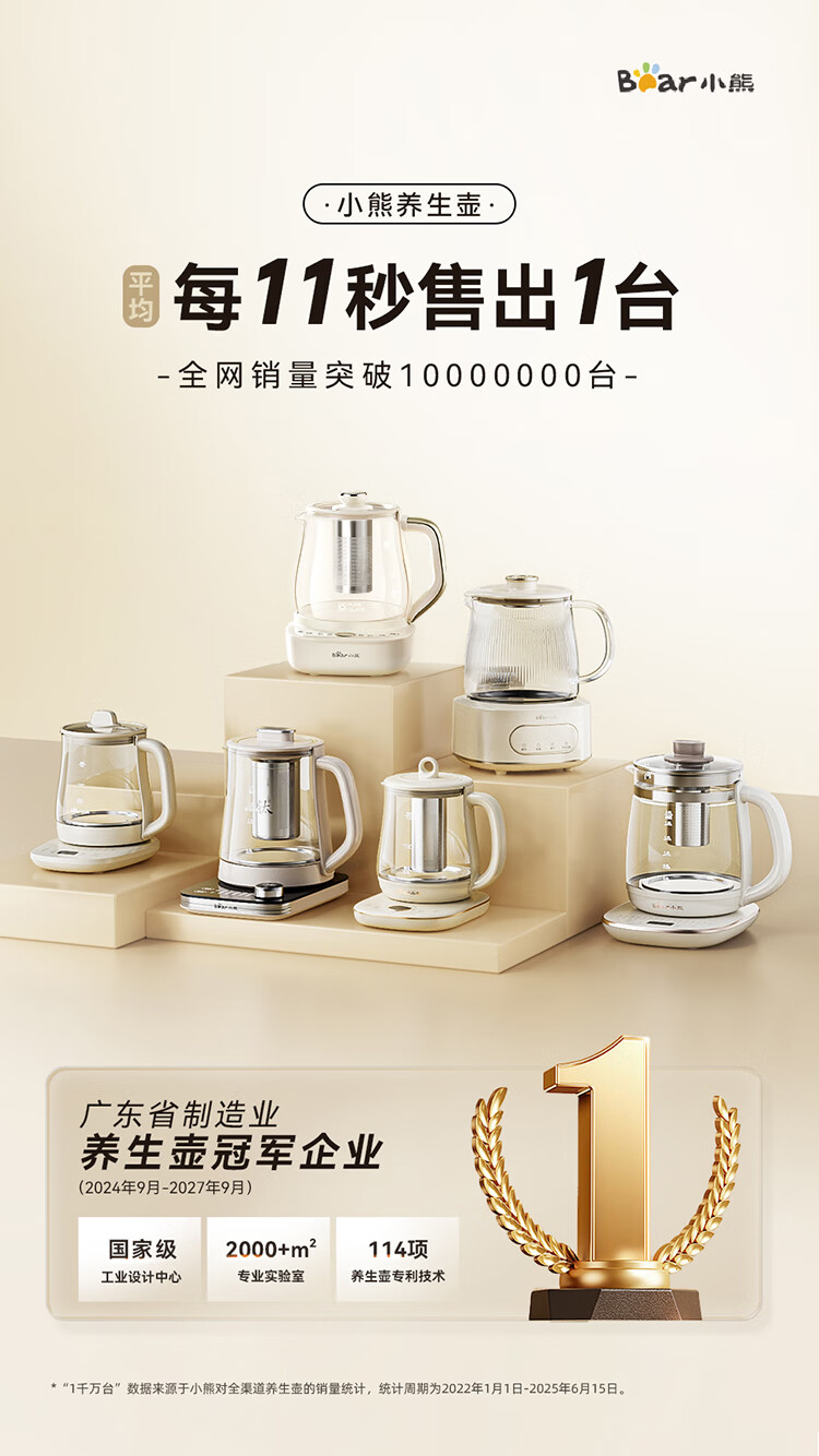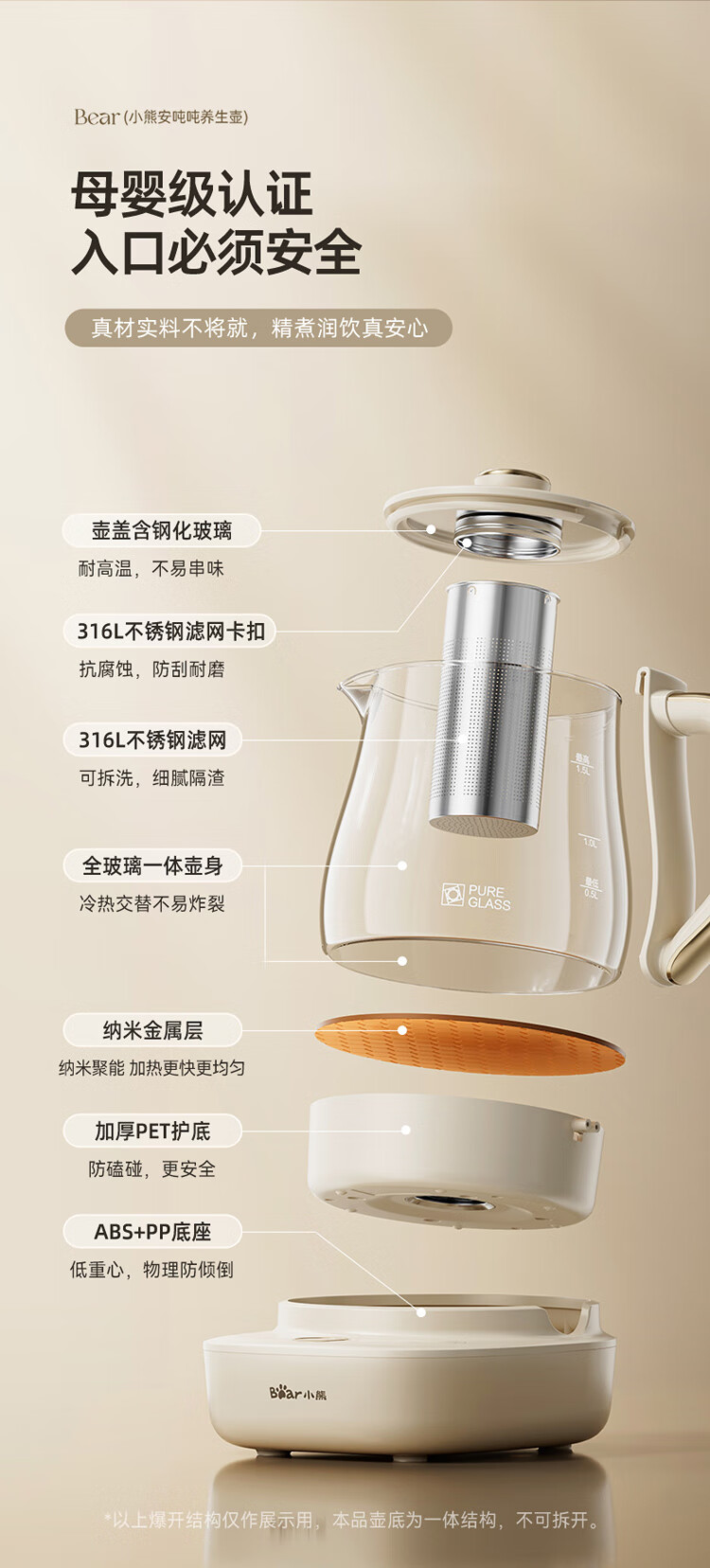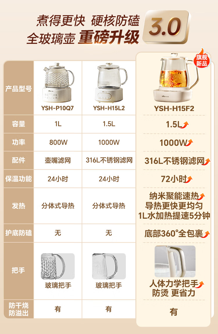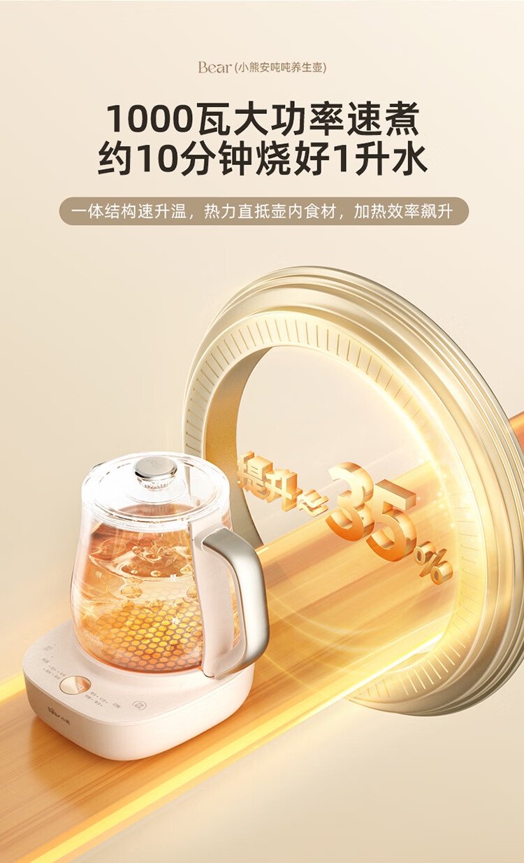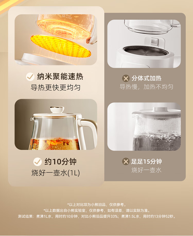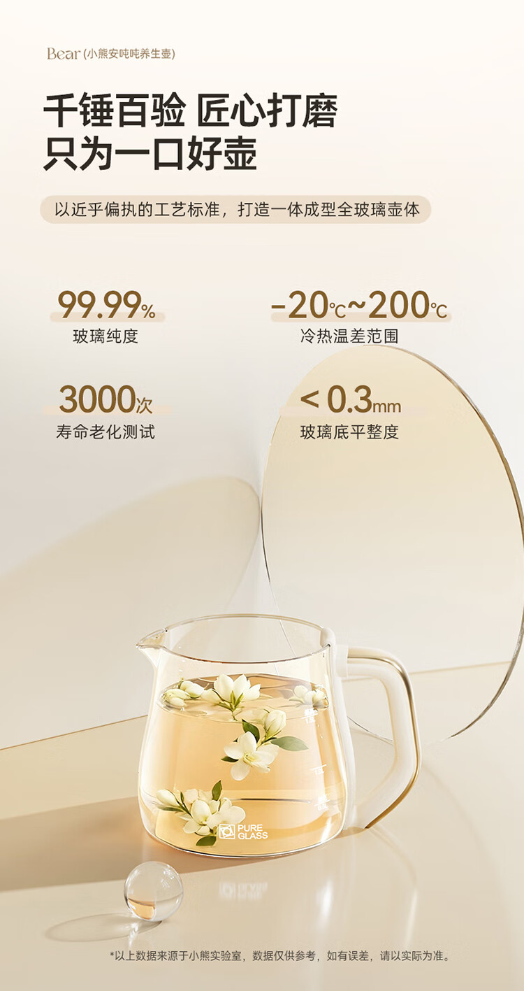 Bear all-glass health pot, Anton constant temperature pot, office multi-function teapot, 0 glue, 0 metal, 24h reservation, 72h heat preservation, 1.5L YSH-H15F2
