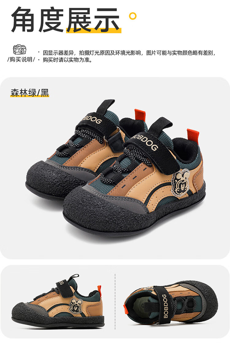 Babudou Children's Shoes Boys Autumn Comfortable Baby Shoes Children's Lightweight and Versatile Toddler Shoes 102353022 Forest Green/Black 26