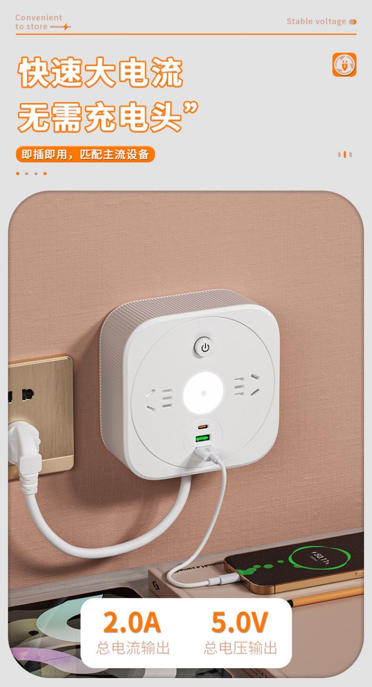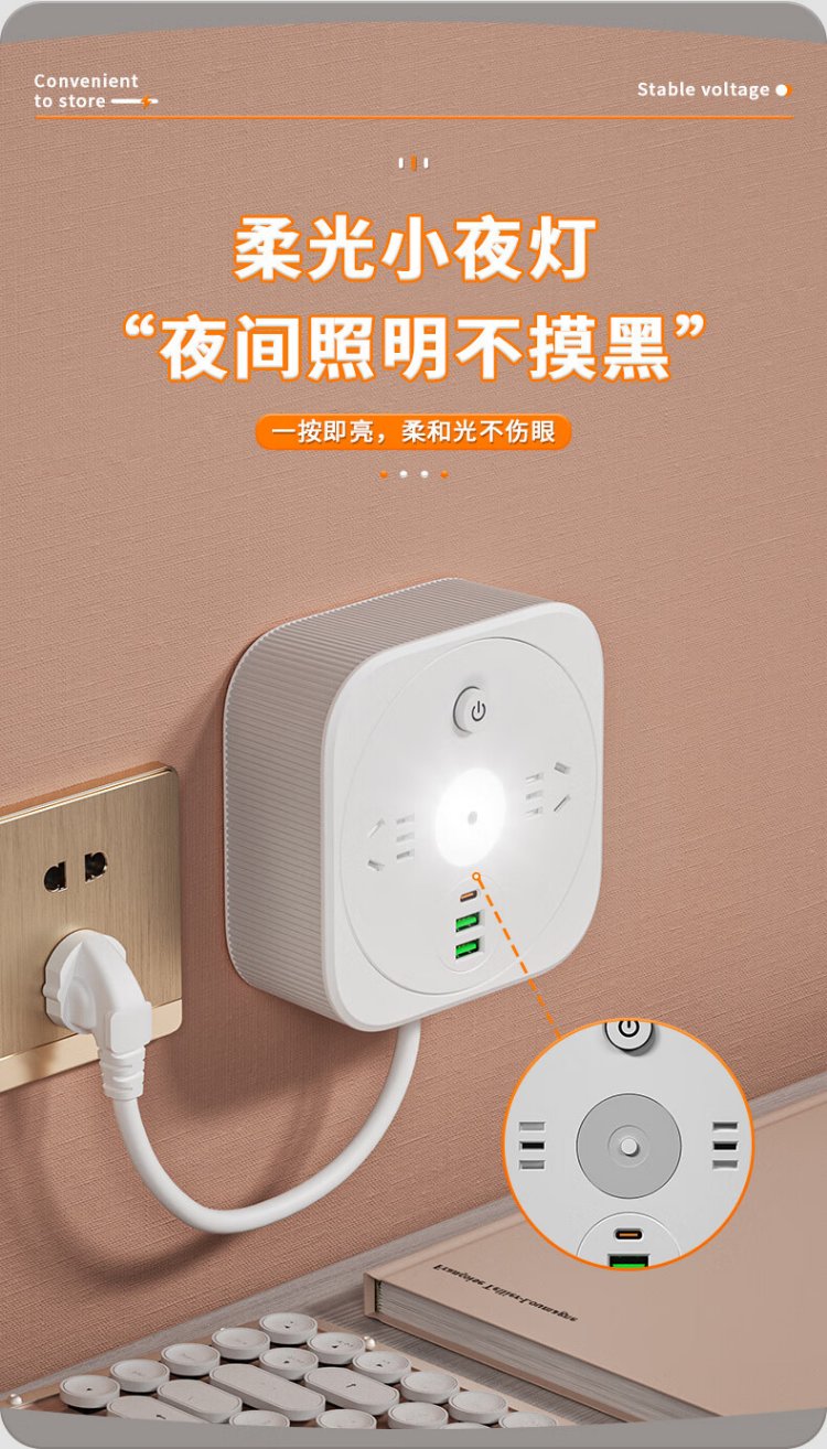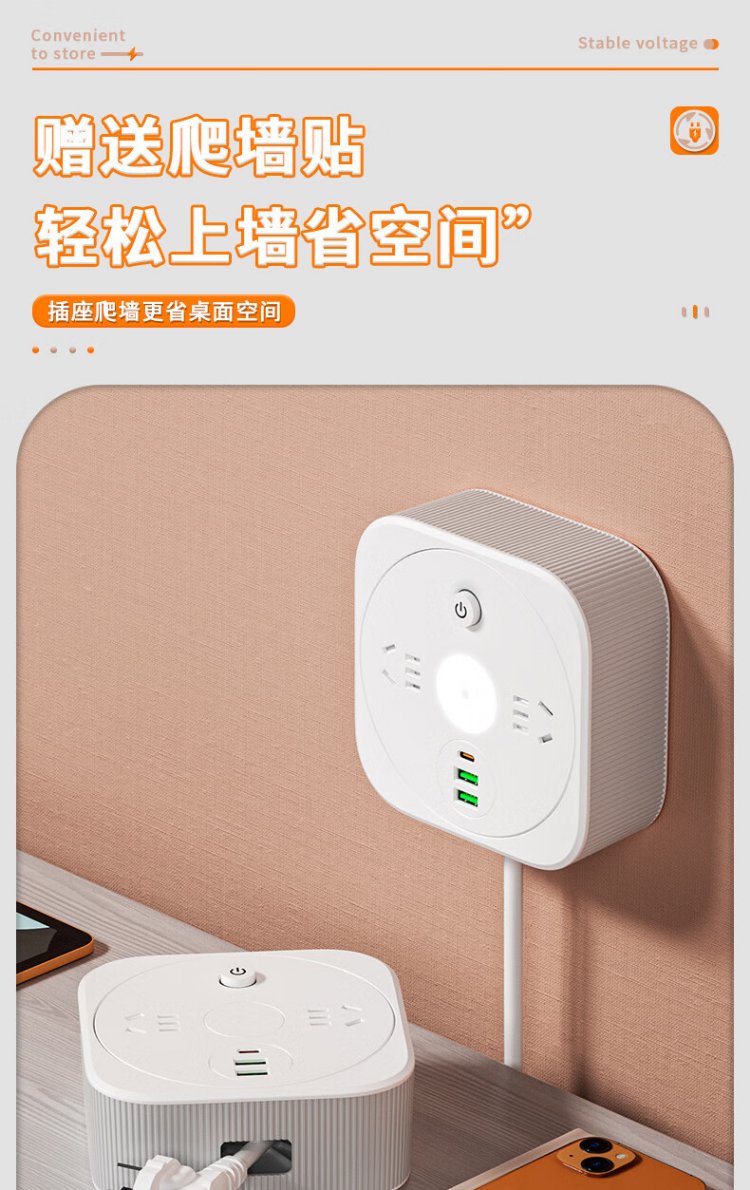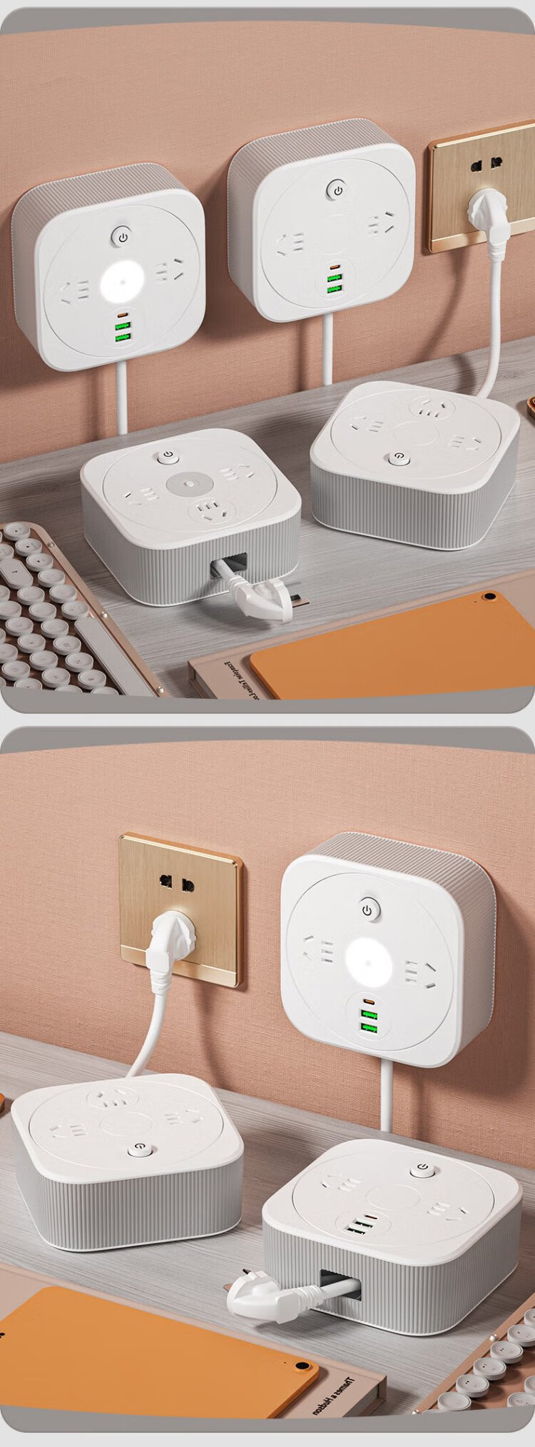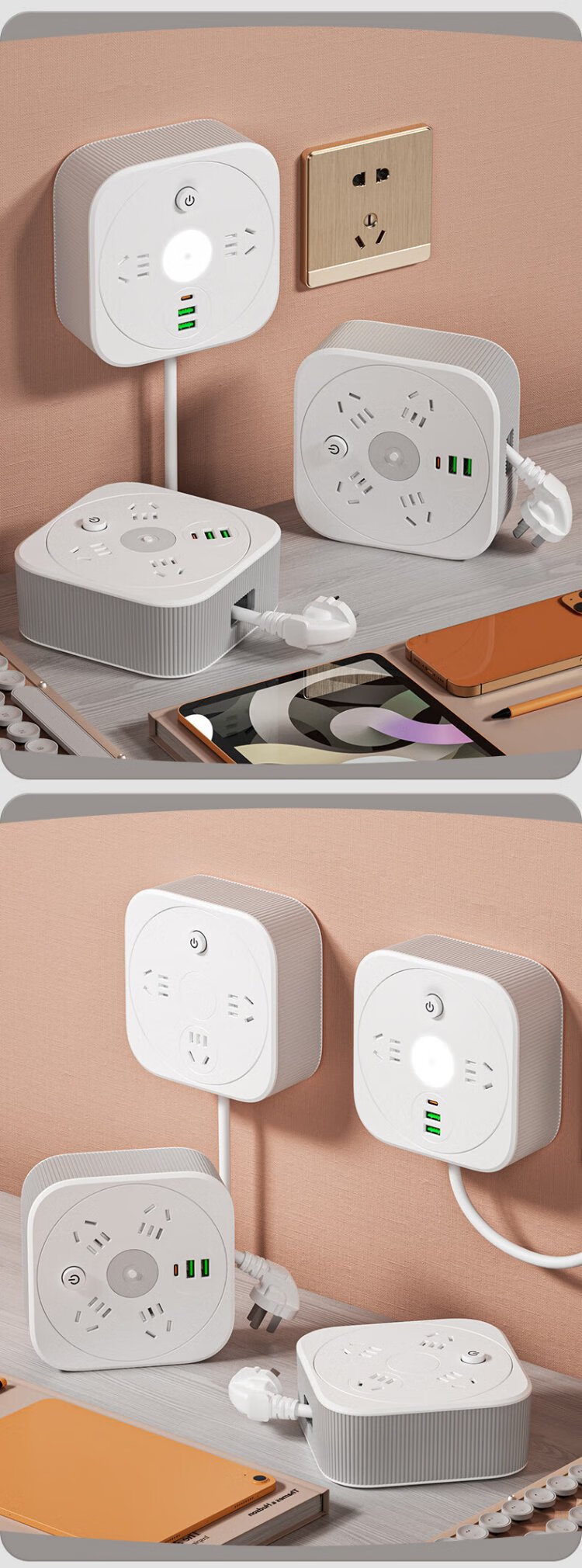 Sushi Helm wall-mounted socket strip/socket strip/terminal strip/pull cord board | Storage cable 2USB+Type-C night light 4-position master control 1.9 meters