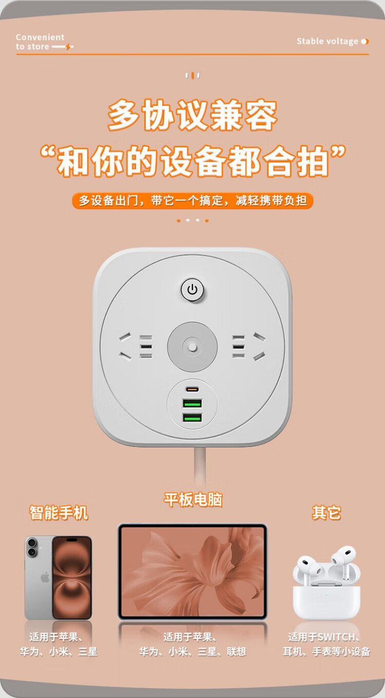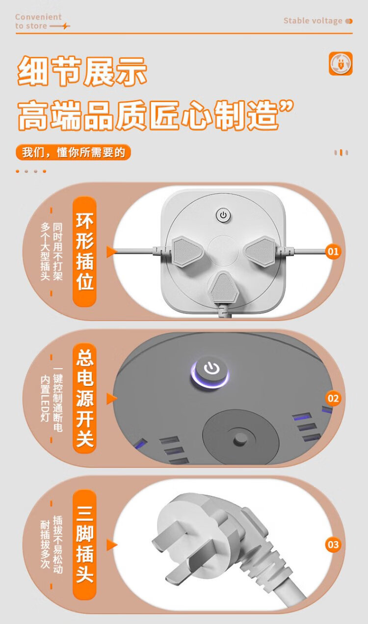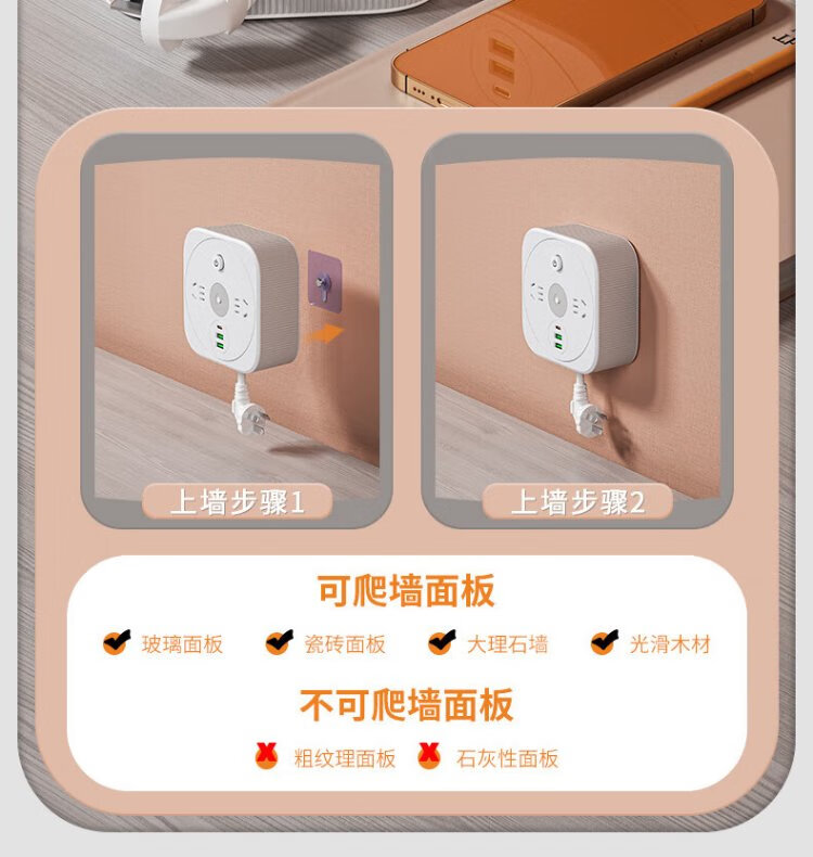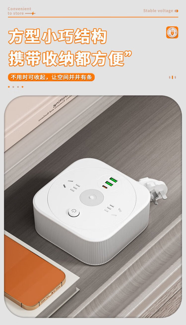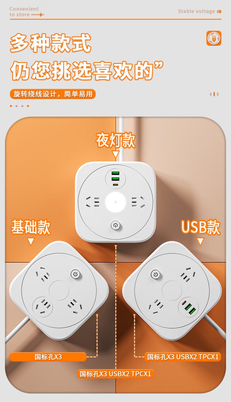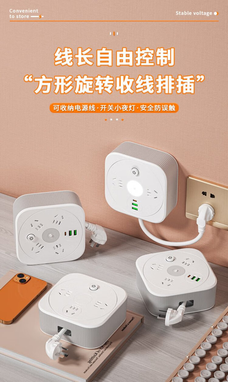 Sushi Helm wall-mounted socket strip/socket strip/terminal strip/pull cord board | Storage cable 2USB+Type-C night light 4-position master control 1.9 meters