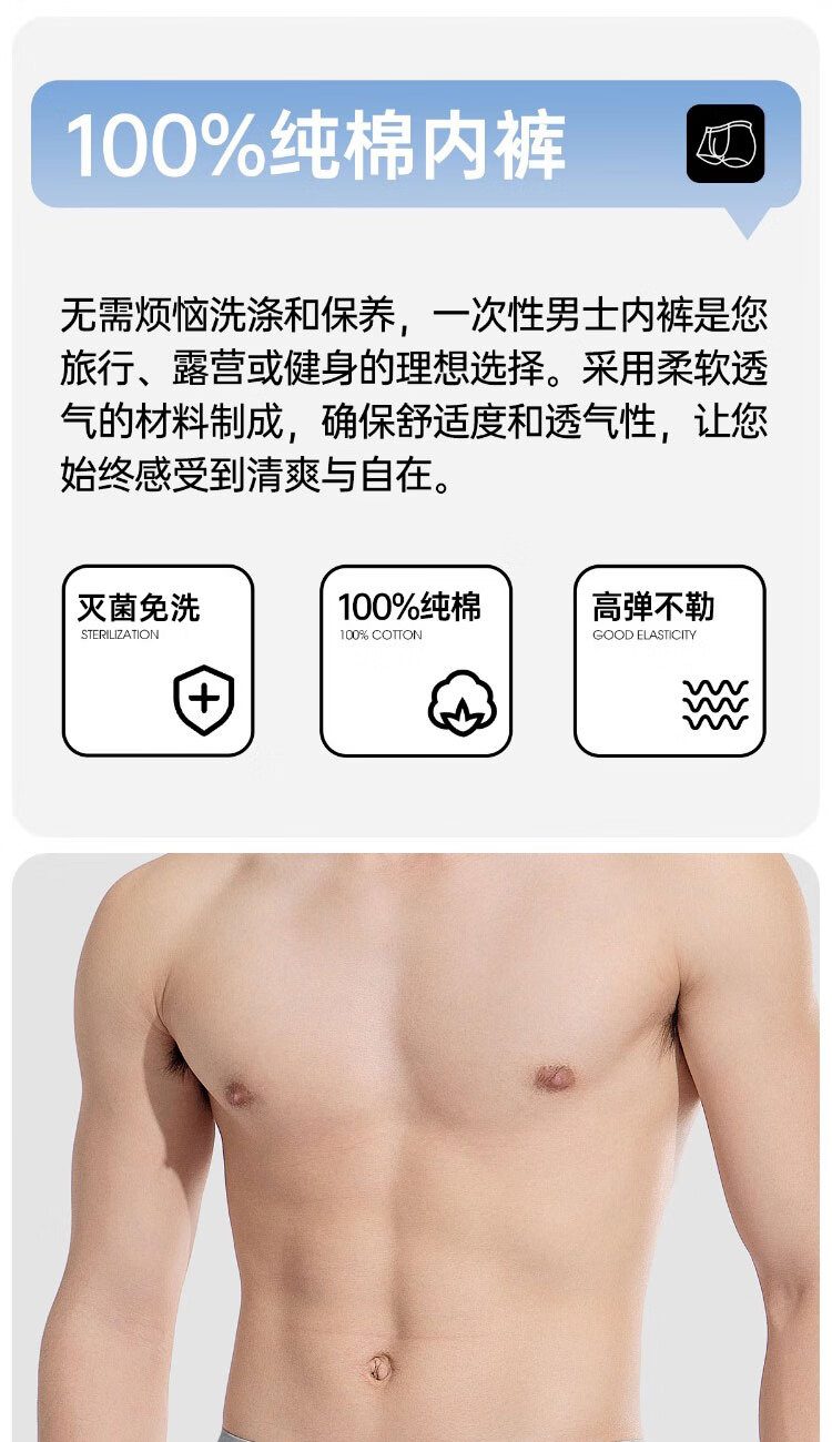 Langsha Disposable Underwear Men's Pure Cotton Boxer Briefs Cotton Sterilized Travel Portable Washable Large Size Men's Daily Disposable Underwear
